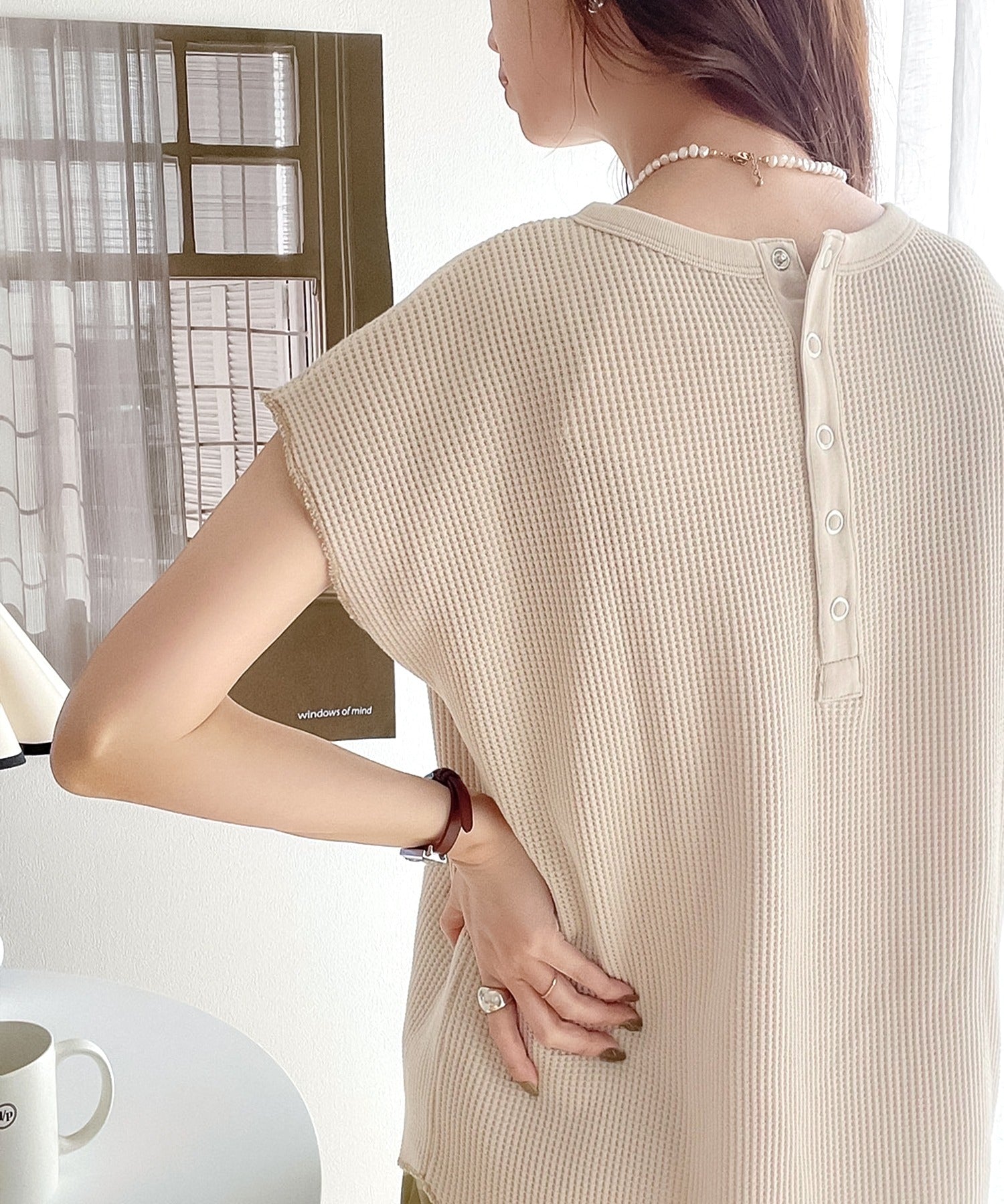 サーマル生地なので着心地も良く、ショートパンツと合わせてもかわいいと思います。
