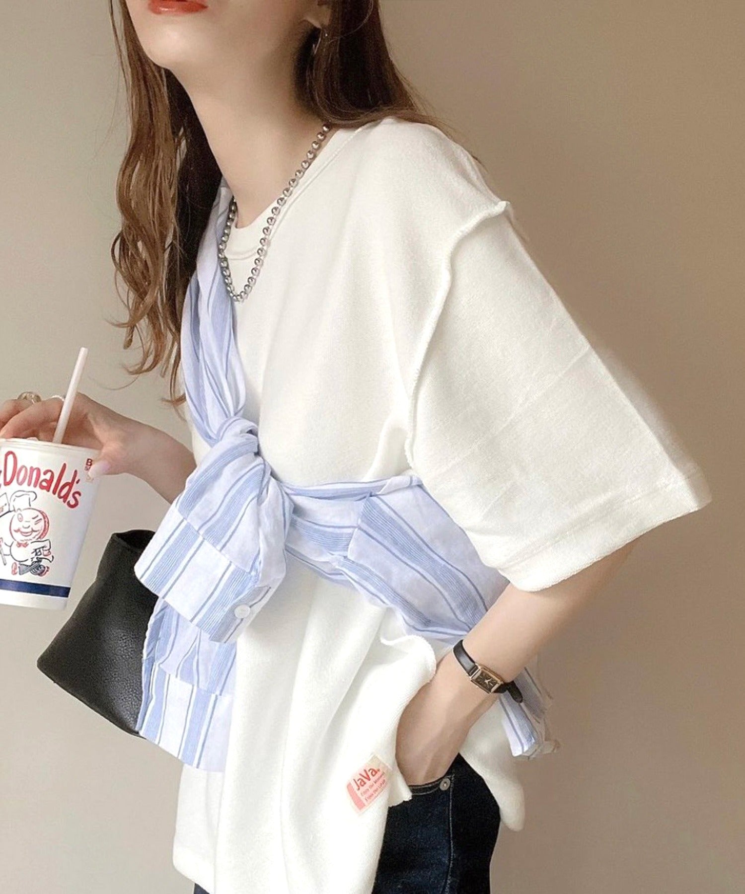 デザイン性のある生地を使用している為一枚でハイセンスな着こなしが叶う♪