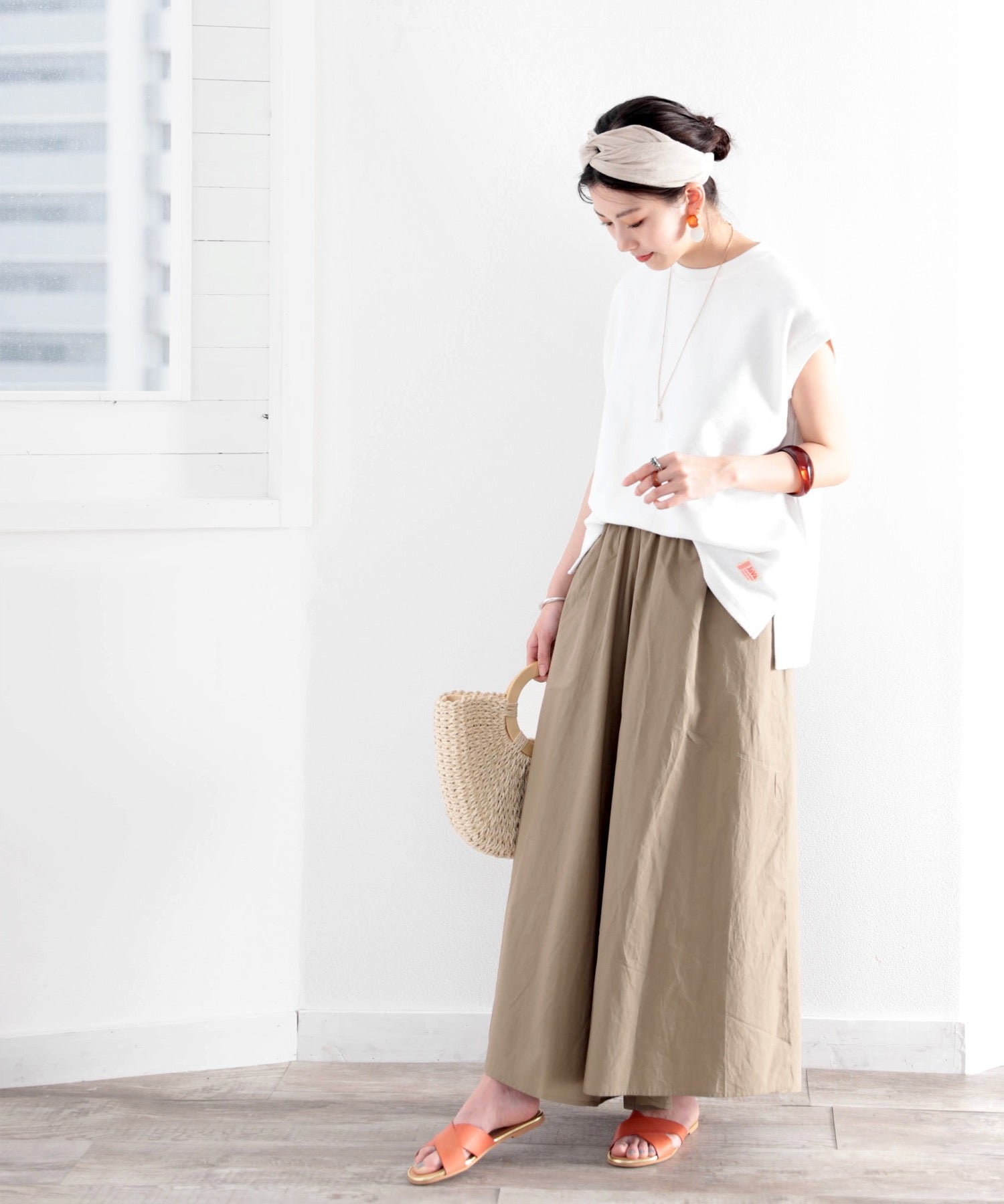 肩を程よく隠してくれるフレンチスリーブ感のあるデザインで一枚でも安心感ある形。