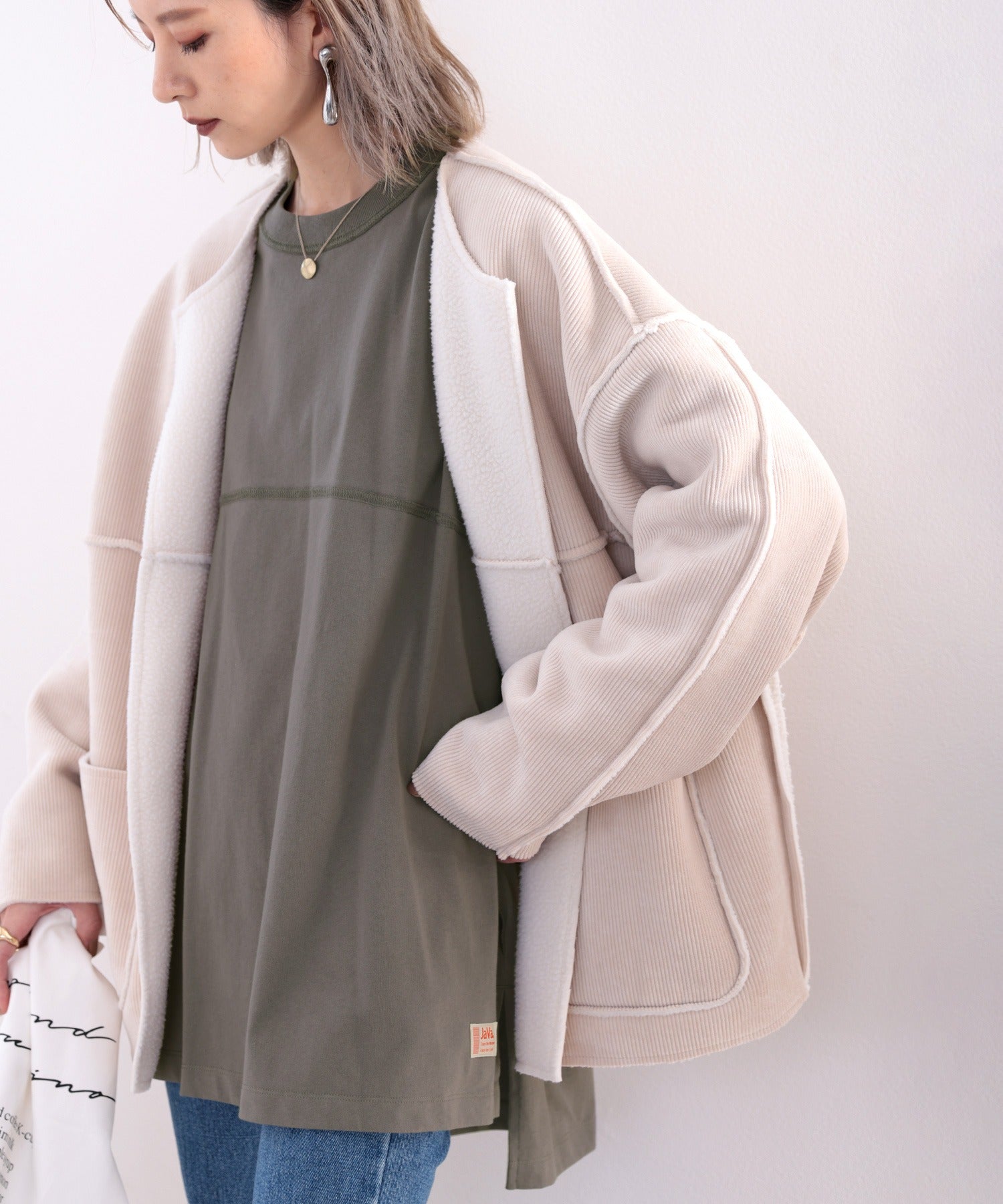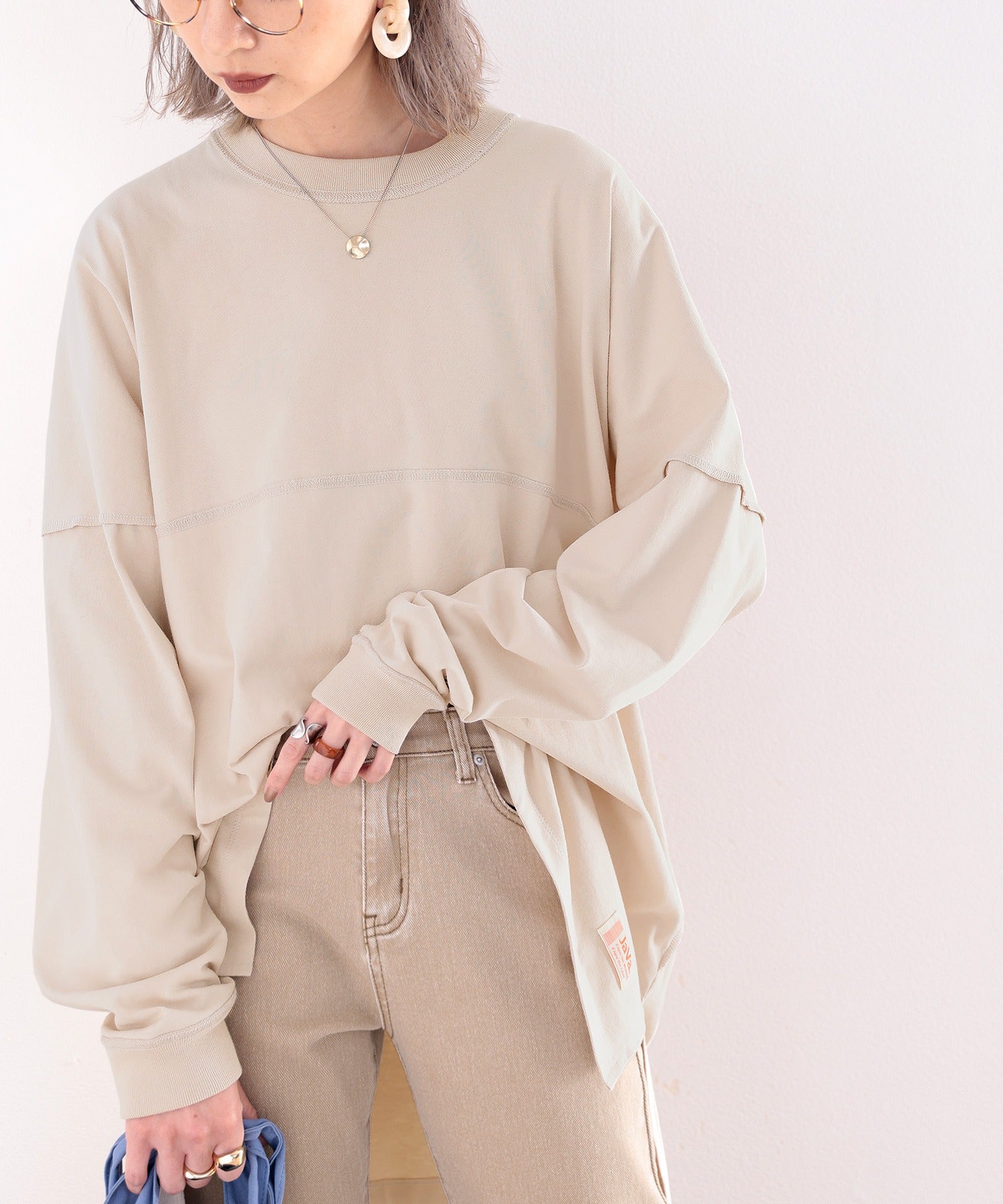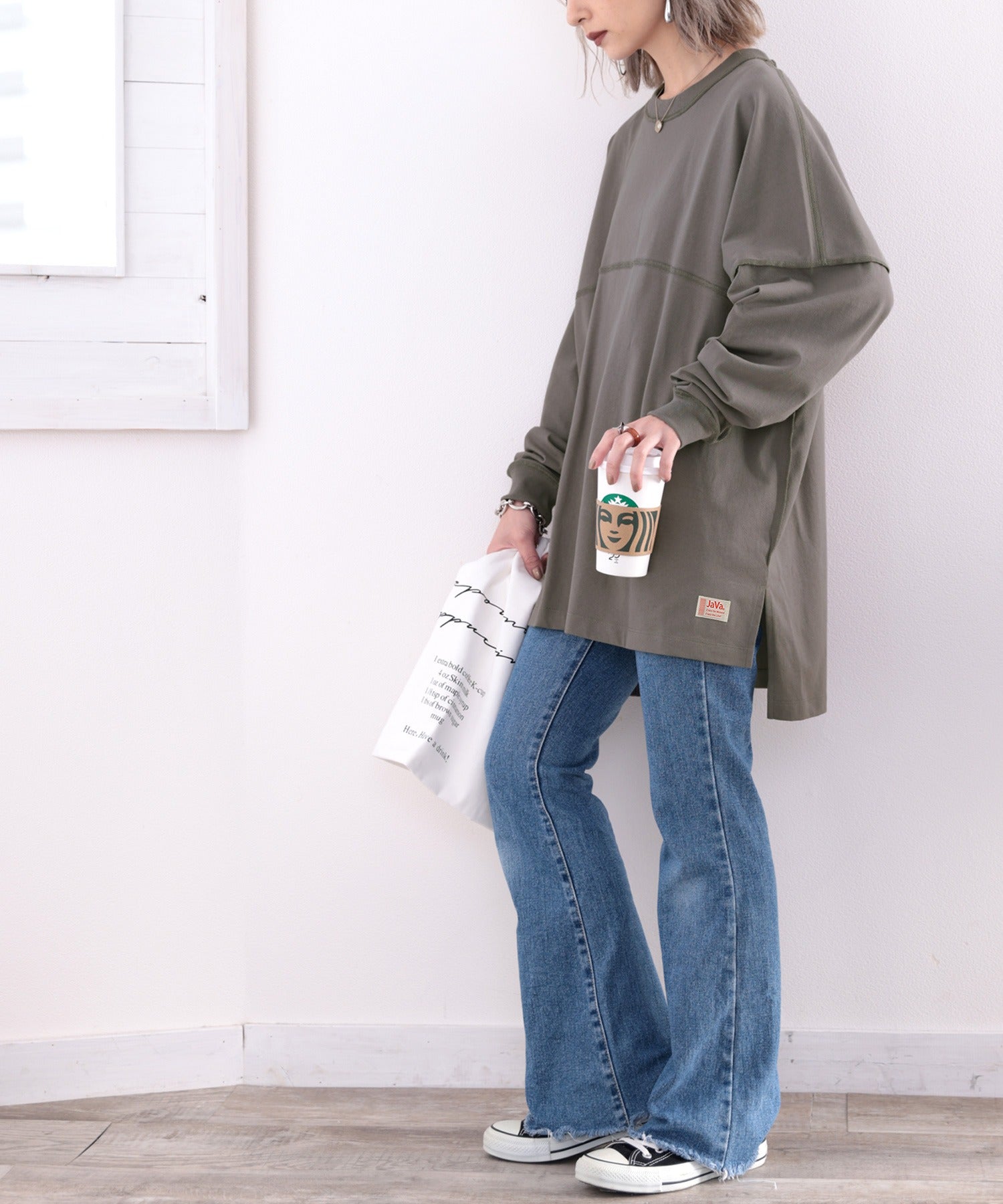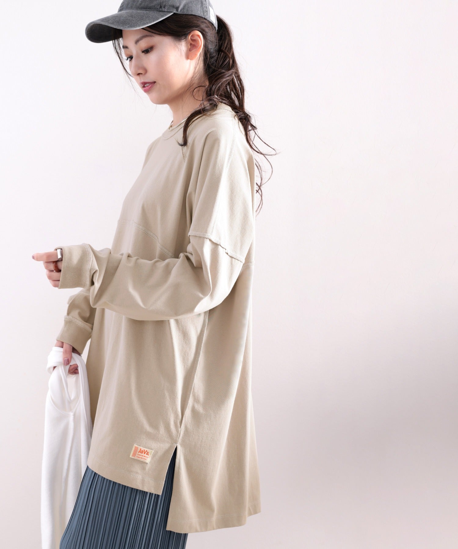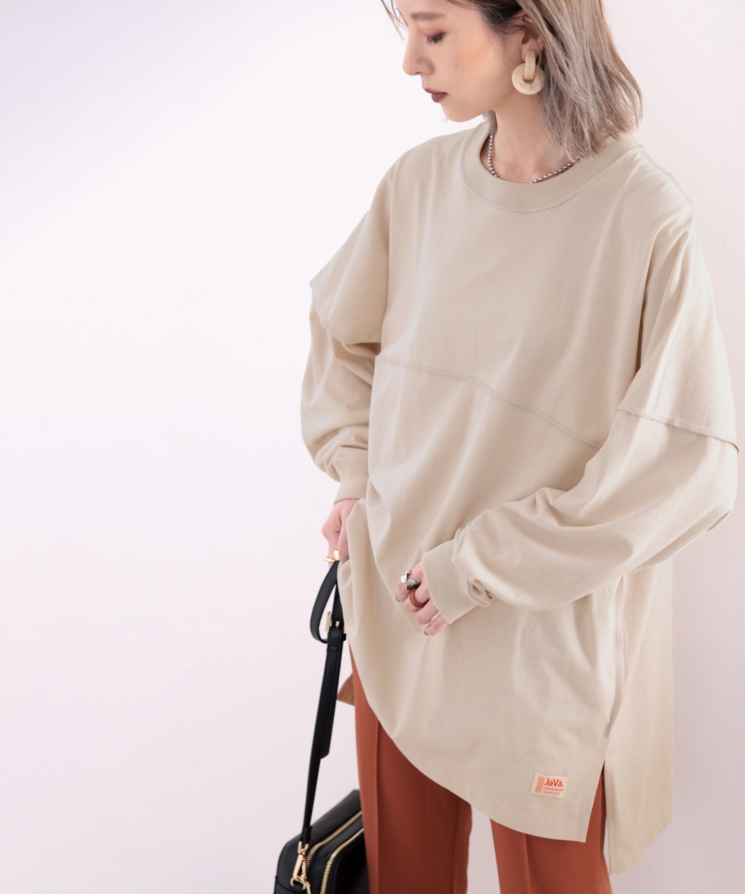 《JaVaジャバ コラボ》切替えビッグシルエット長袖Tee ce0970039