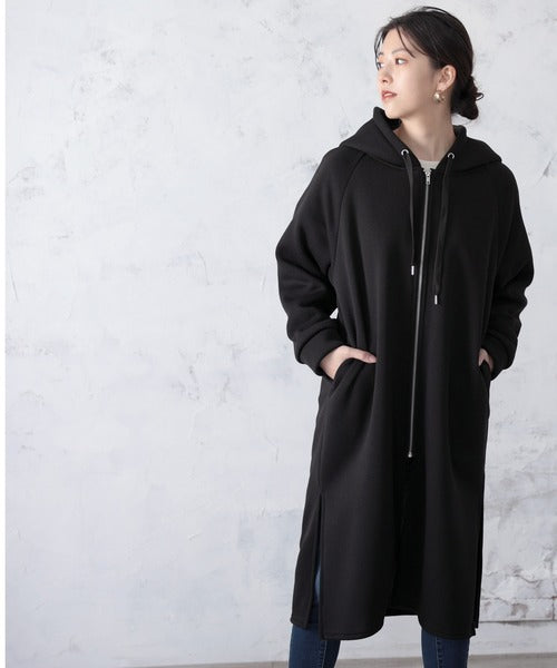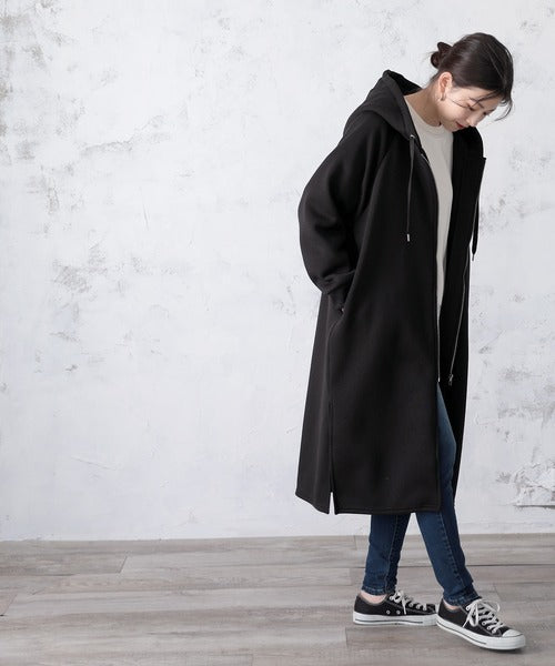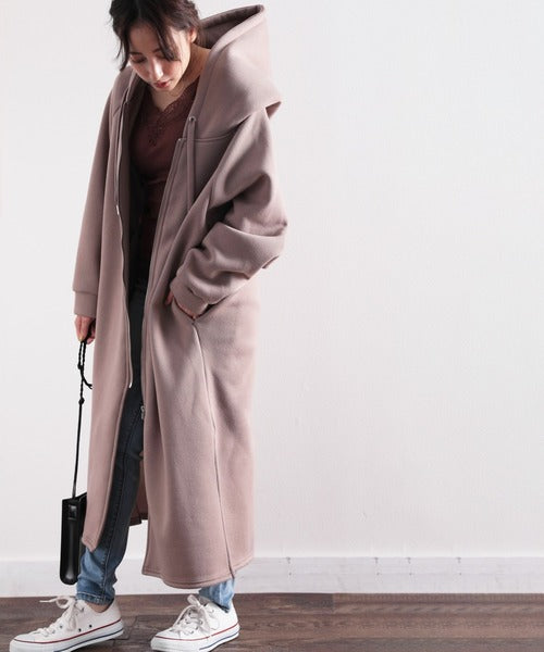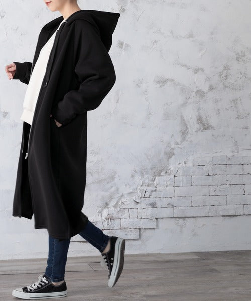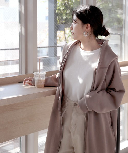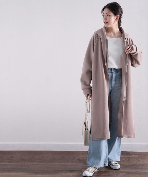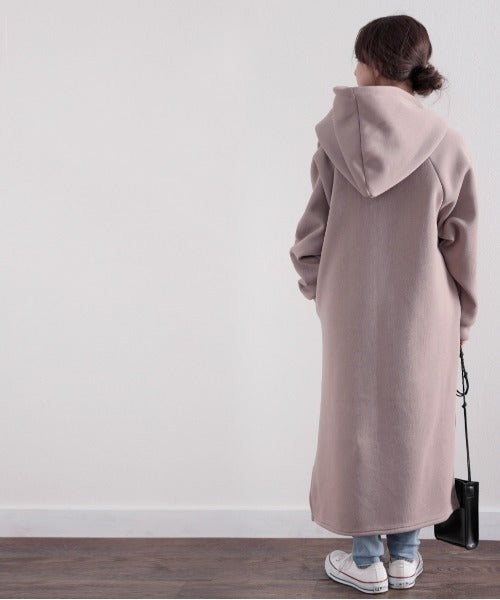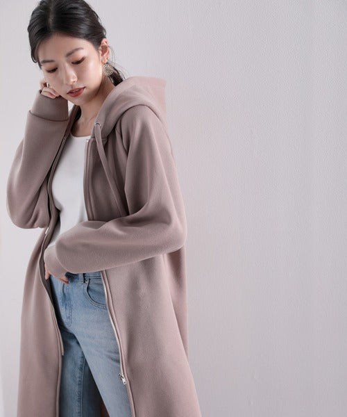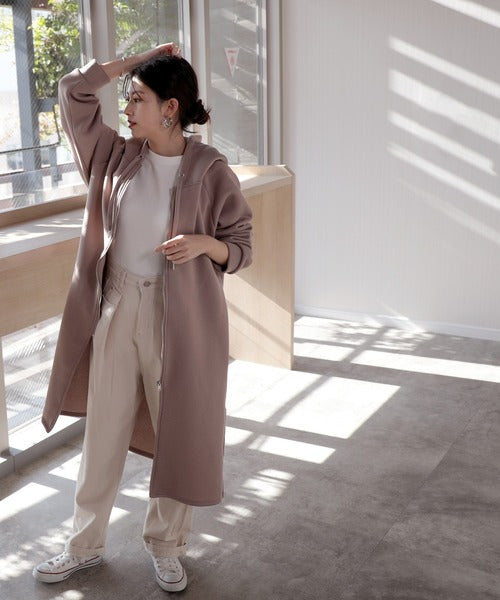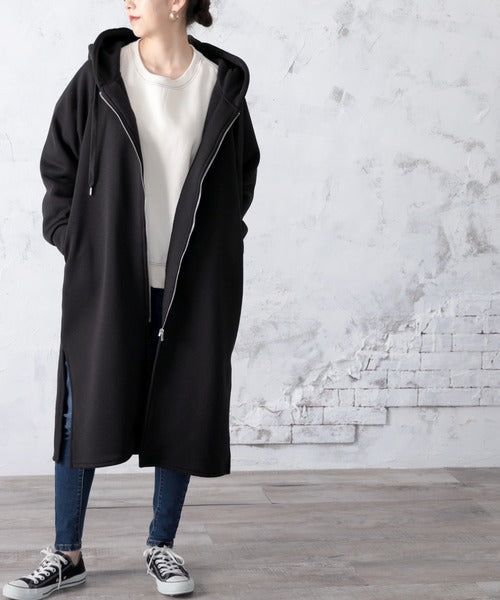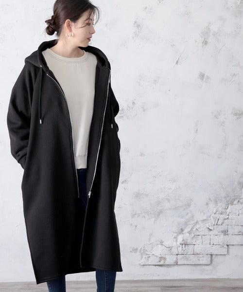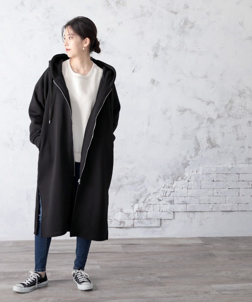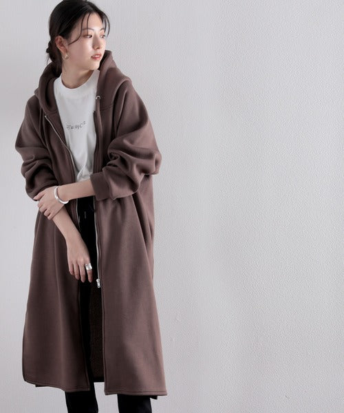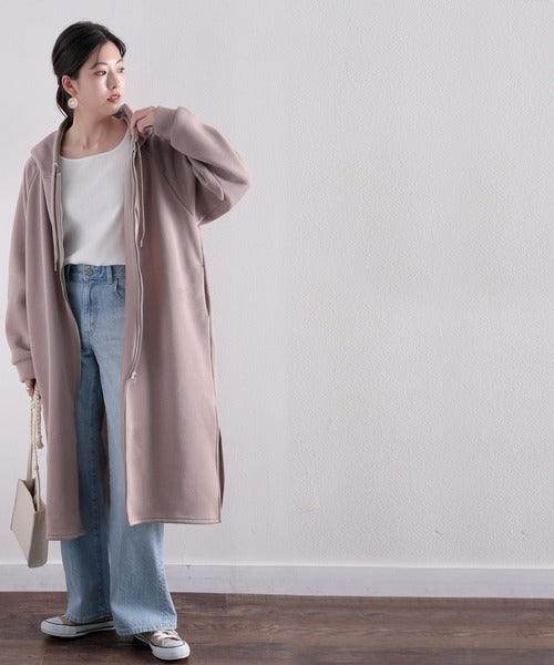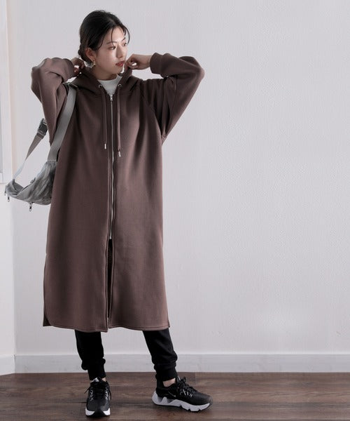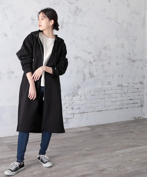 裏起毛無地ロング丈ジップアップフーデットコート(長袖) ce1000002