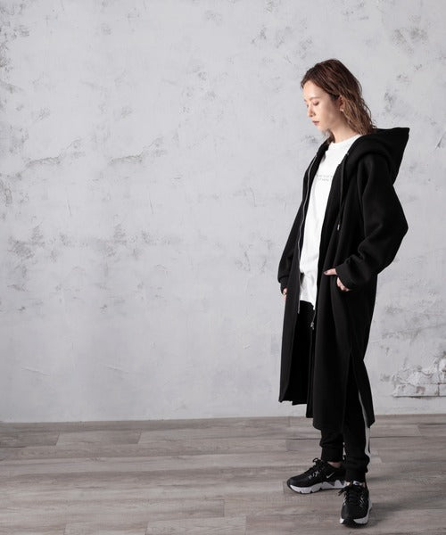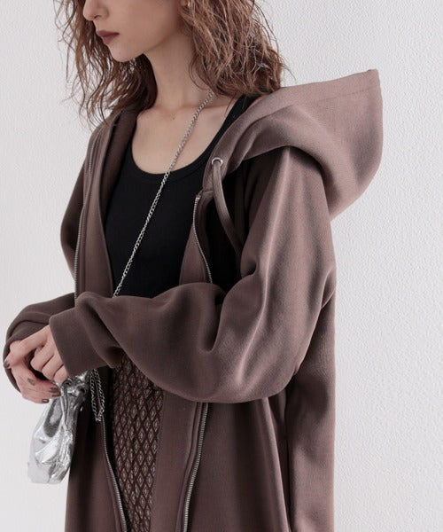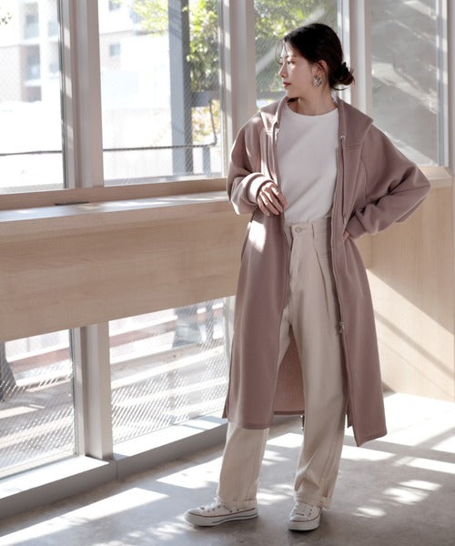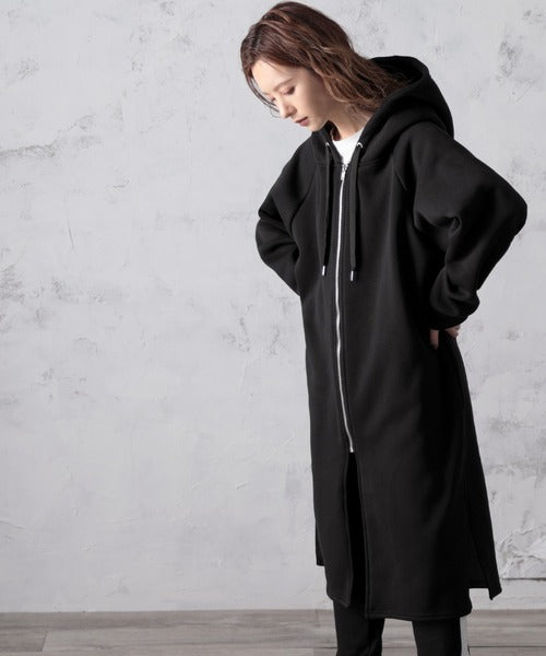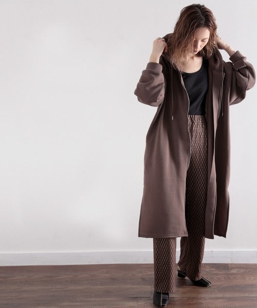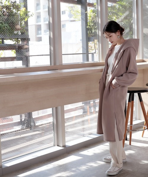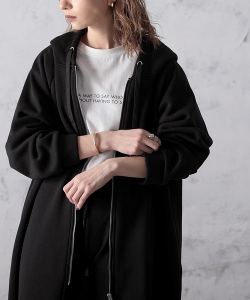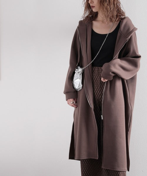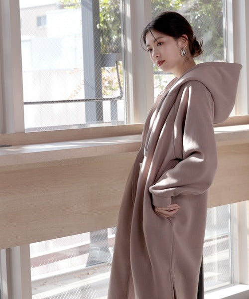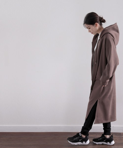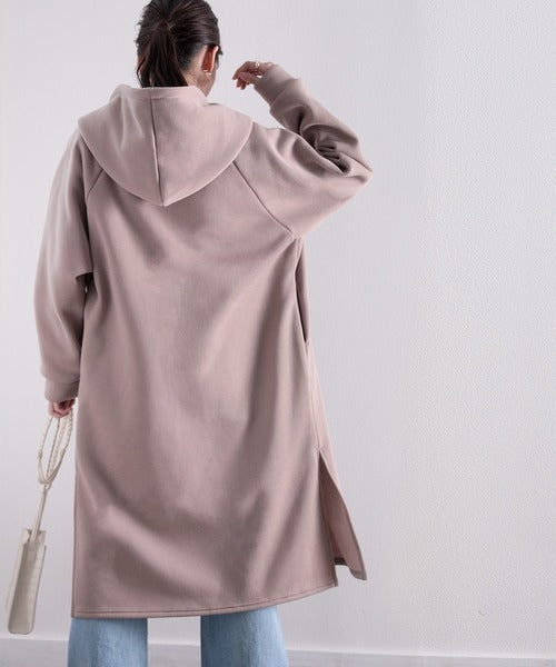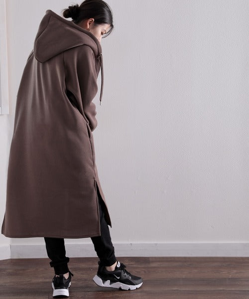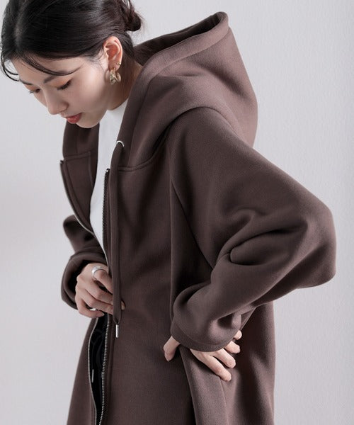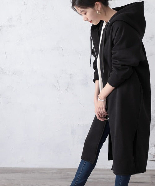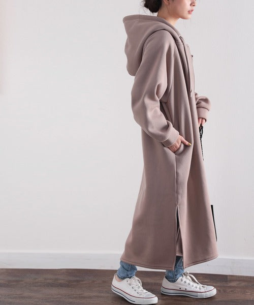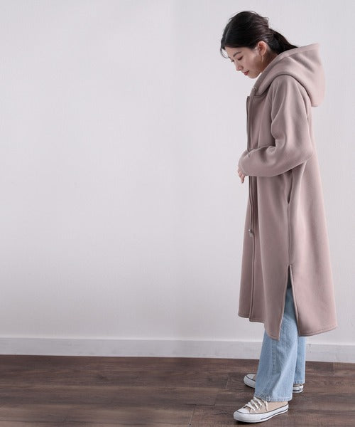 裏起毛無地ロング丈ジップアップフーデットコート(長袖) ce1000002
