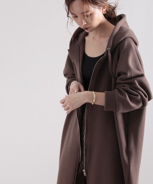 カジュアルな素材感とシンプルで着回ししやすい、定番大人気のロング丈パーカーコート!