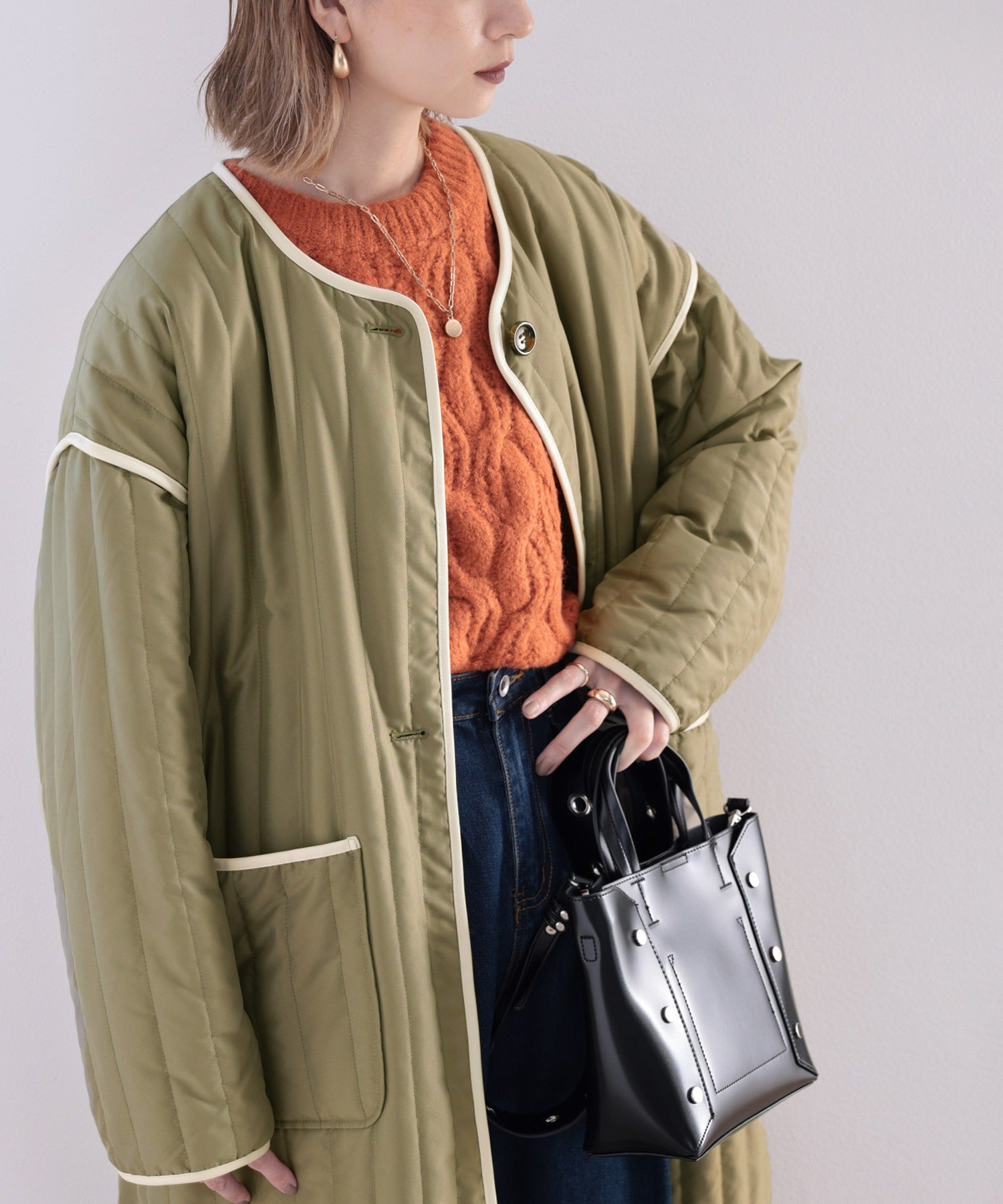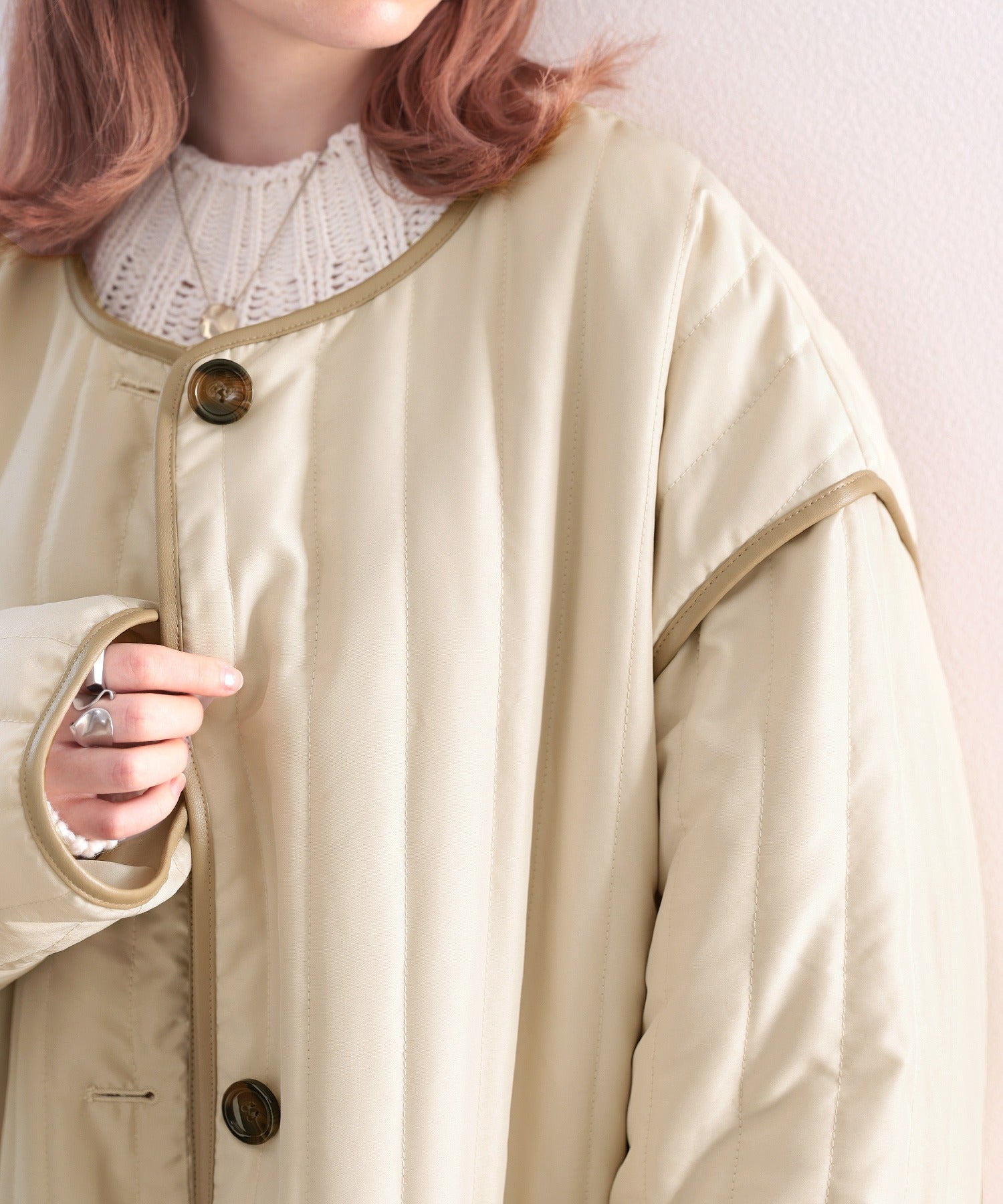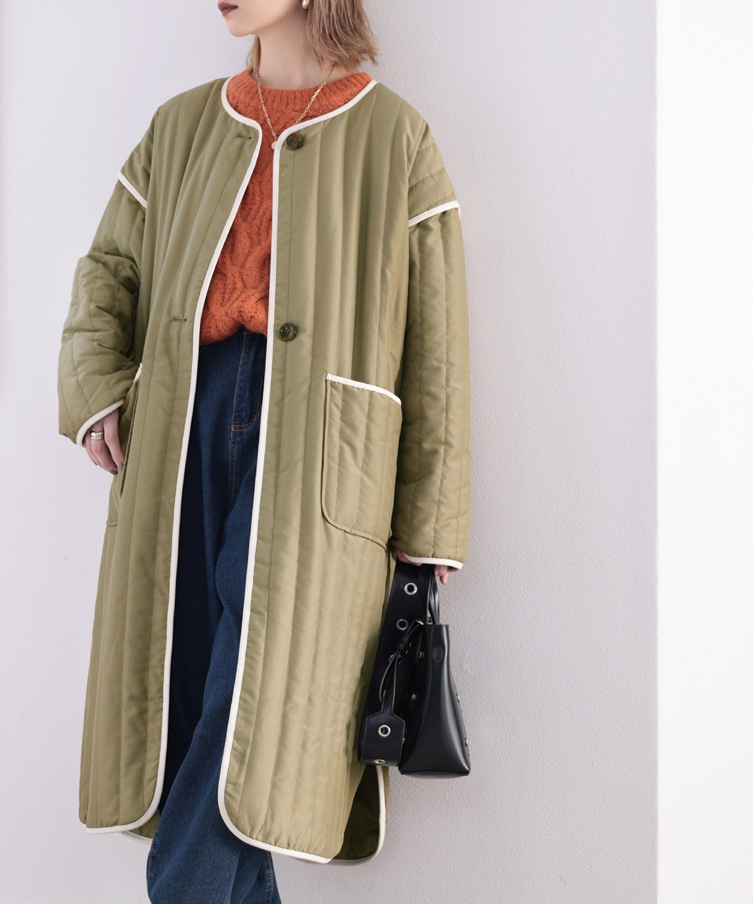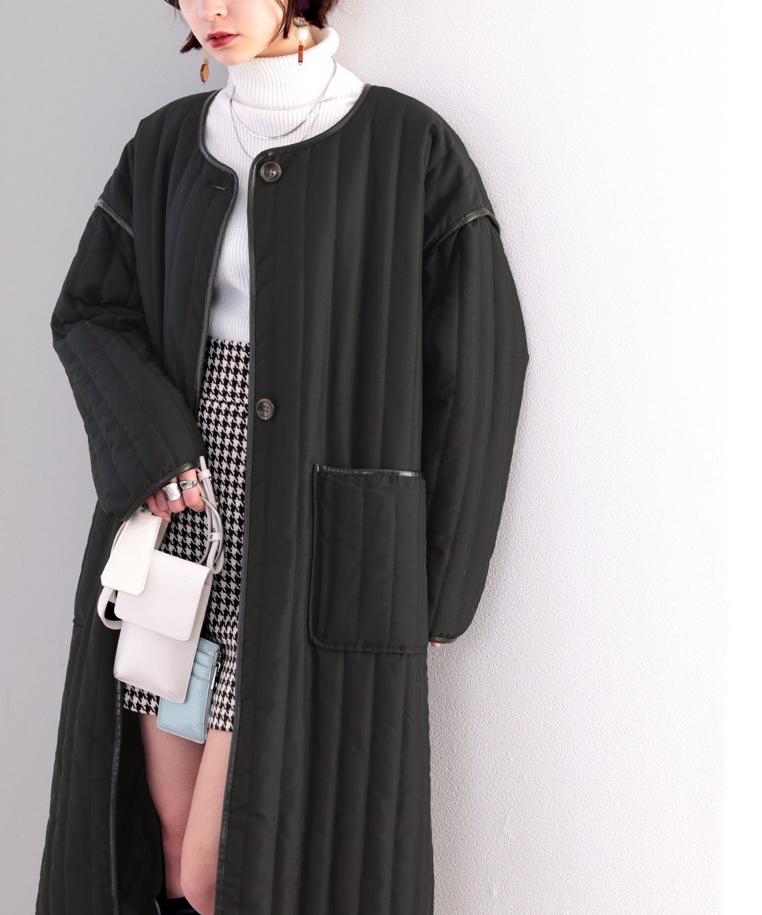 キルティング×パイピング。お洒落な異素材キルティングコート ce1000010