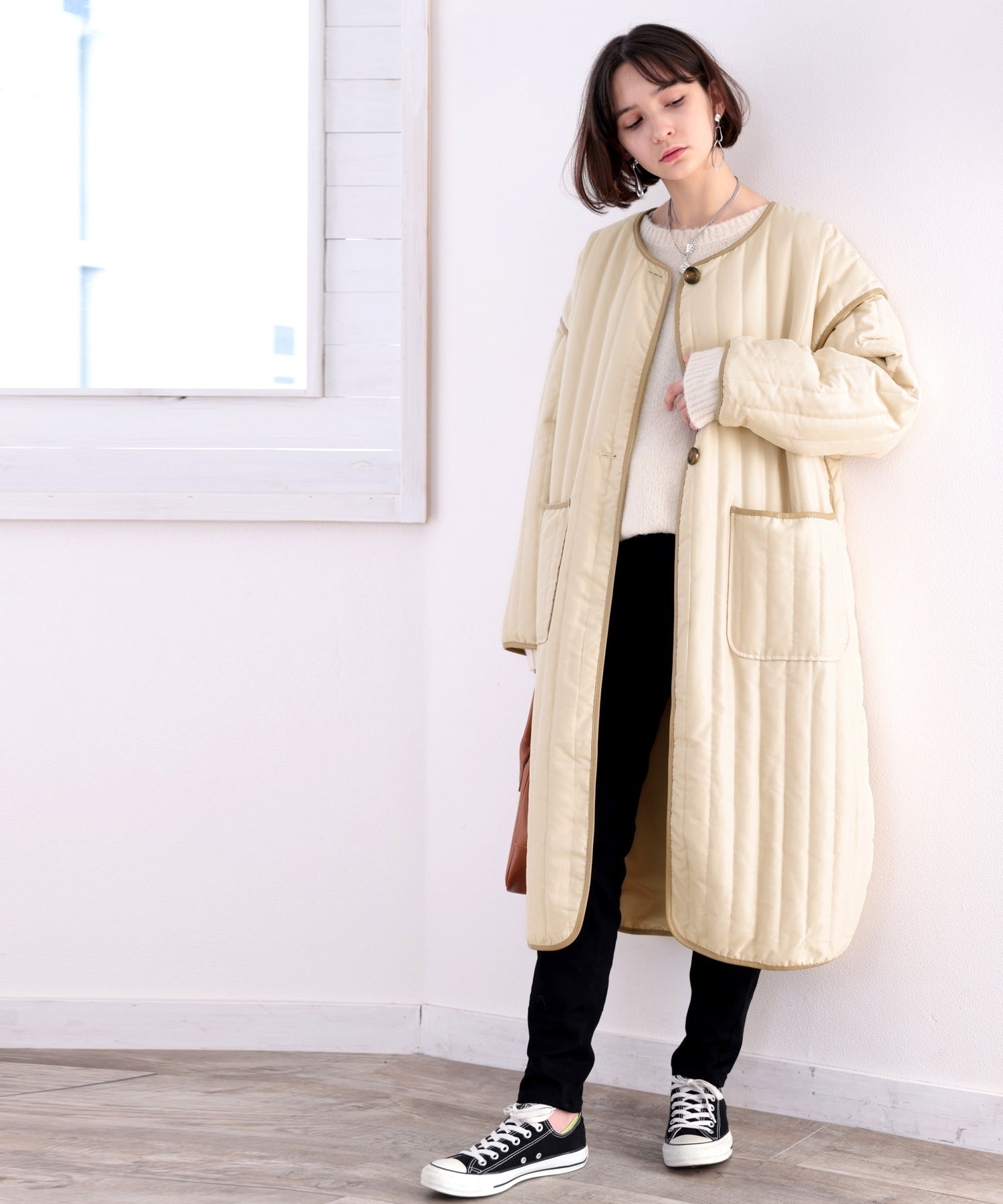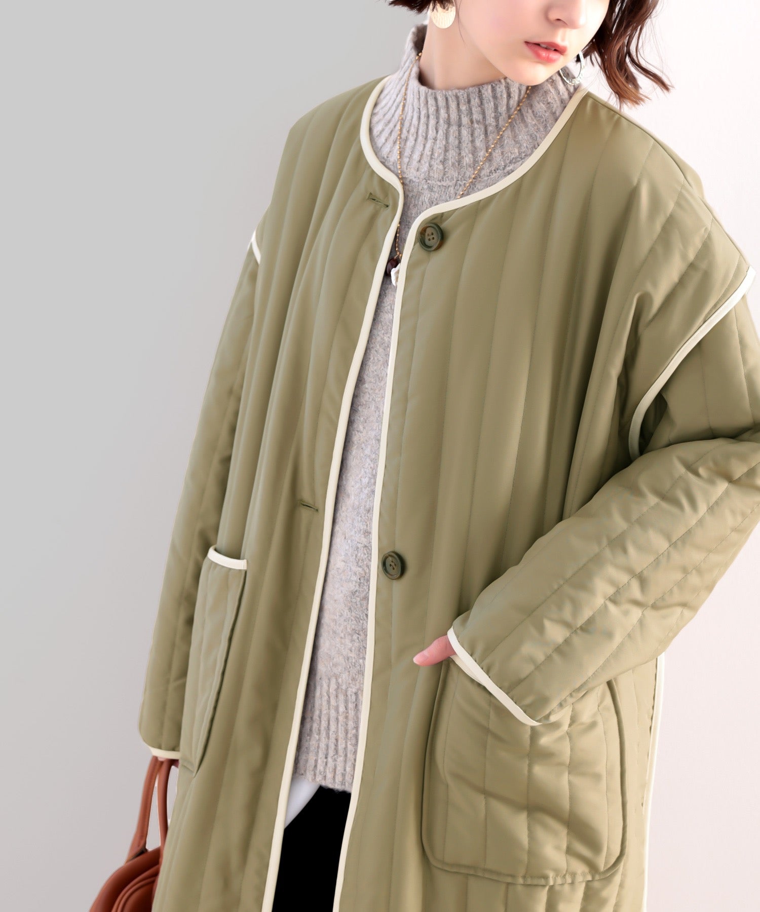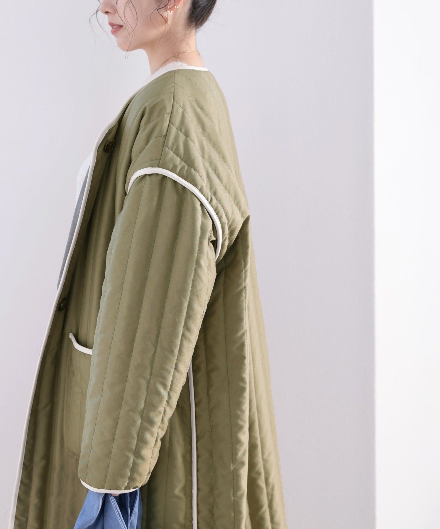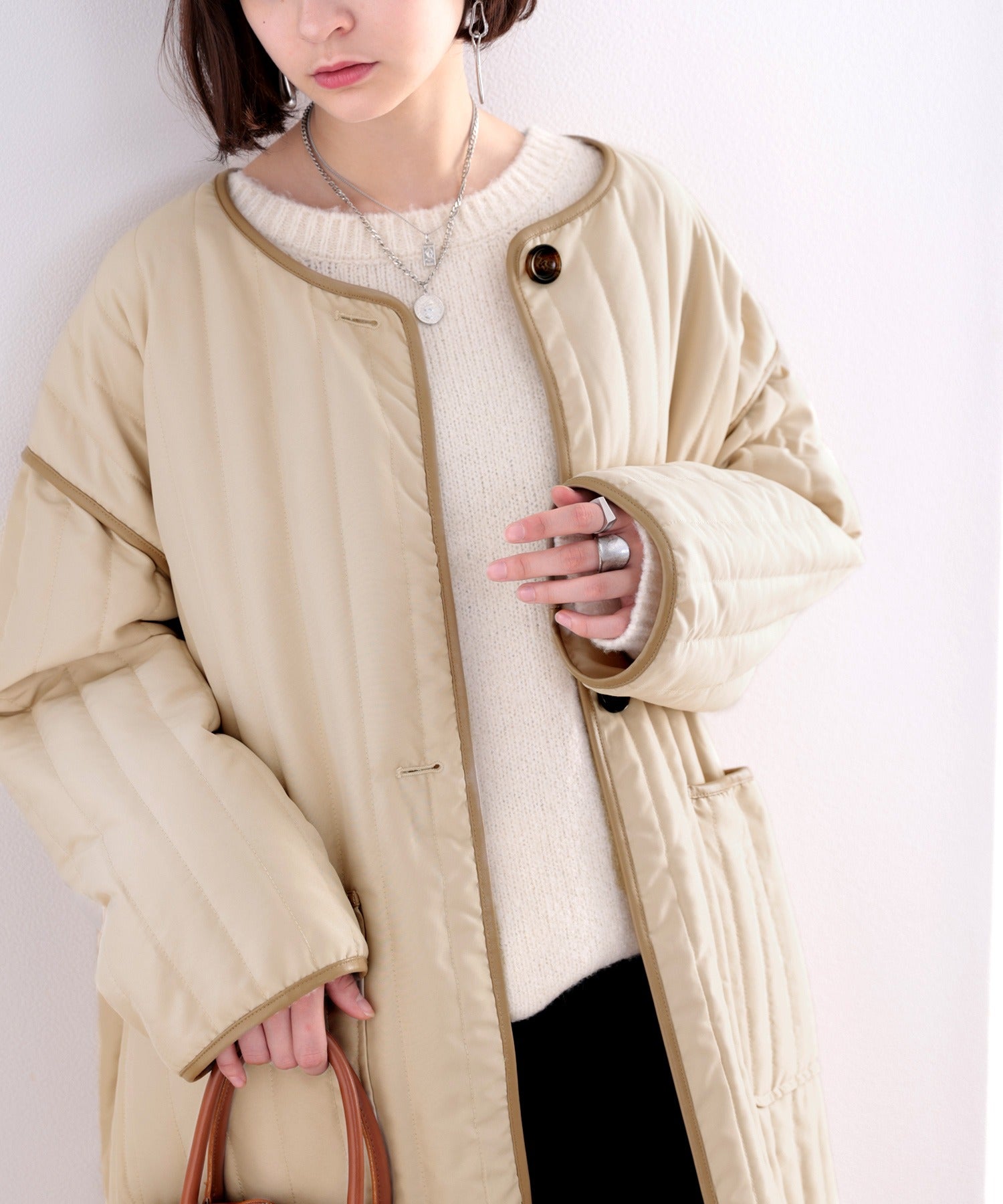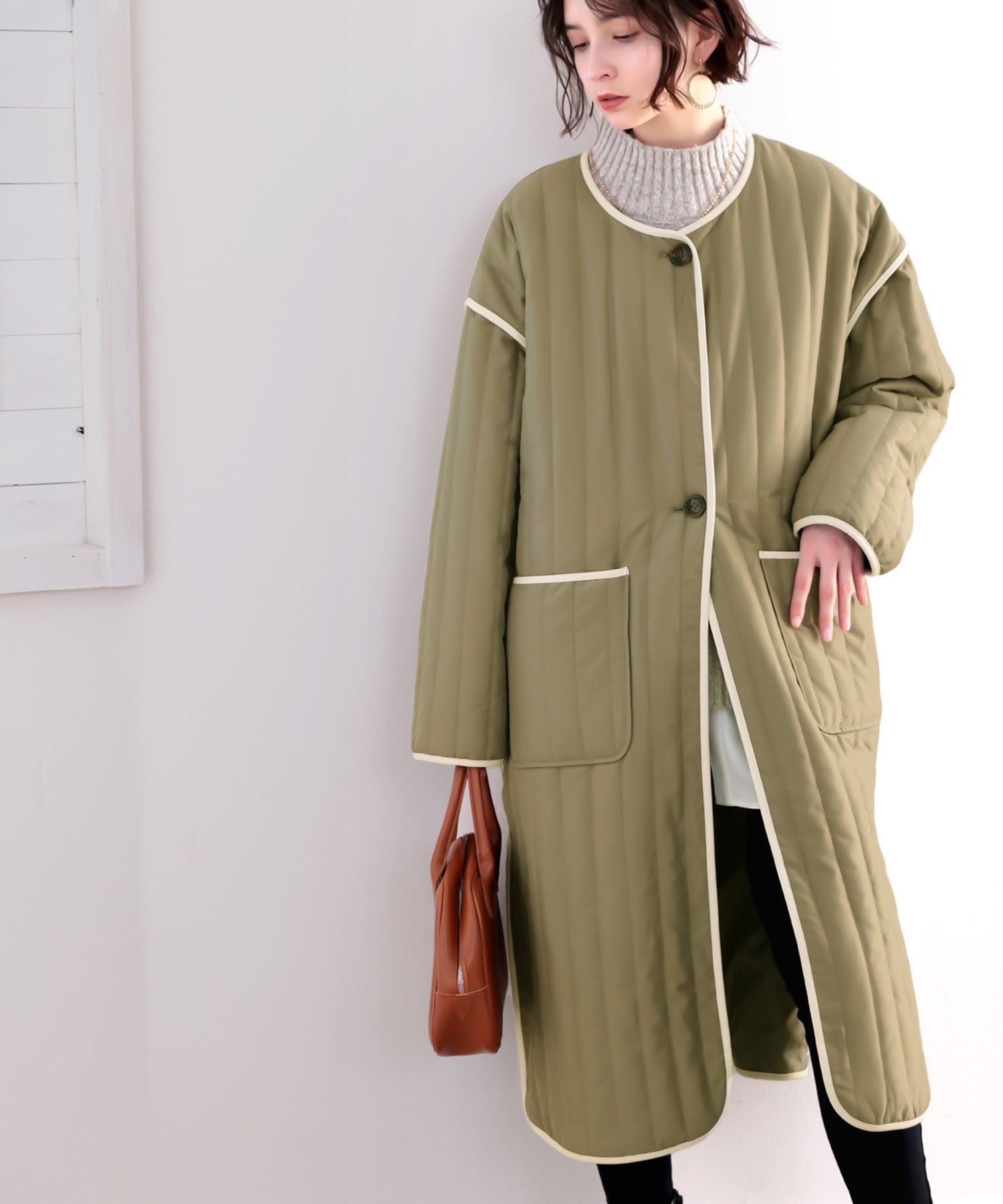 キルティング×パイピング。お洒落な異素材キルティングコート ce1000010