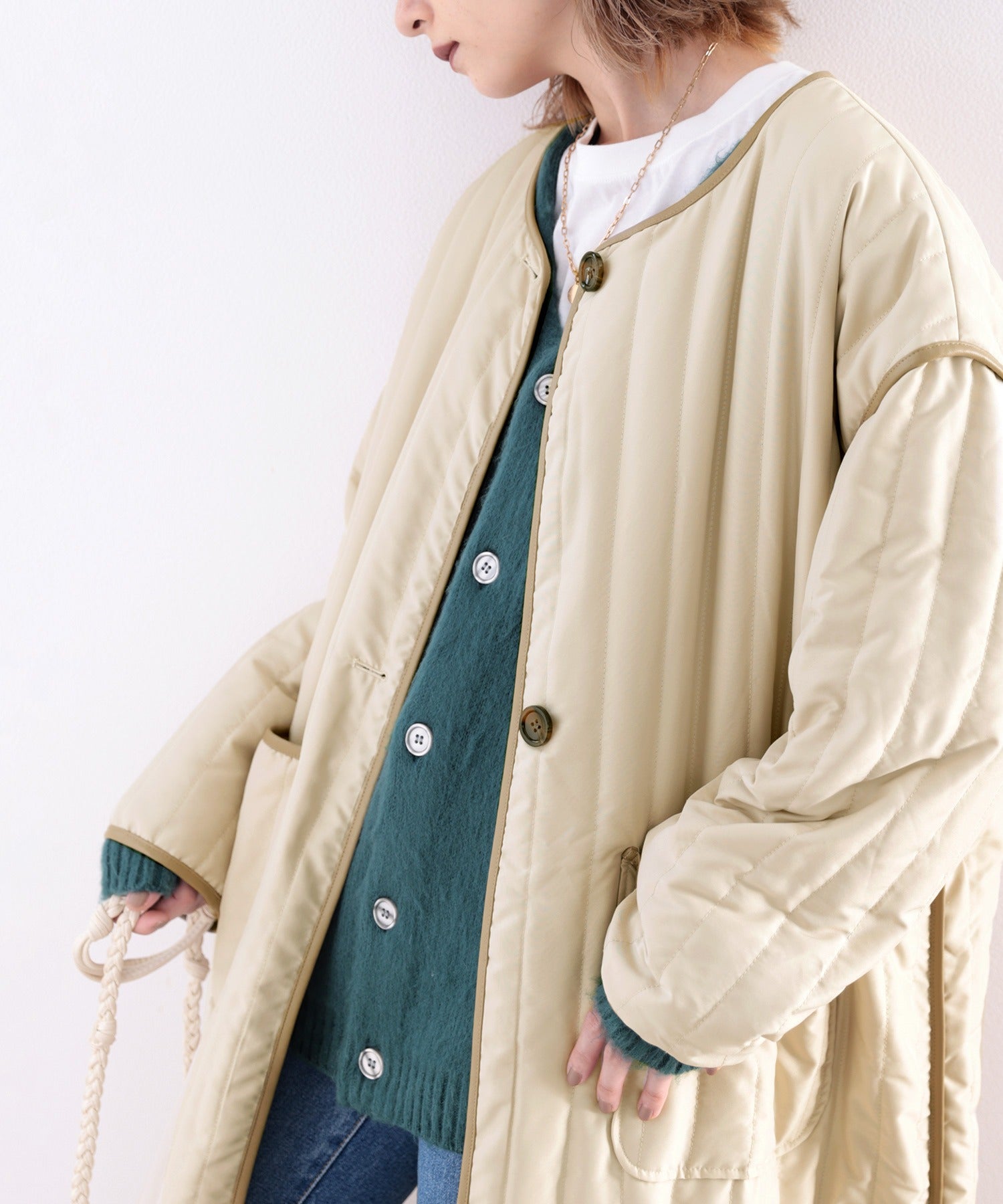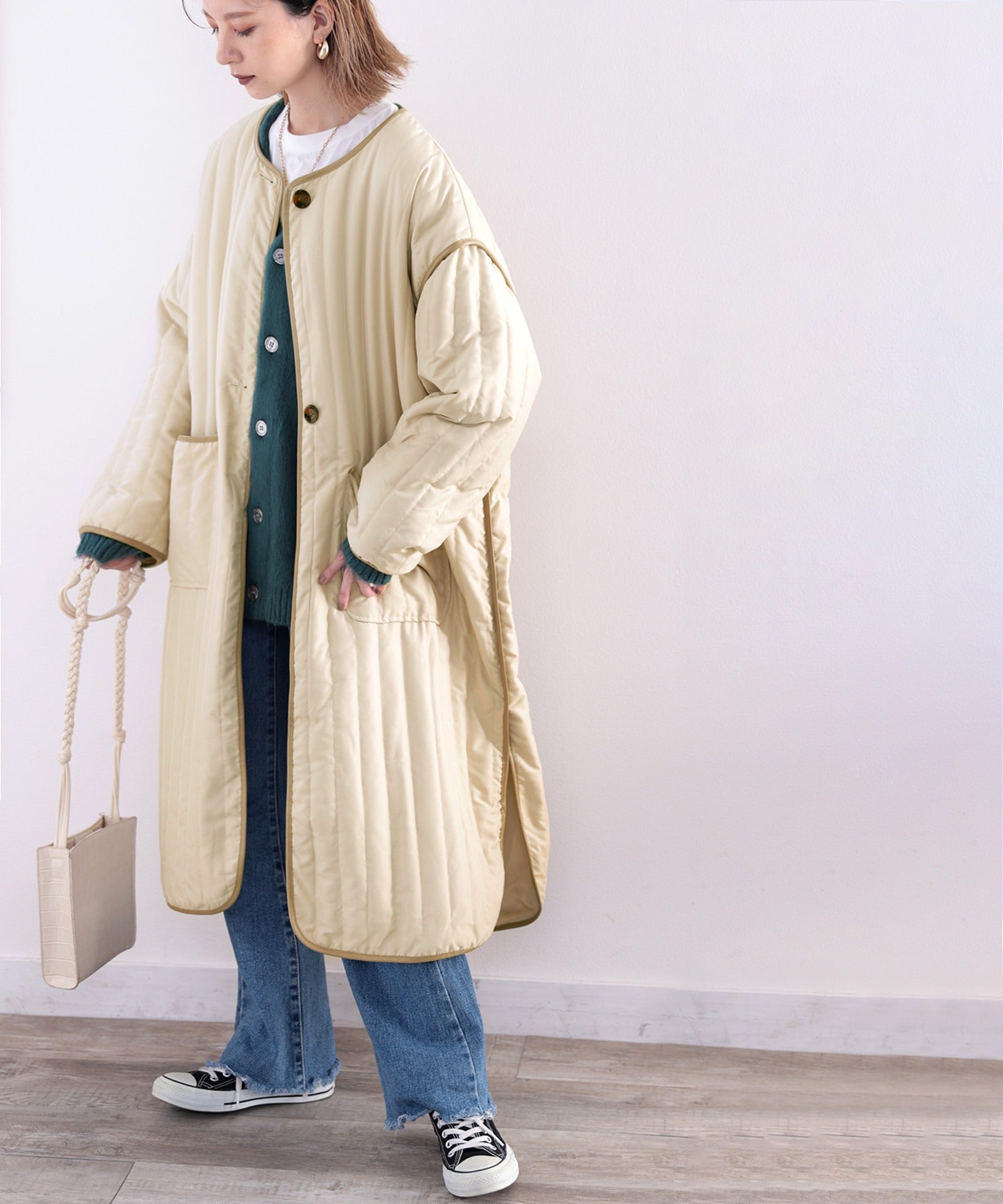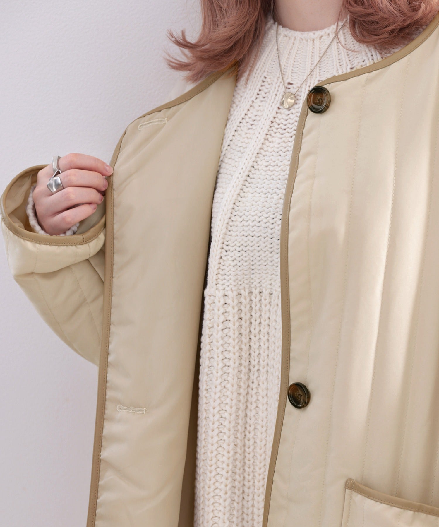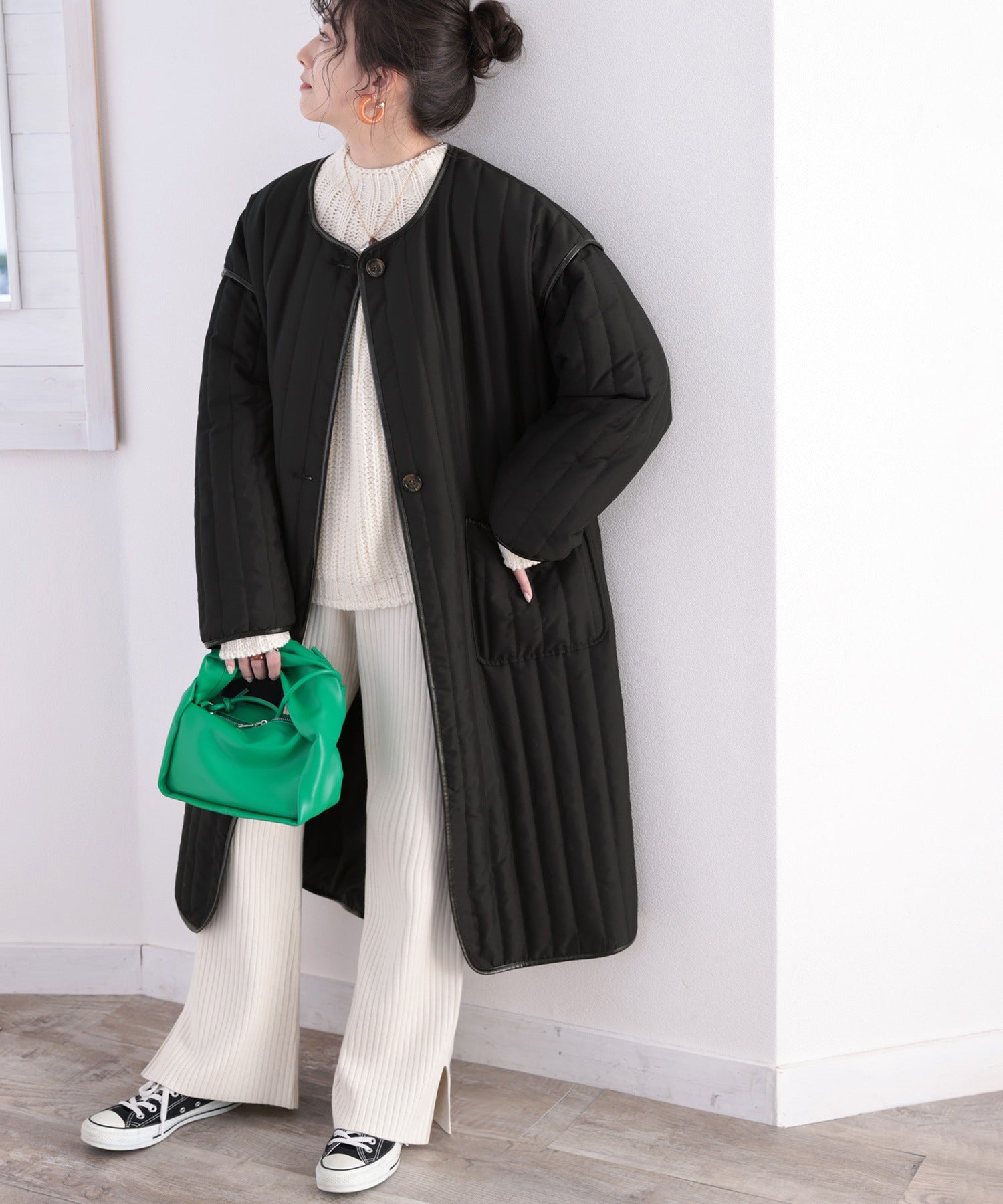 キルティング×パイピング。お洒落な異素材キルティングコート ce1000010