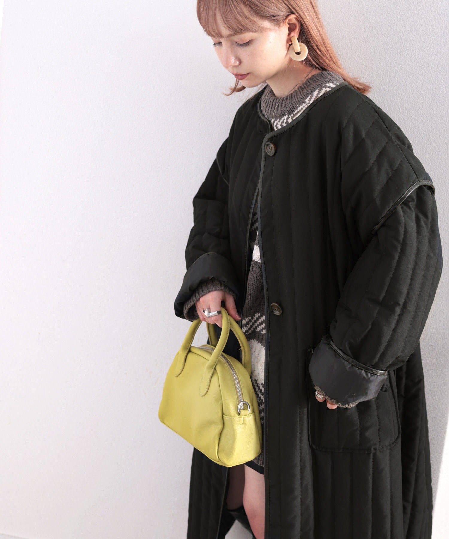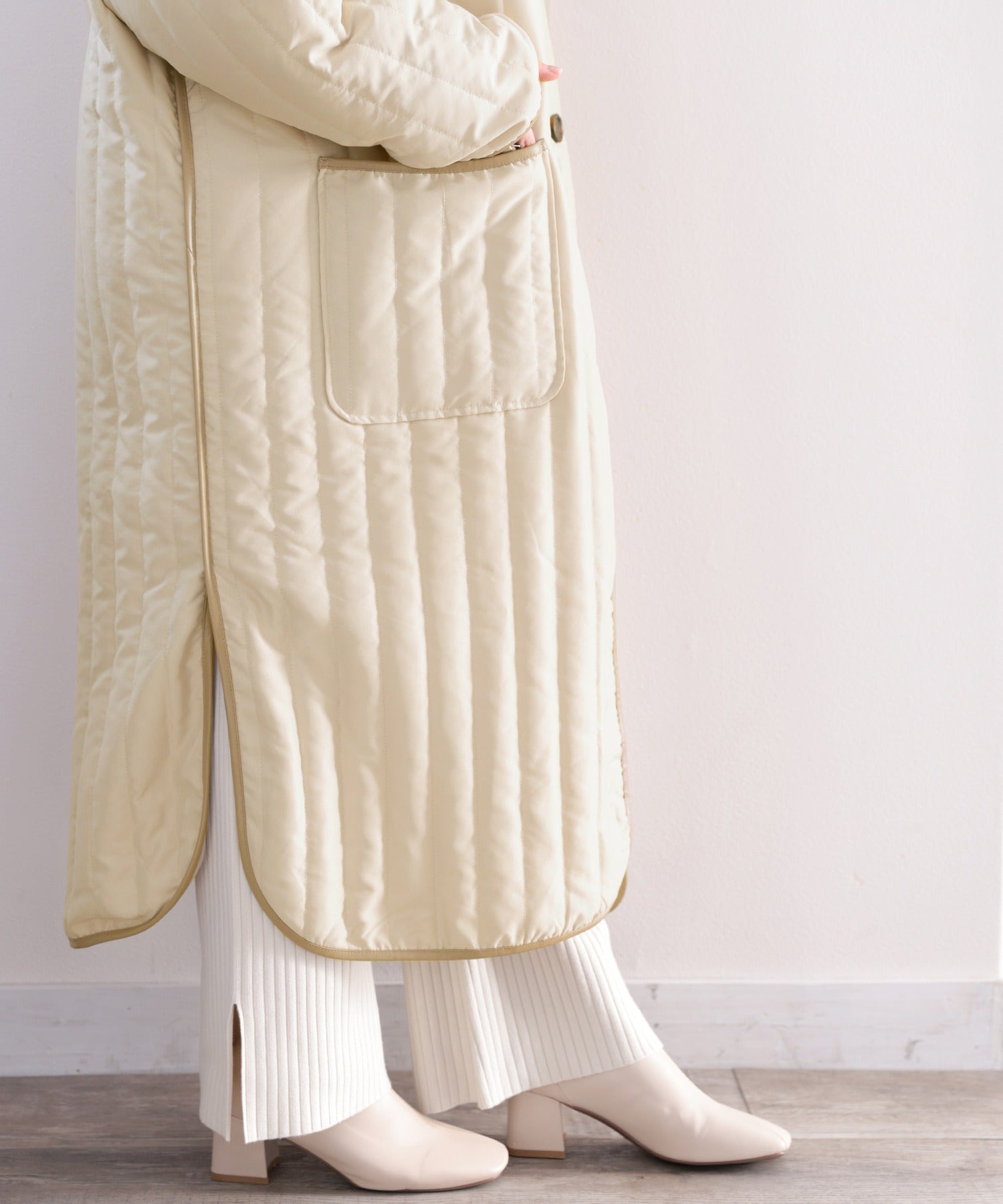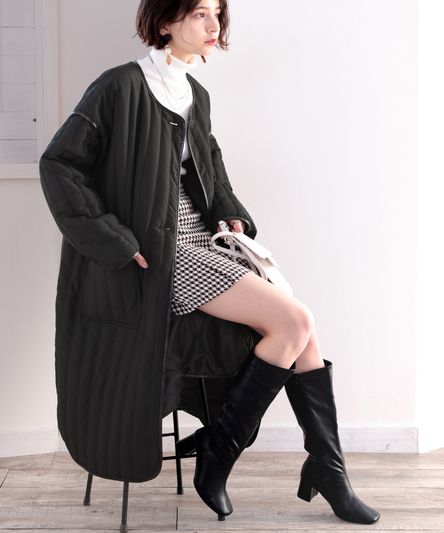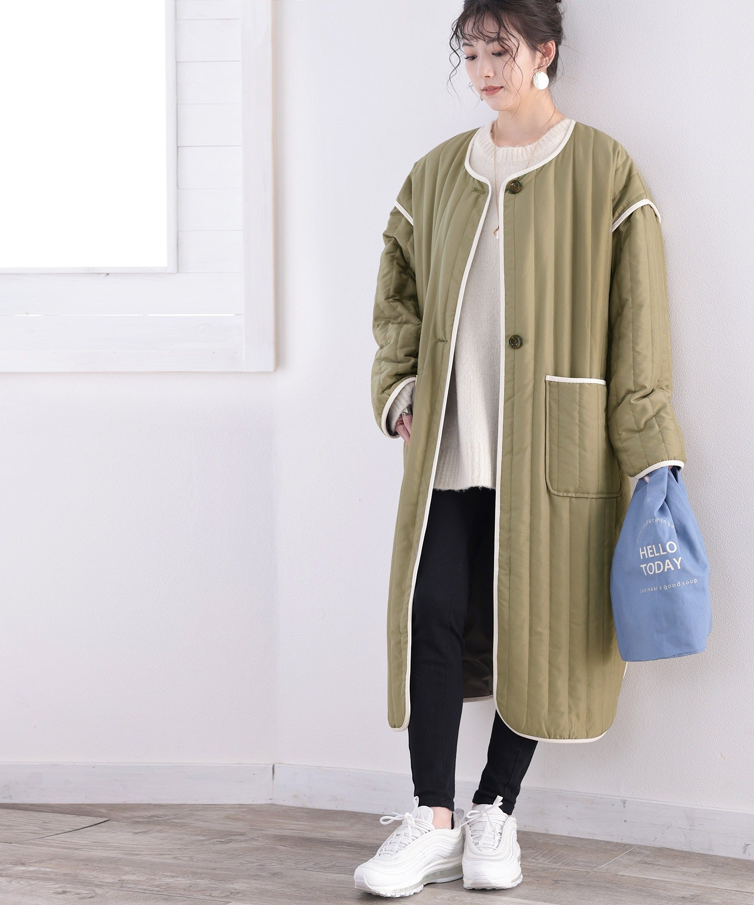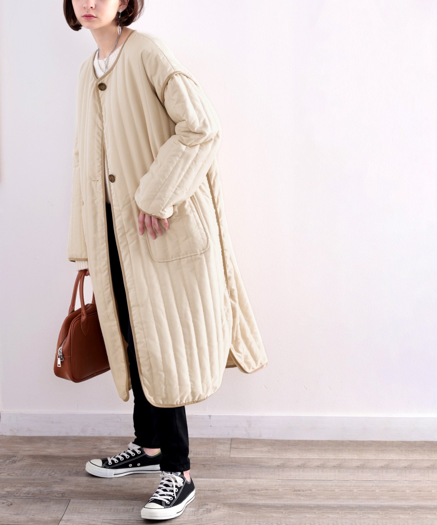 キルティング×パイピング。お洒落な異素材キルティングコート ce1000010