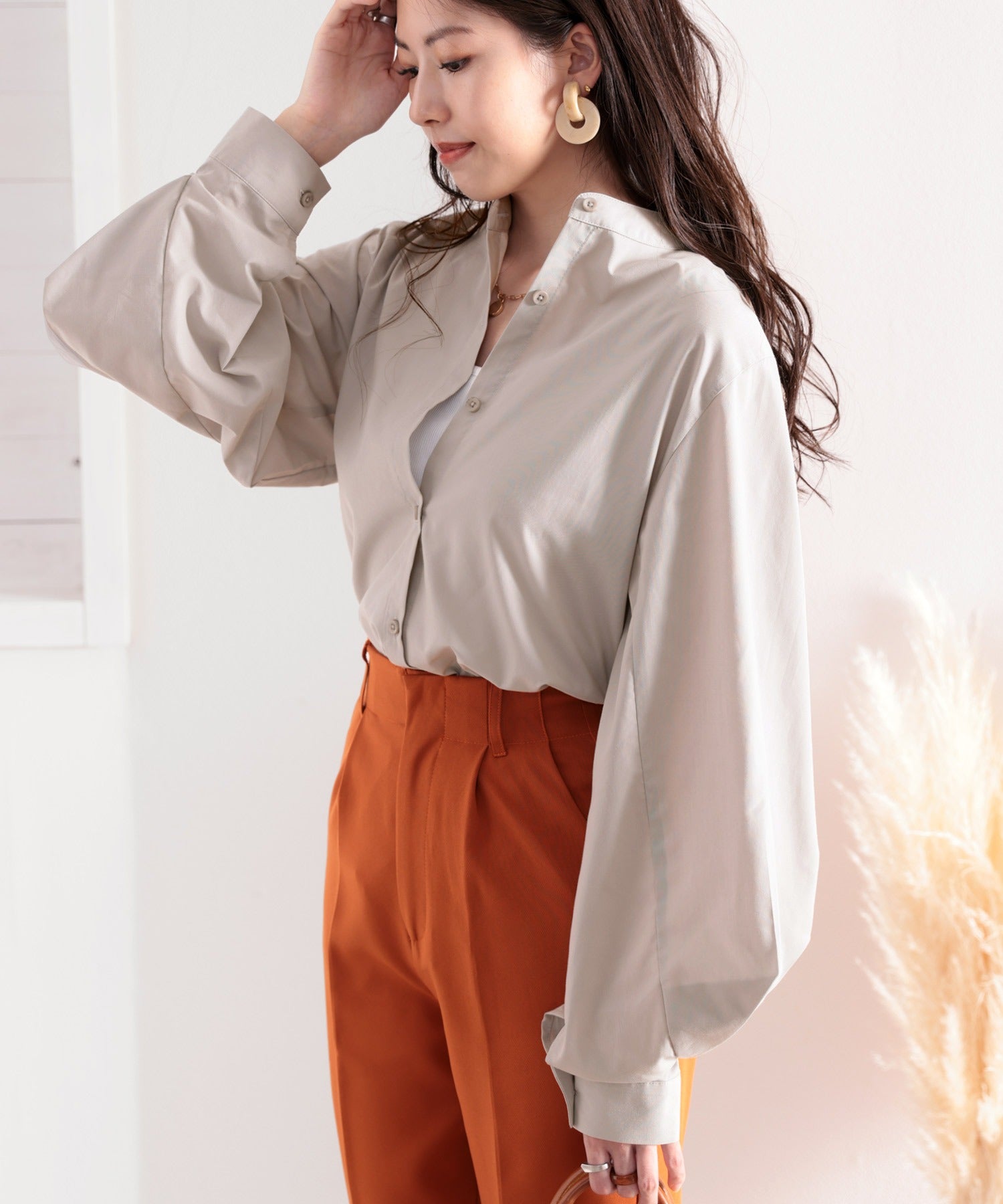 トレンドの1枚!袖Wタックバンドカラーシャツ。 ce1010007