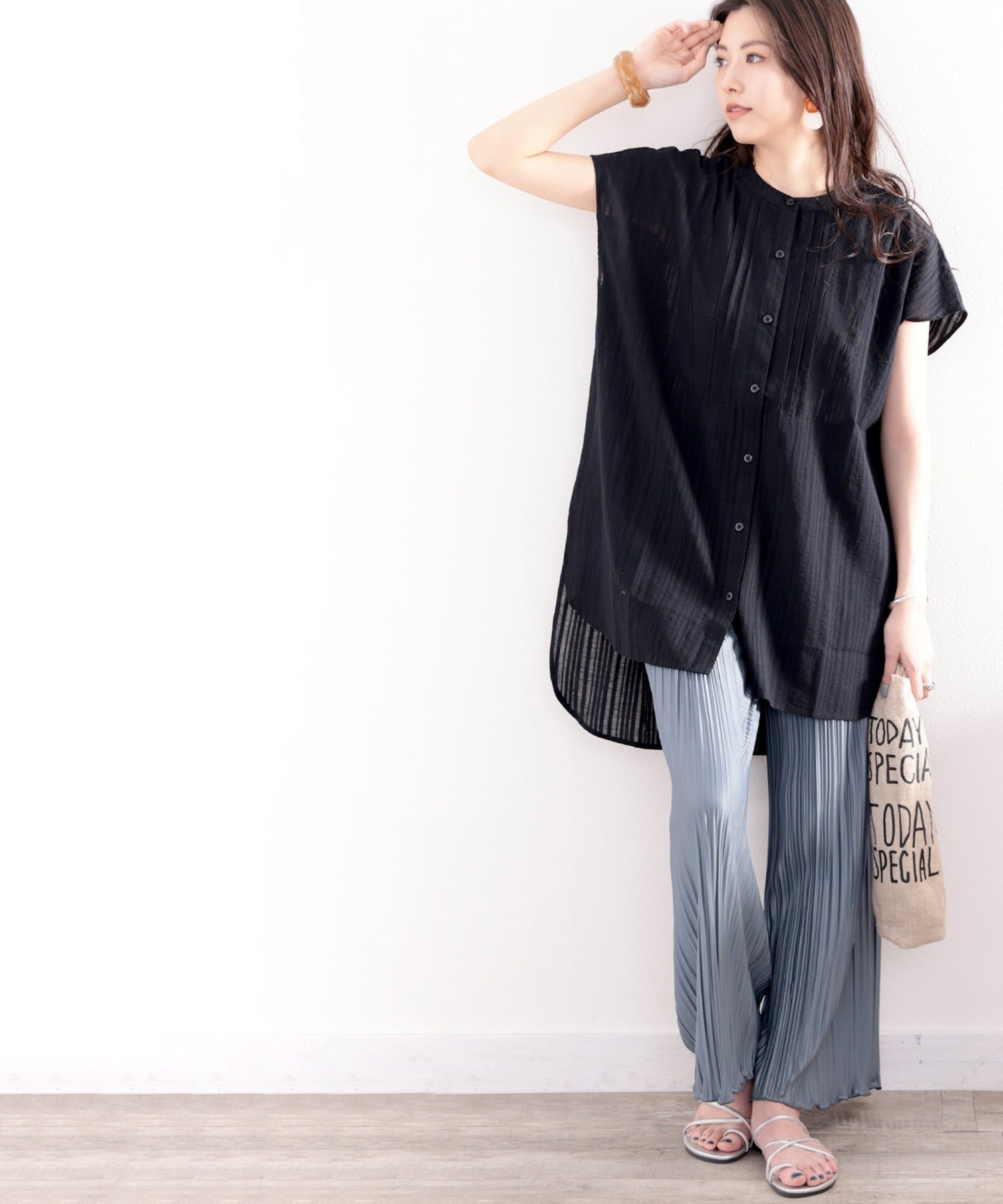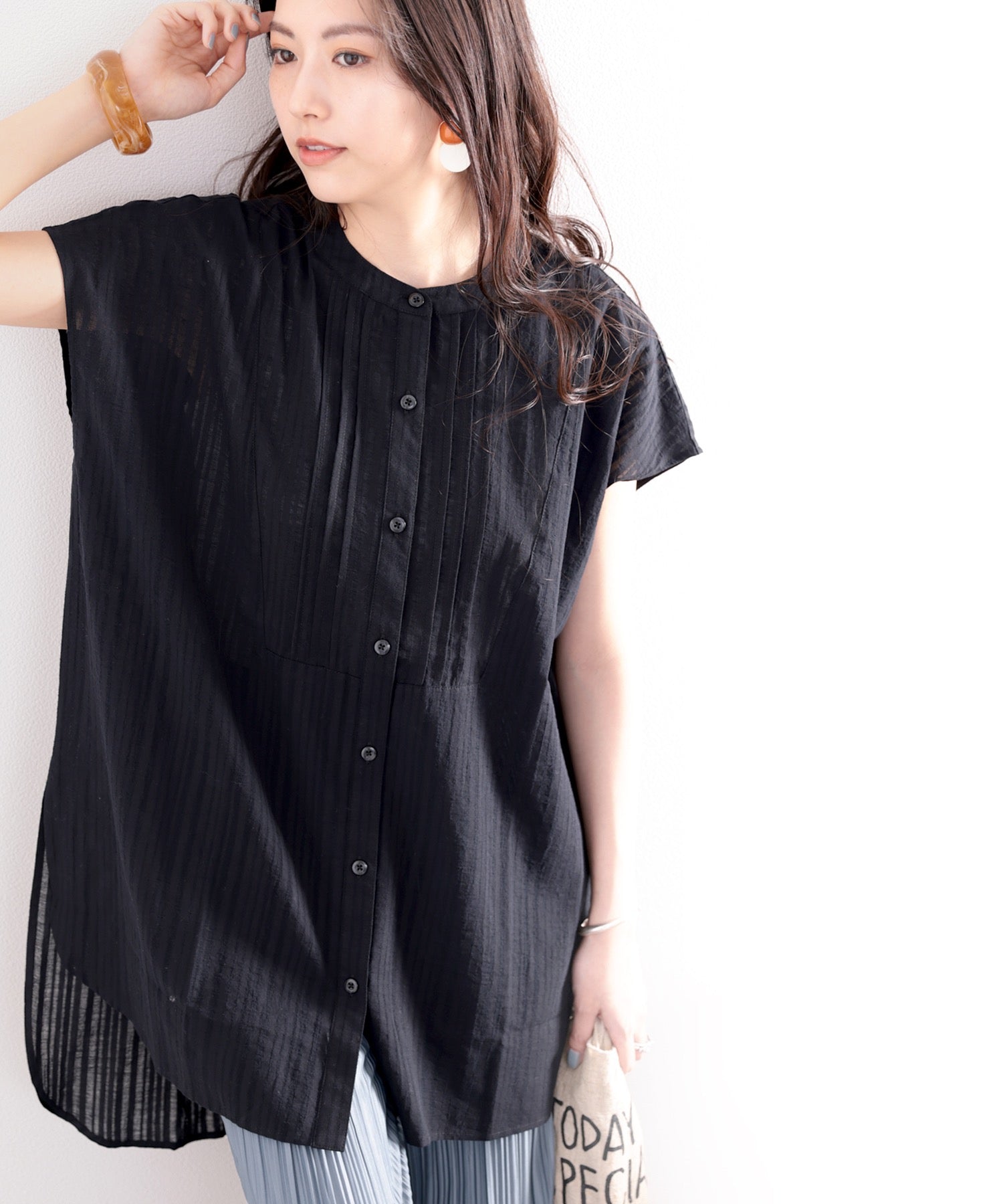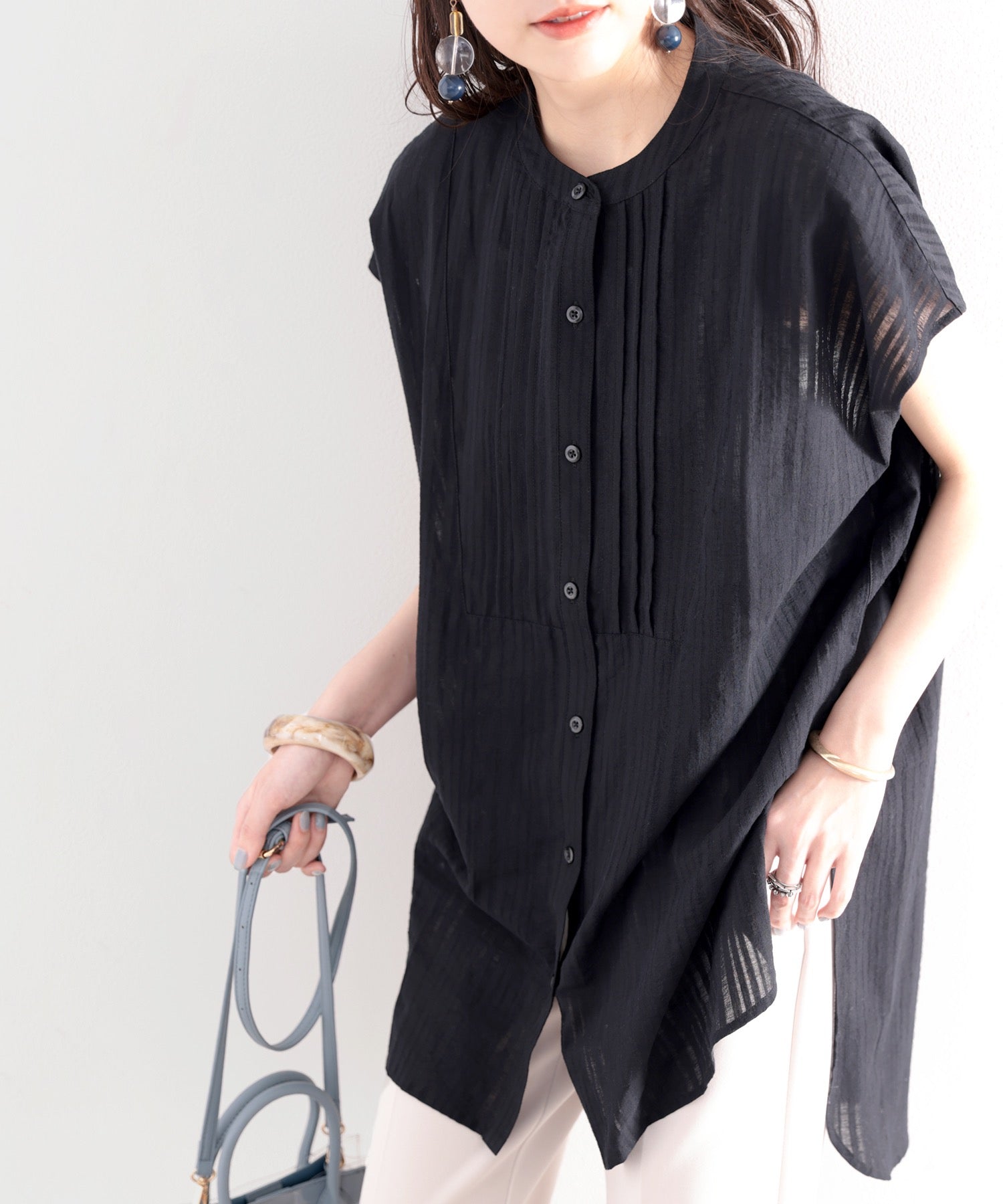 素材で魅せる、抜け感シアーブラウス。