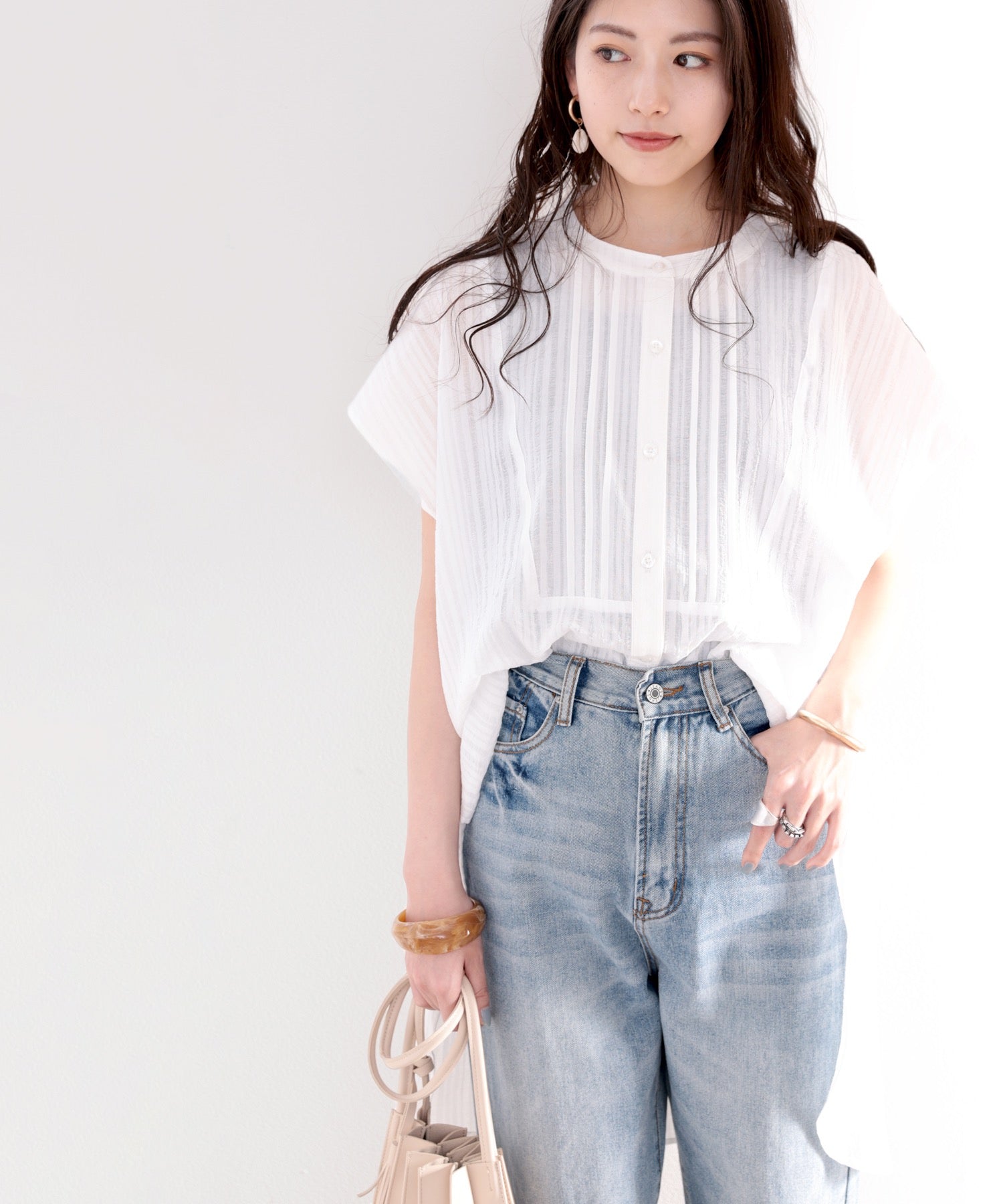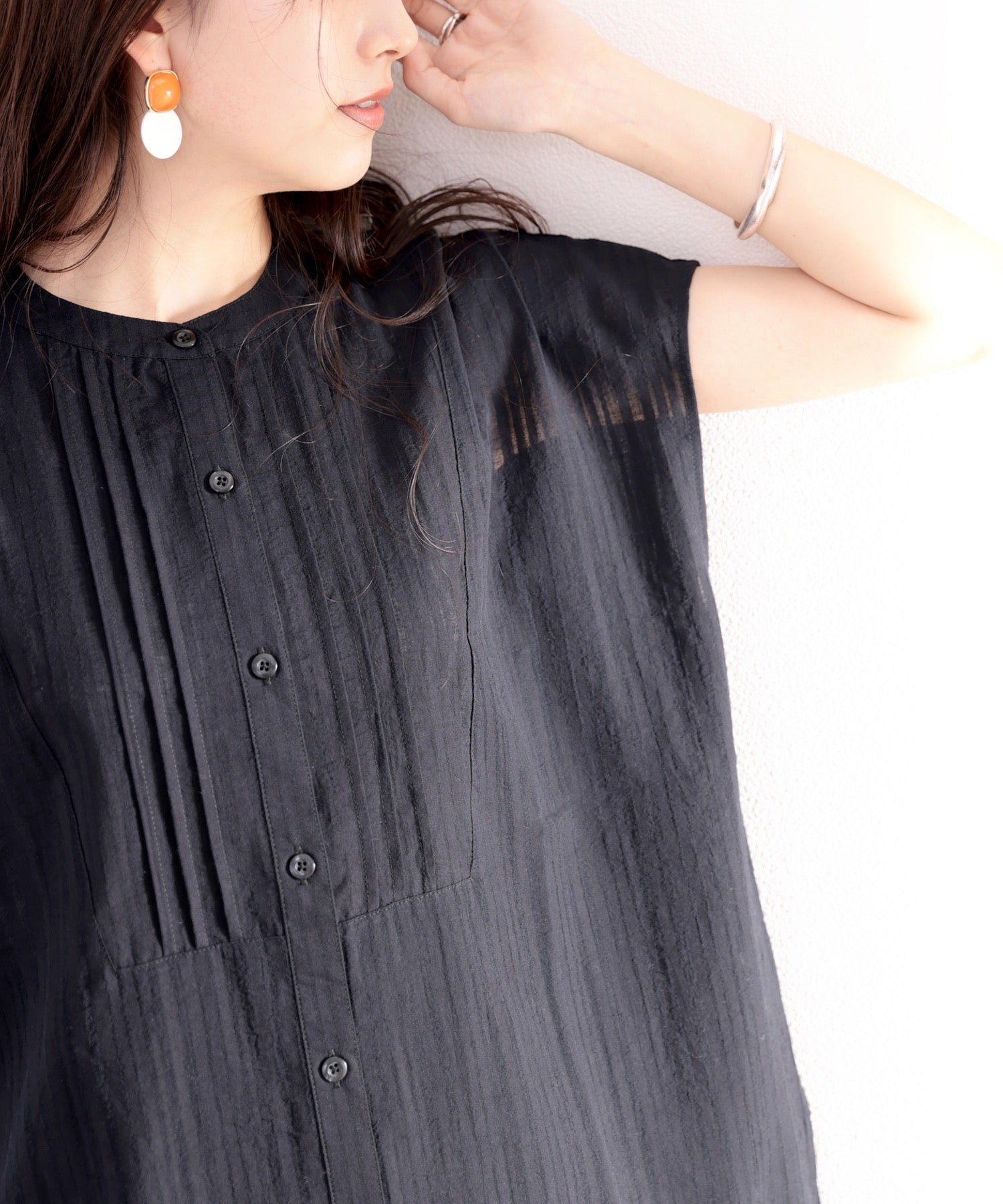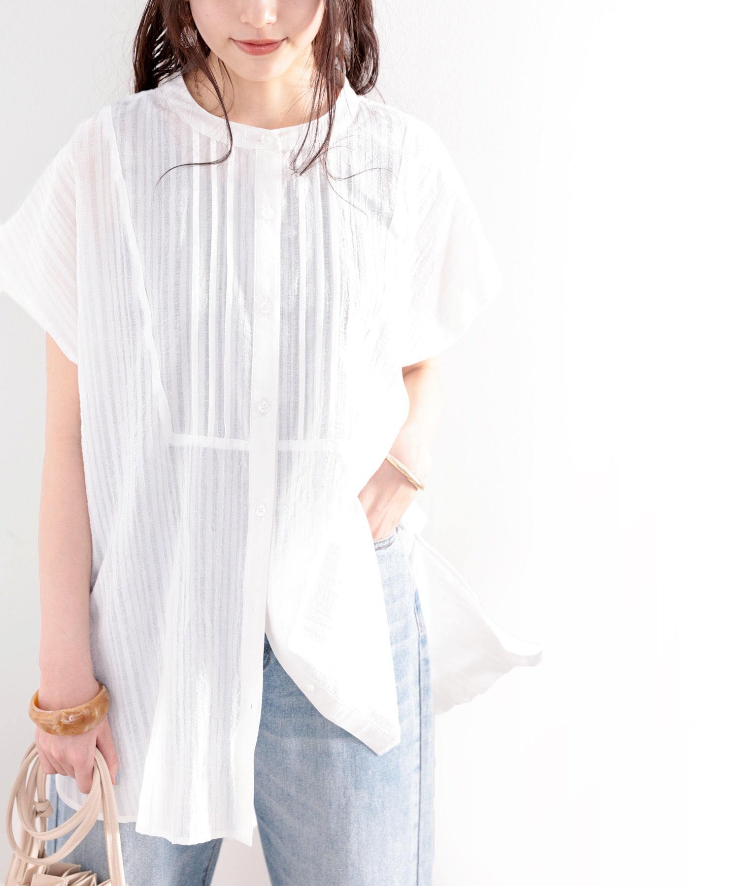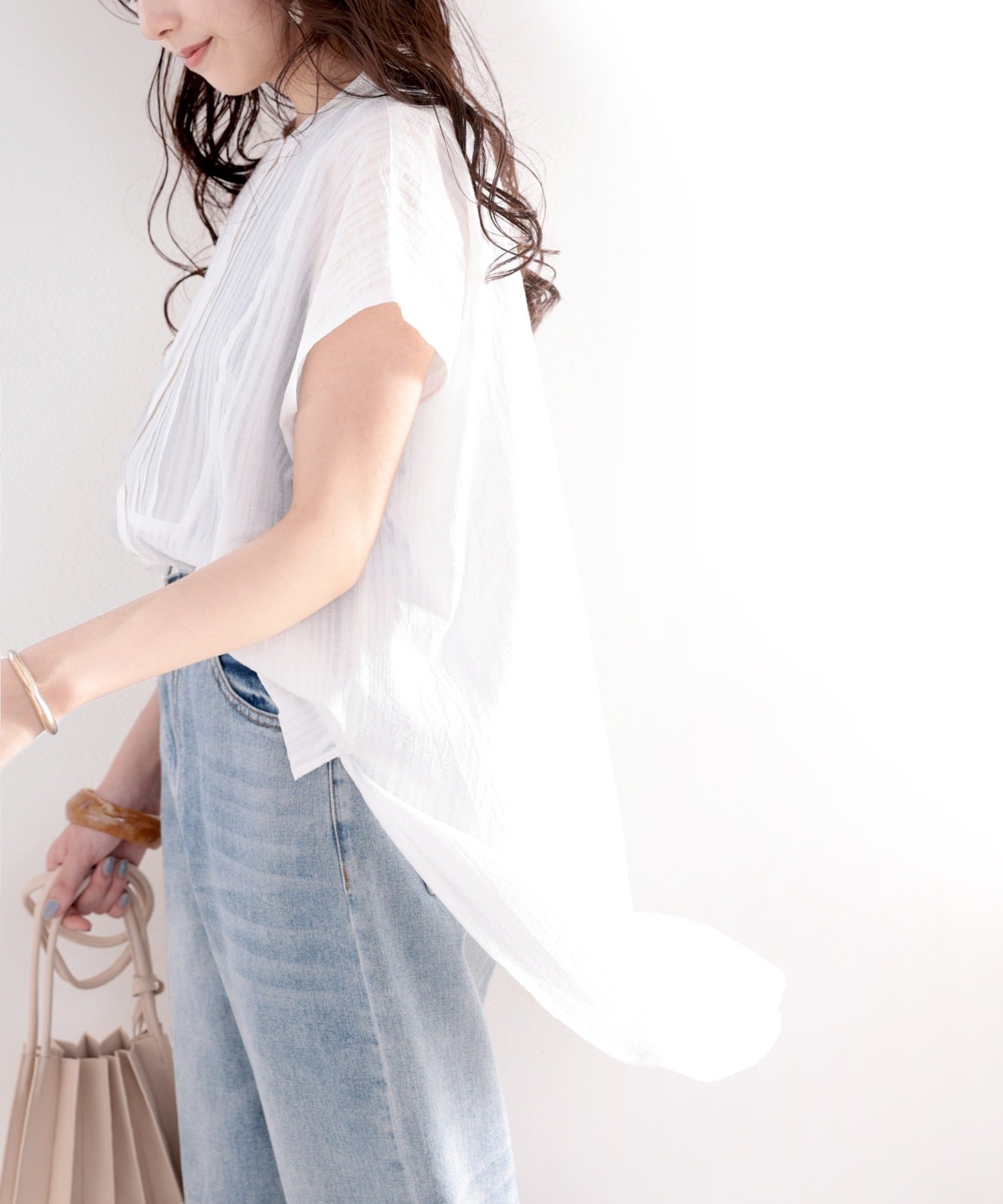 素材で魅せる、抜け感シアーブラウス。
