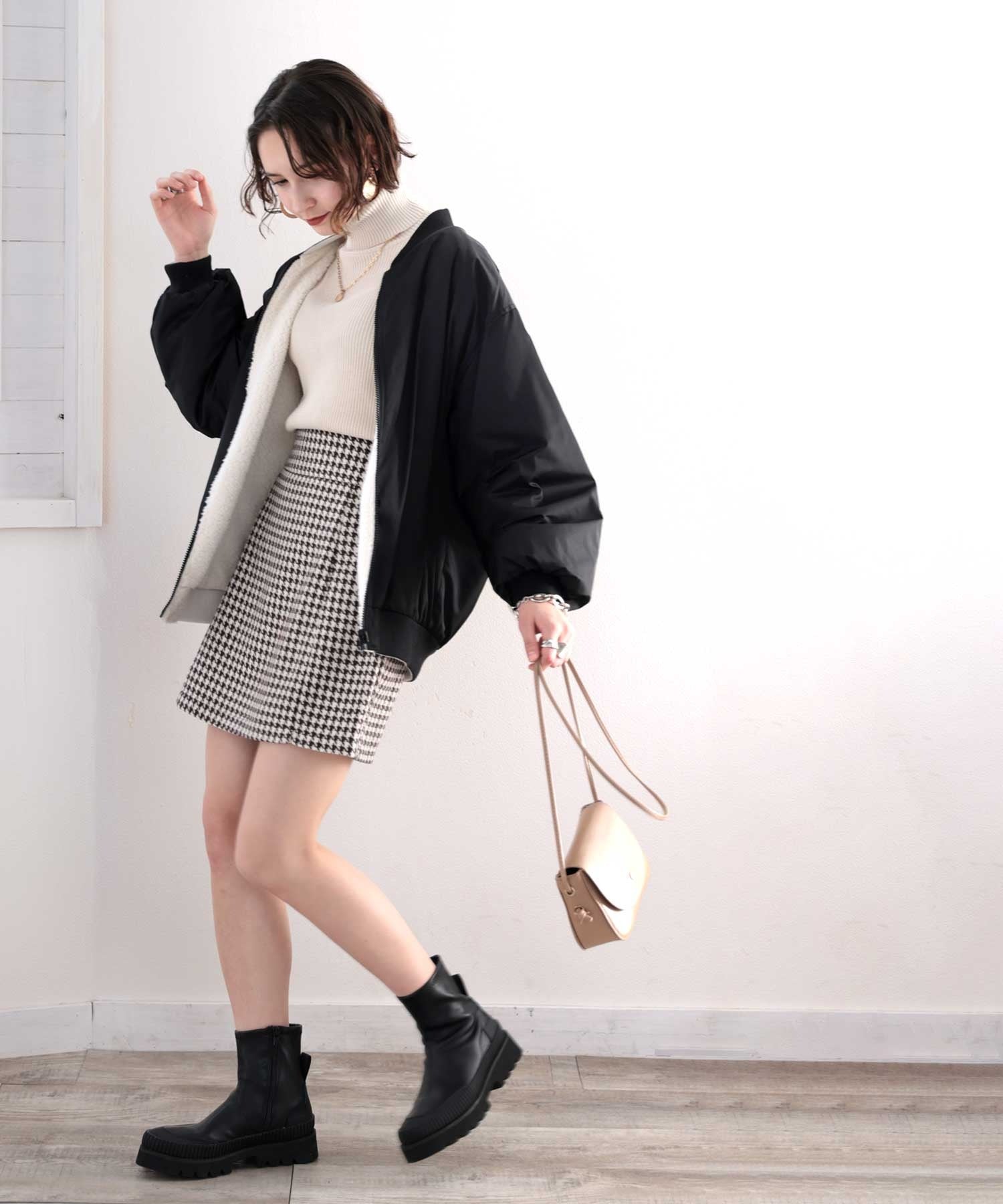 ボア面、サテン面でそれぞれ違った雰囲気になるのでコーデの幅がぐっと広がる。