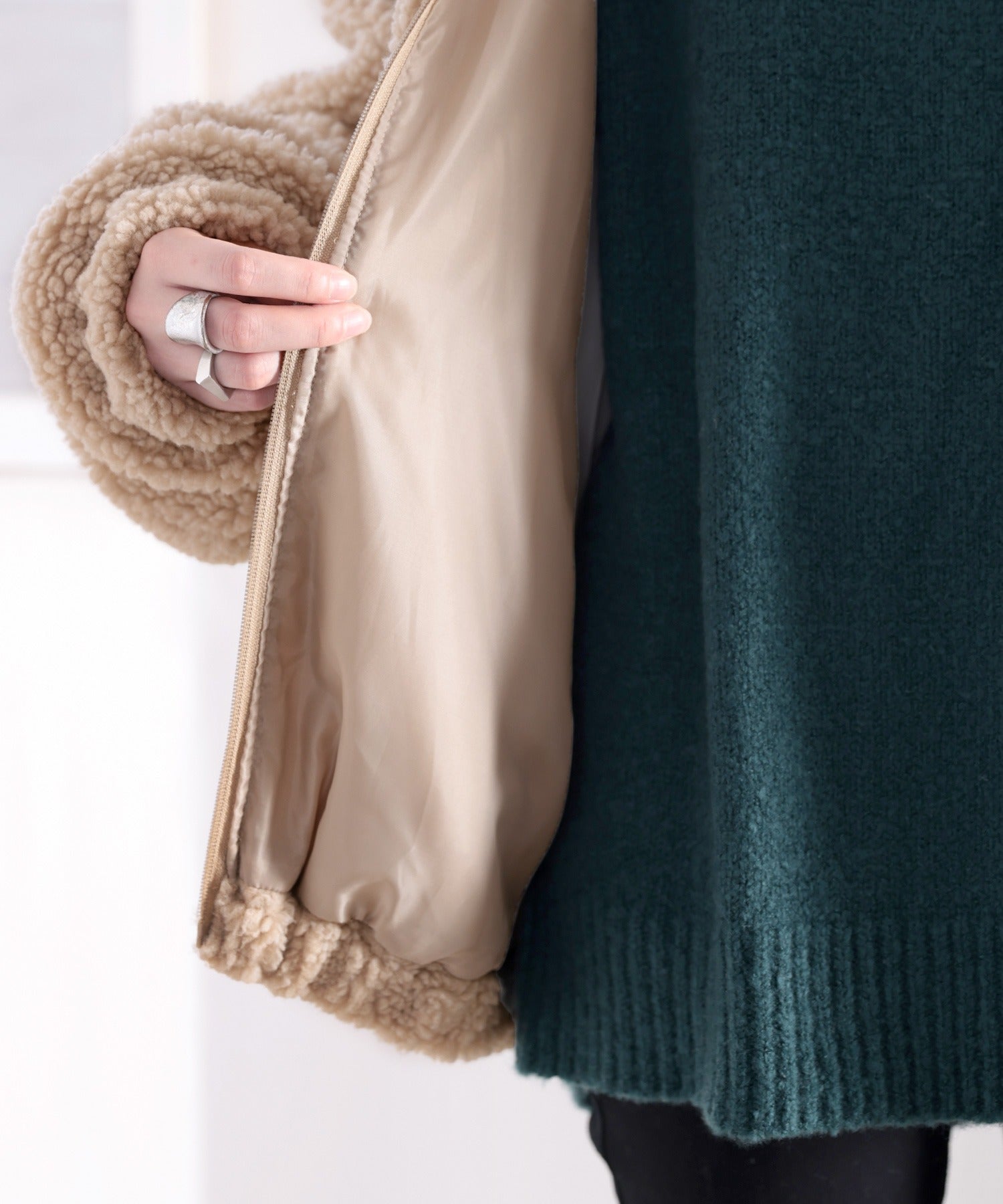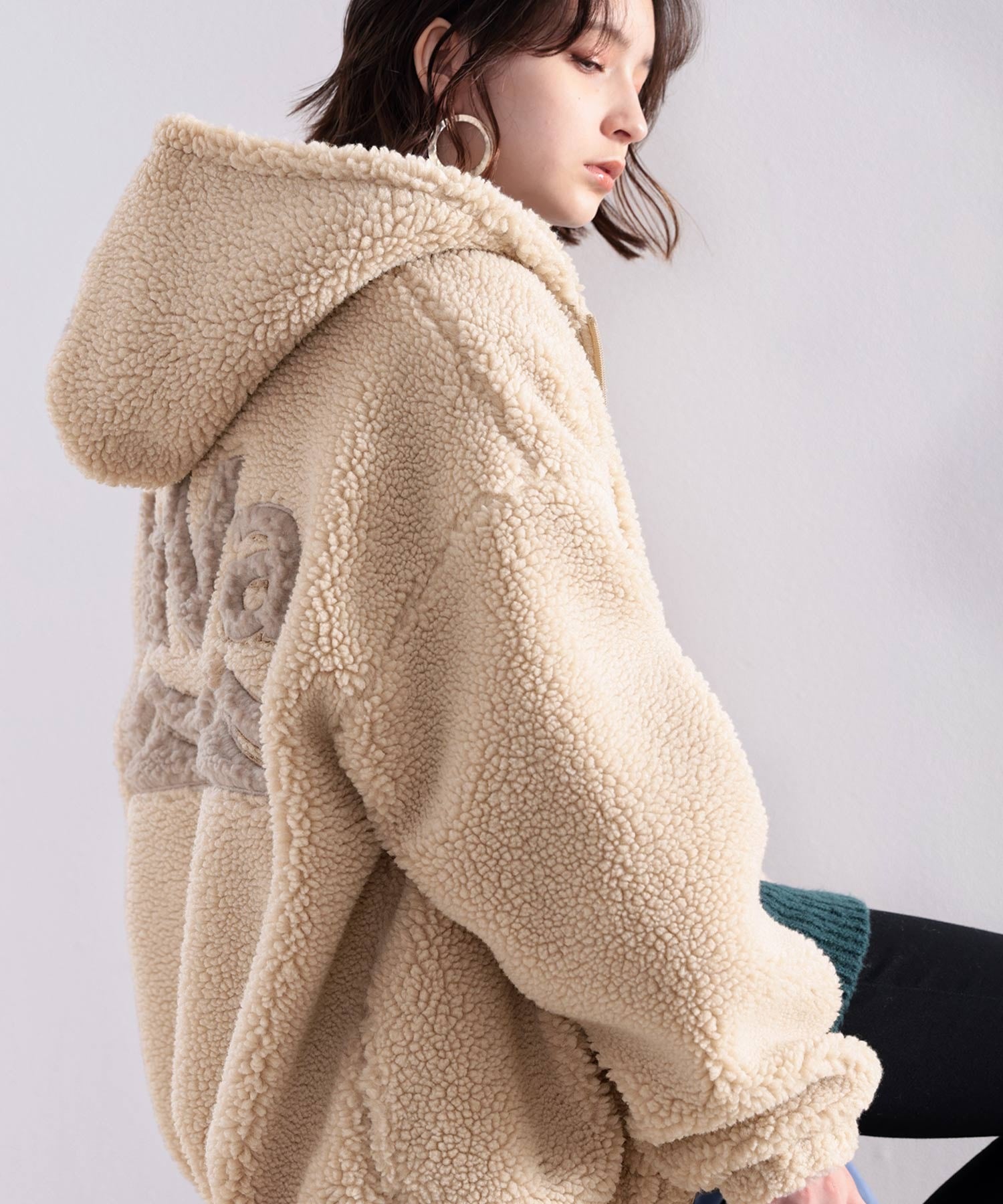 しっかりとしたボア生地で、フードや襟元もしっかり立ち上がります。