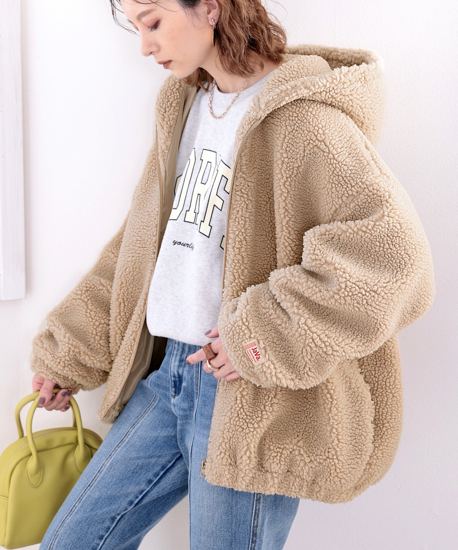 JaVaコラボ ワッペン付きボアブルゾン