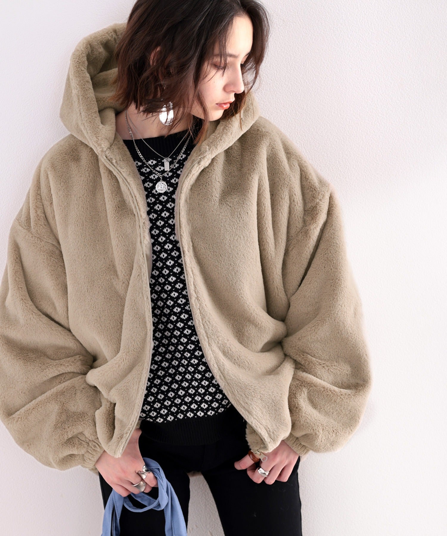 もこふわに癒され。ボリュームスリーブファーパーカー ce1010033