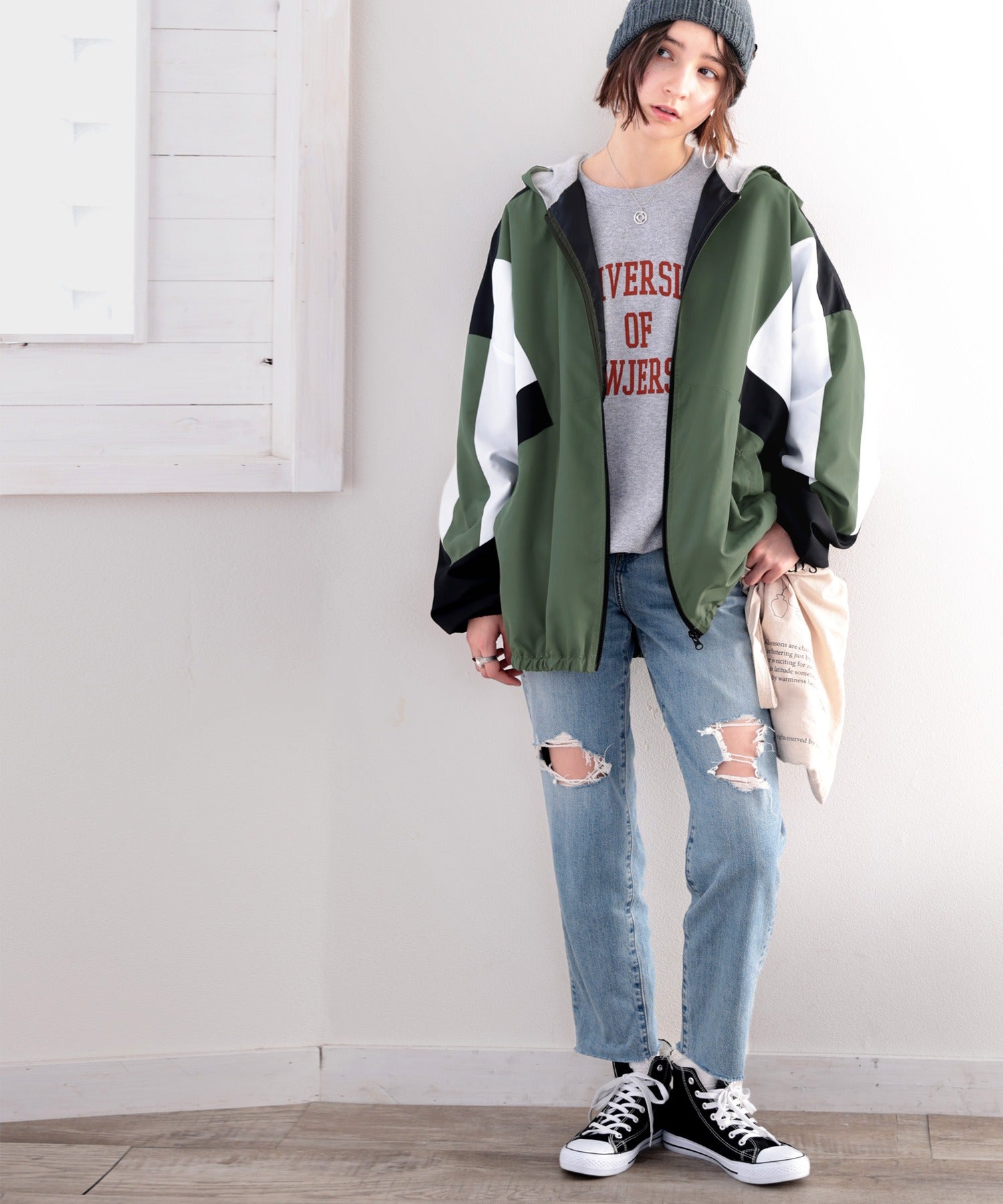 オーバーサイズシルエットでよりスポーティーなムードに。