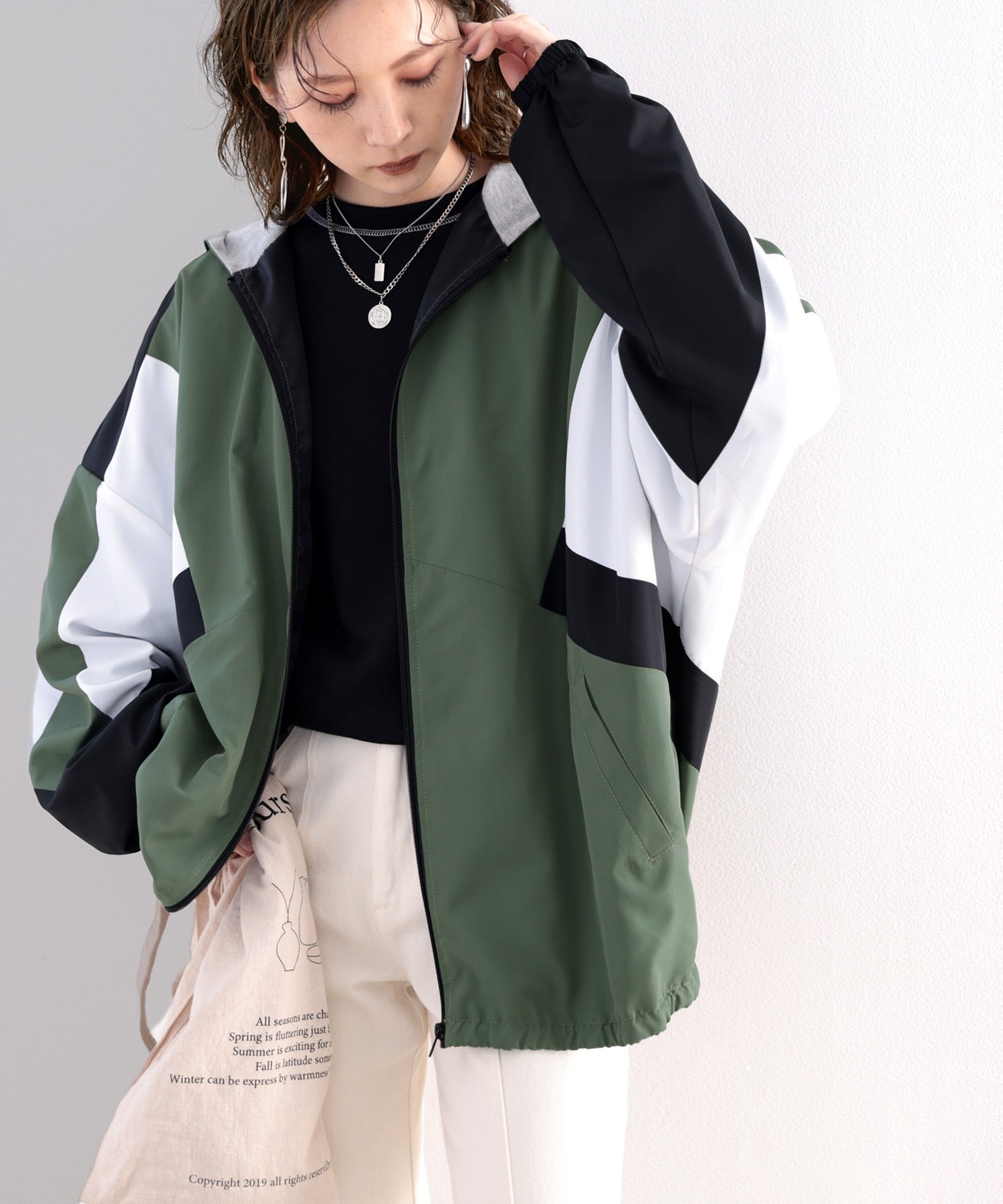 ヒップまで隠れるミドル丈でゆったりとしたシルエットが今っぽ雰囲気。