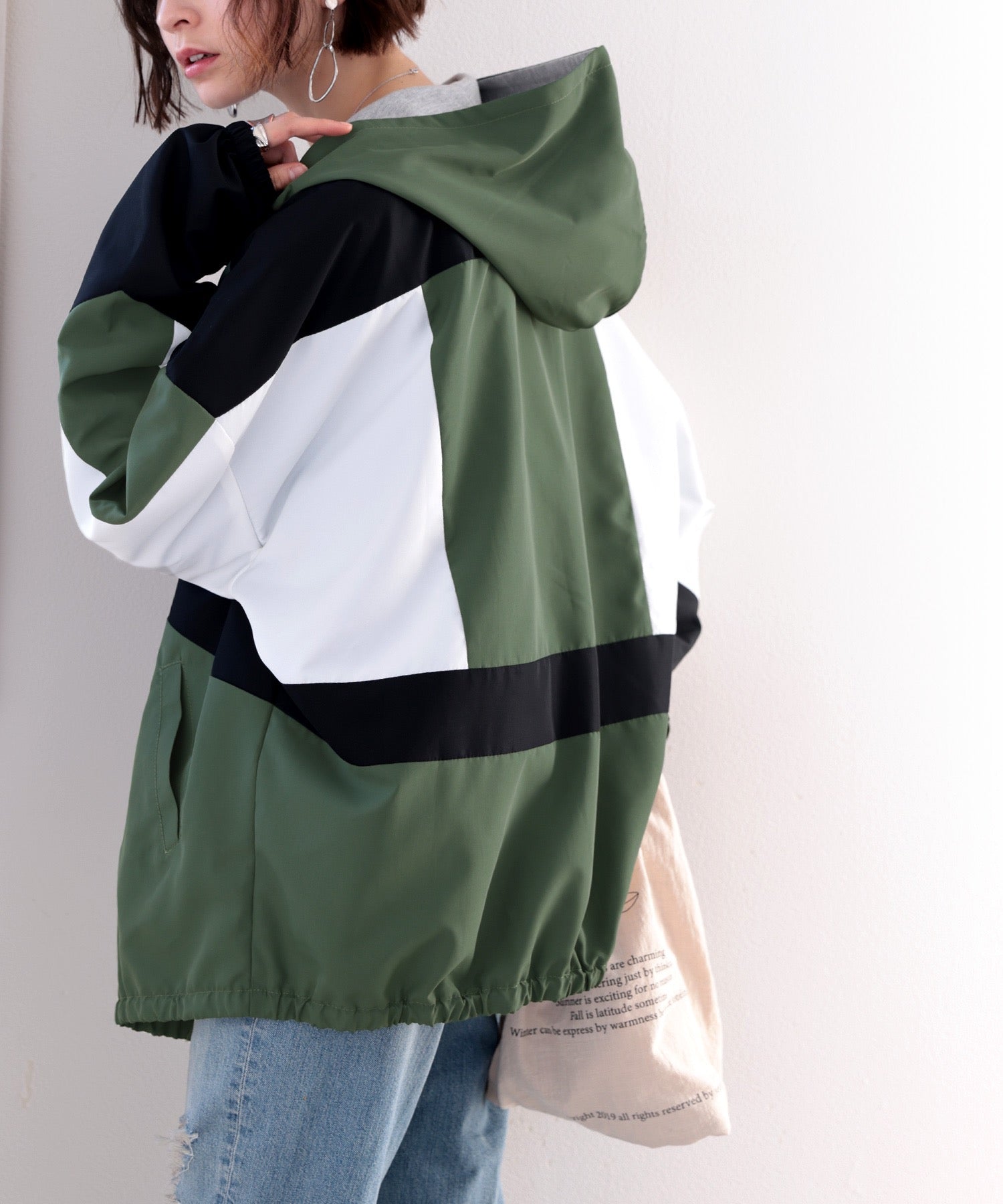 フードはカットソー生地との2枚仕立てでよりカジュアルに。