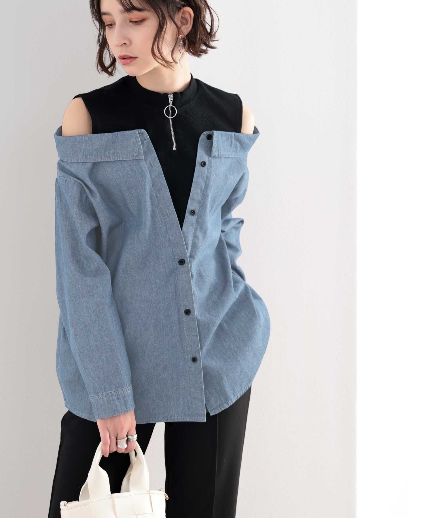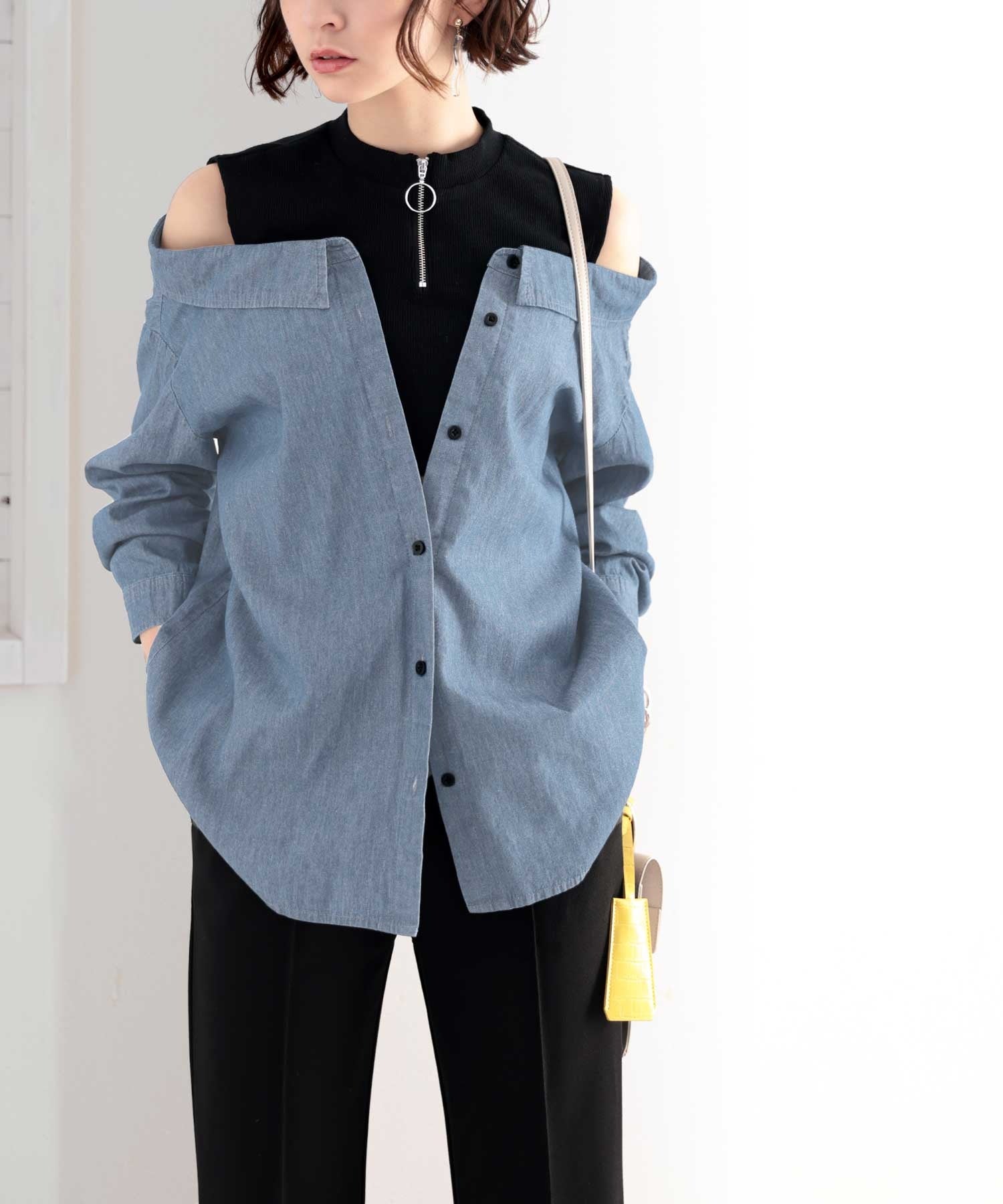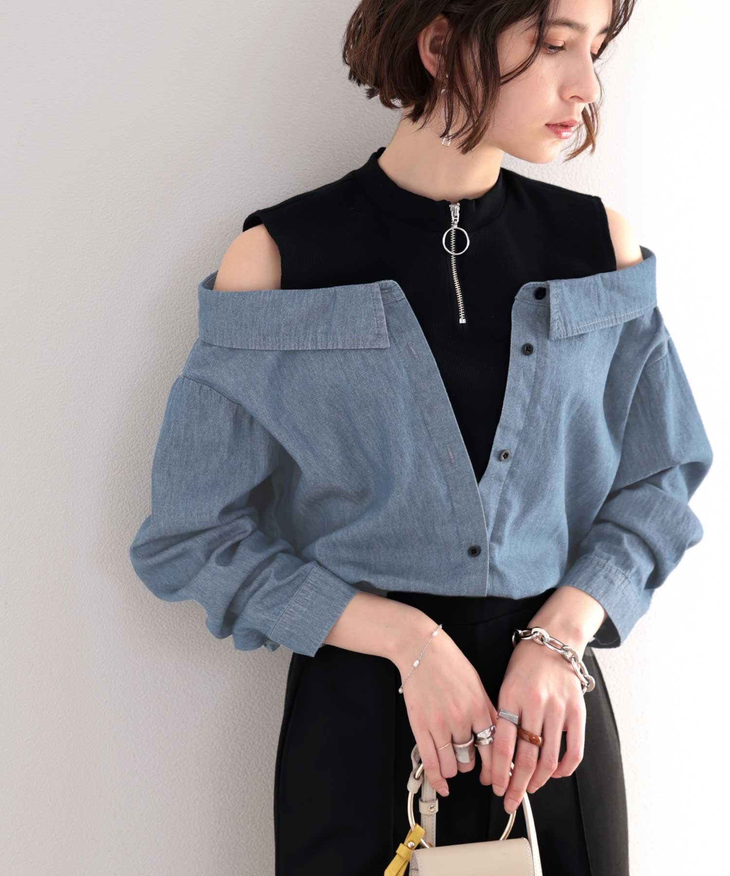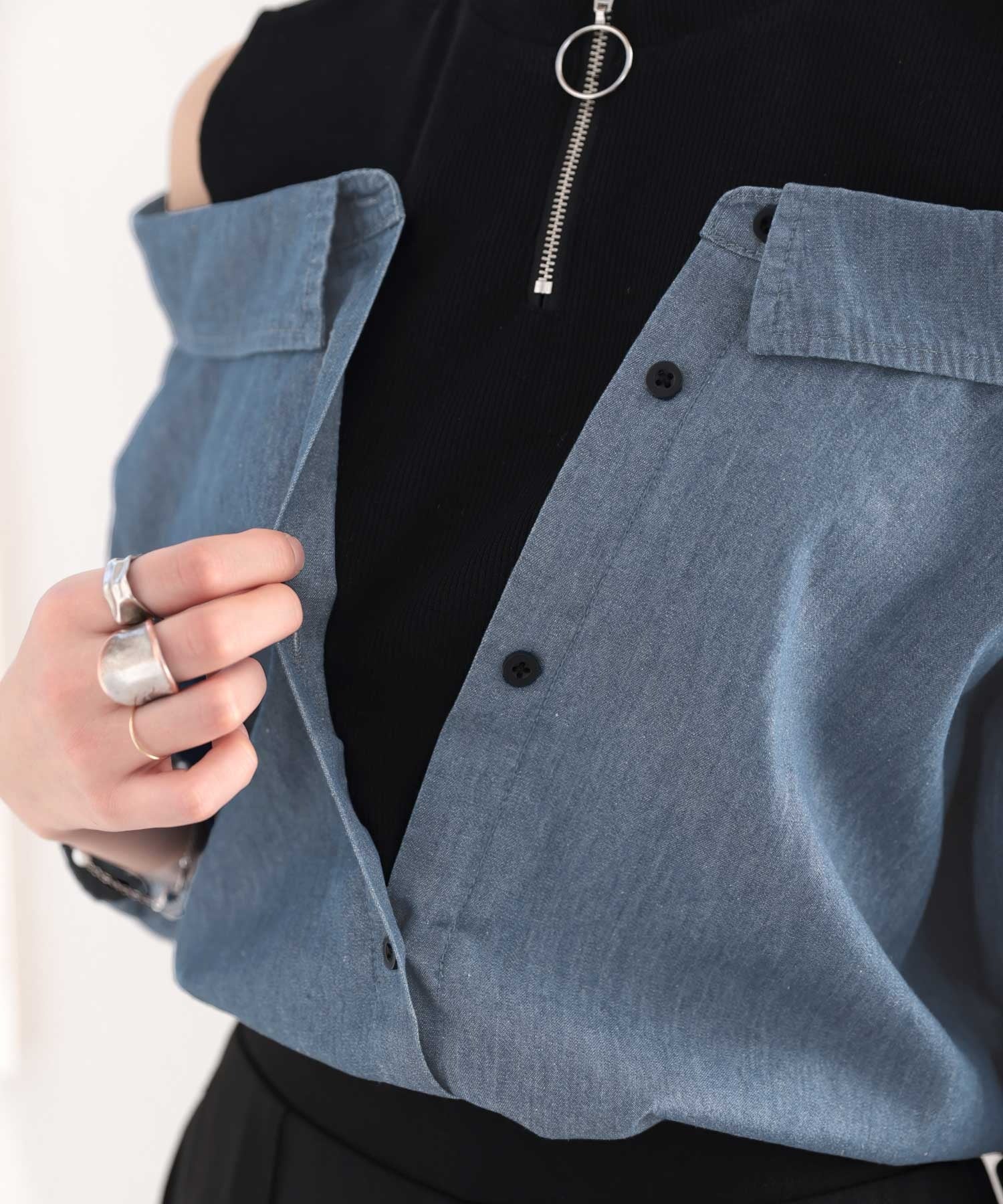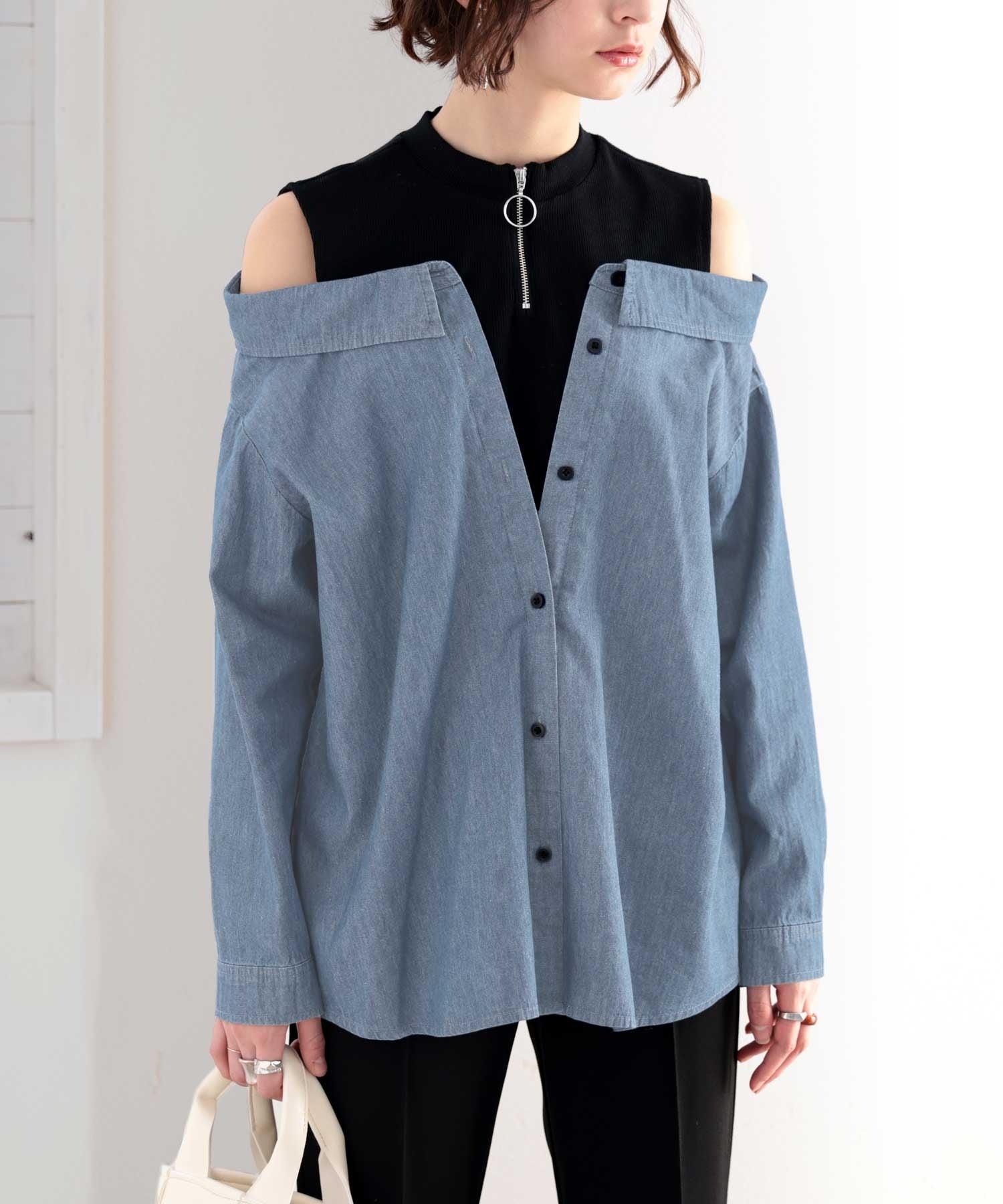 漂う抜け感。インナー×デニムライクドッキングシャツ ce1010048