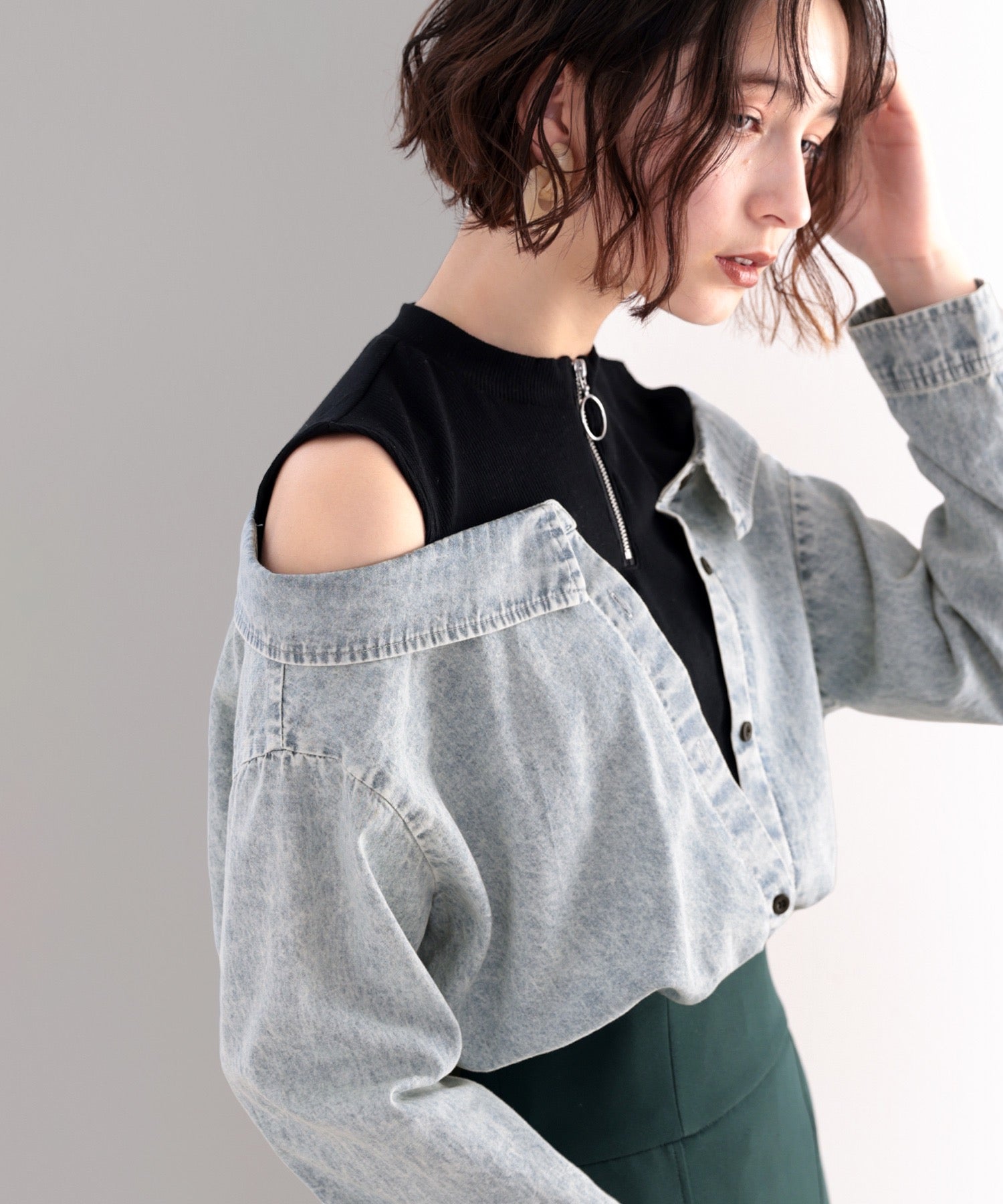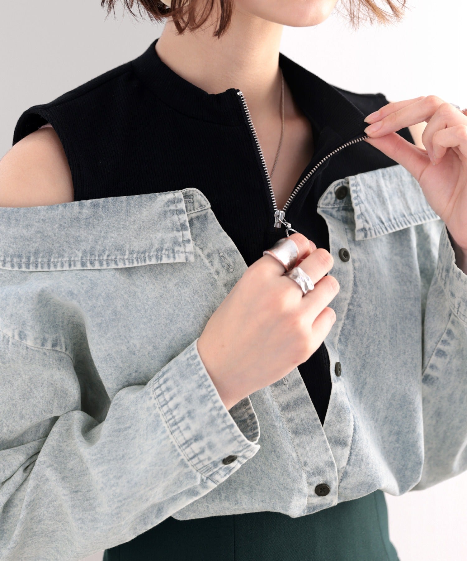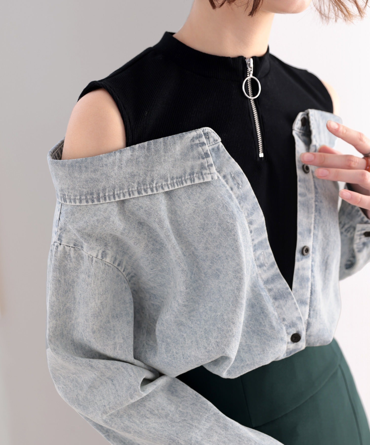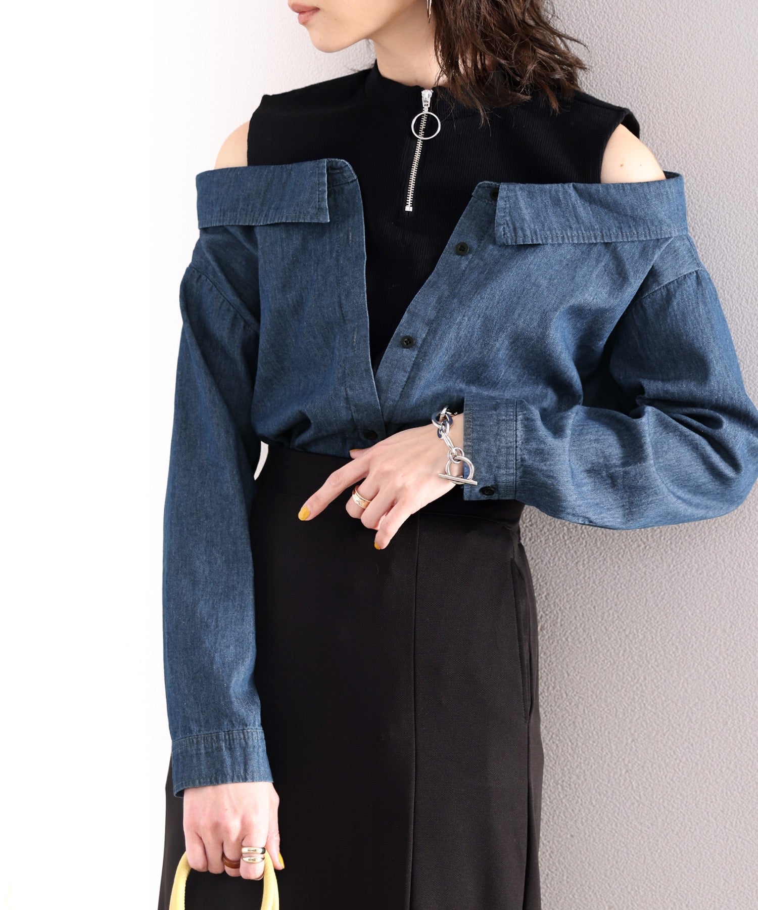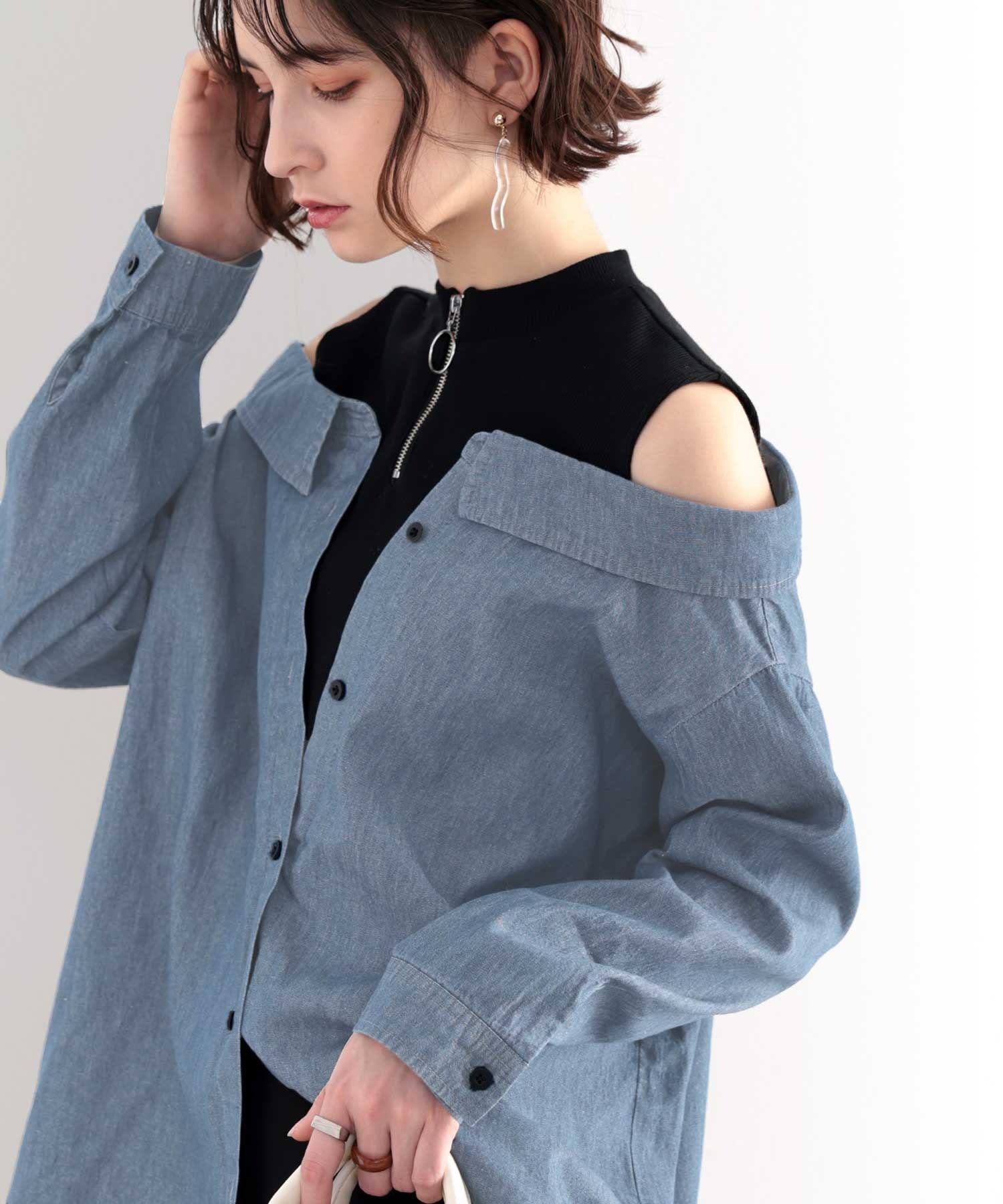 漂う抜け感。インナー×デニムライクドッキングシャツ ce1010048