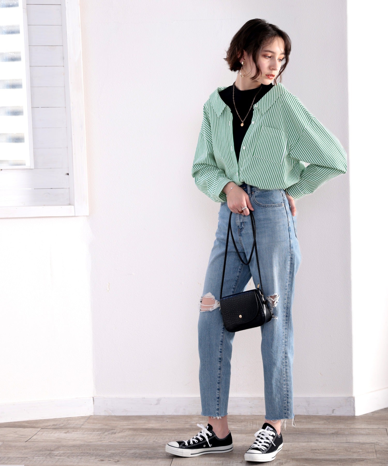 ダメージデニムやスニーカーを合わせてかっこいい着こなしも◎