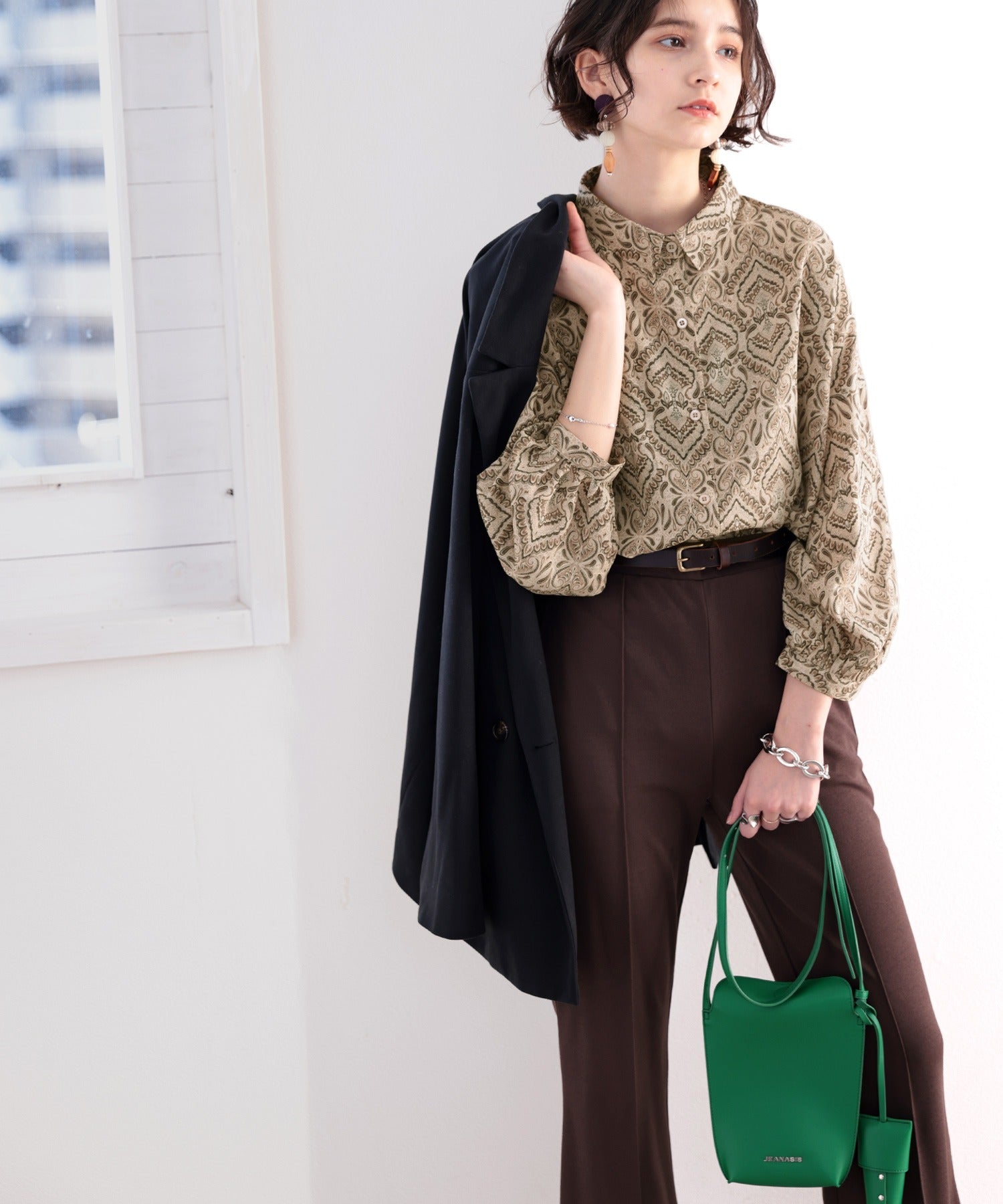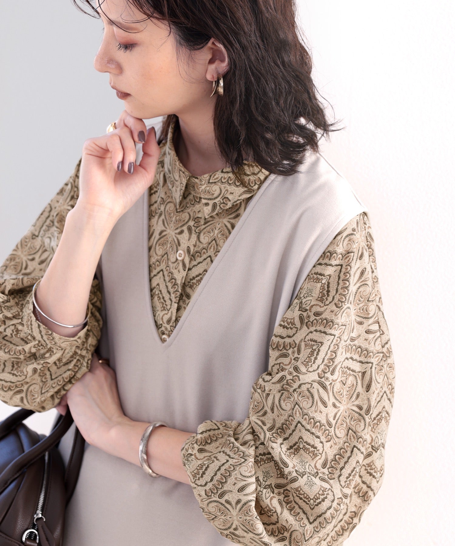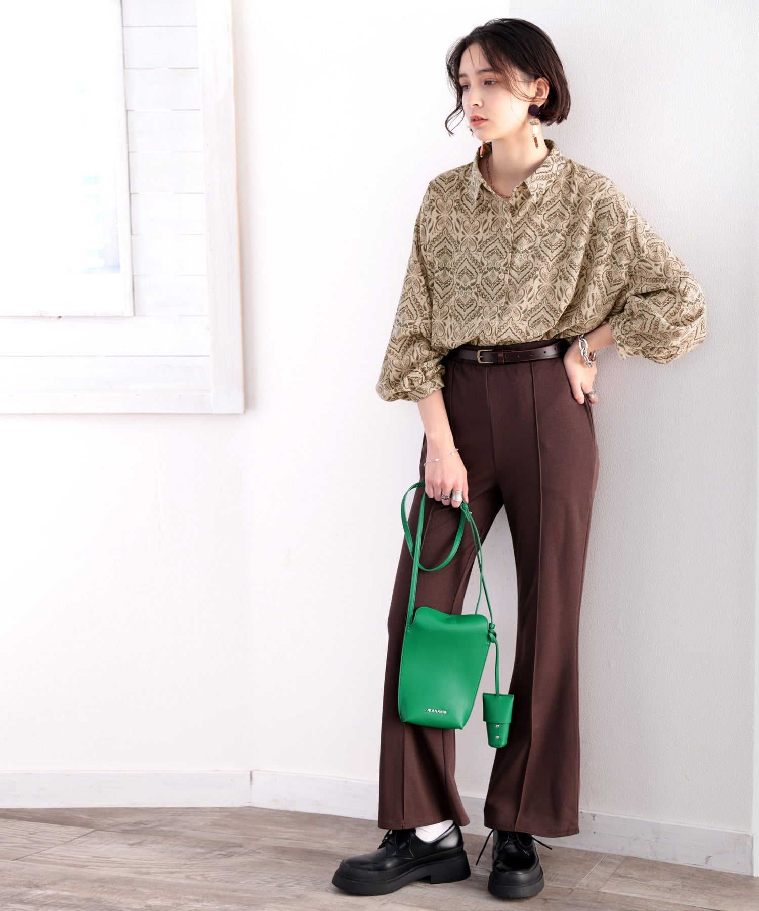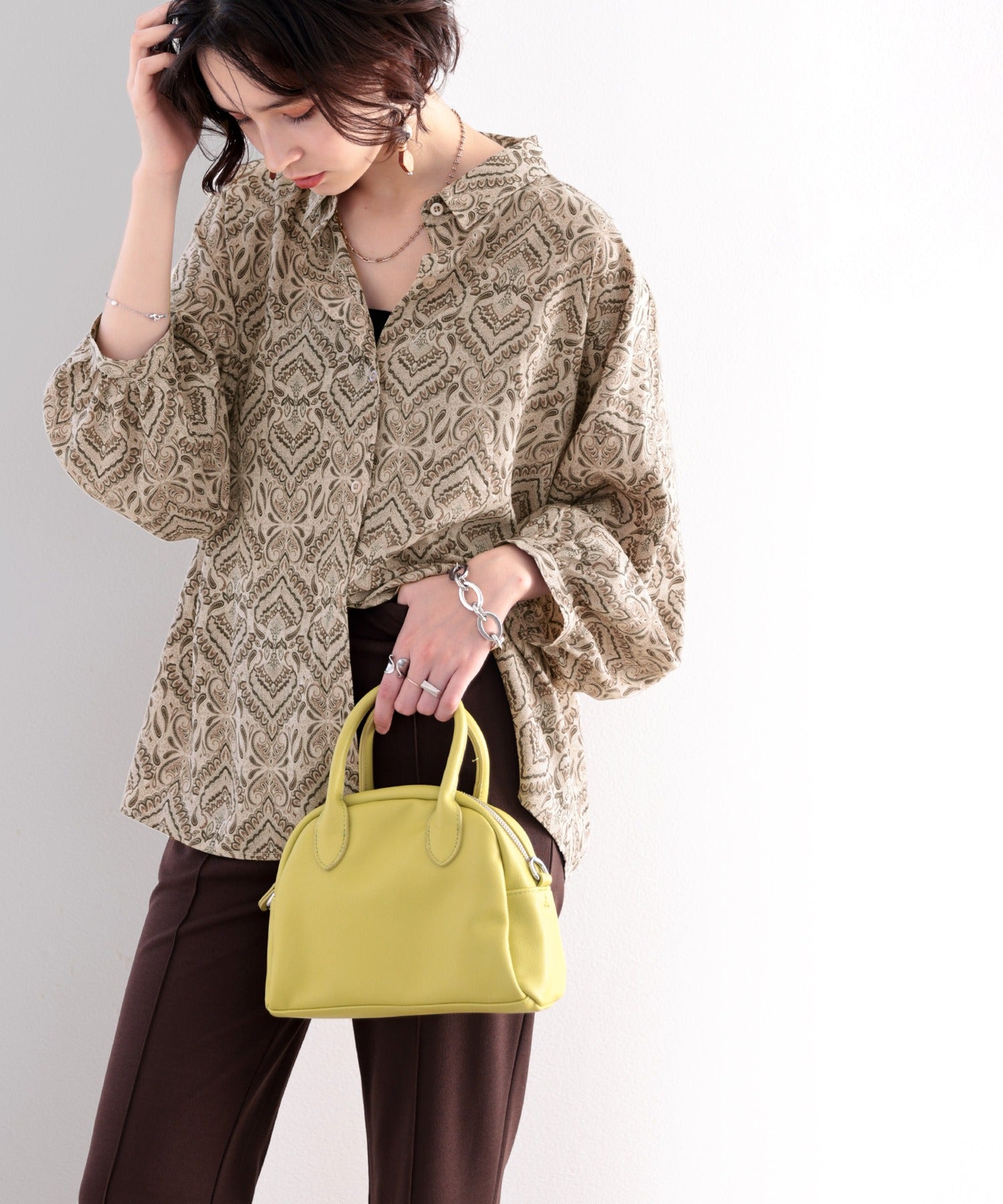 同系色のブラウンやベージュをチョイスして、レトロ感を加速!