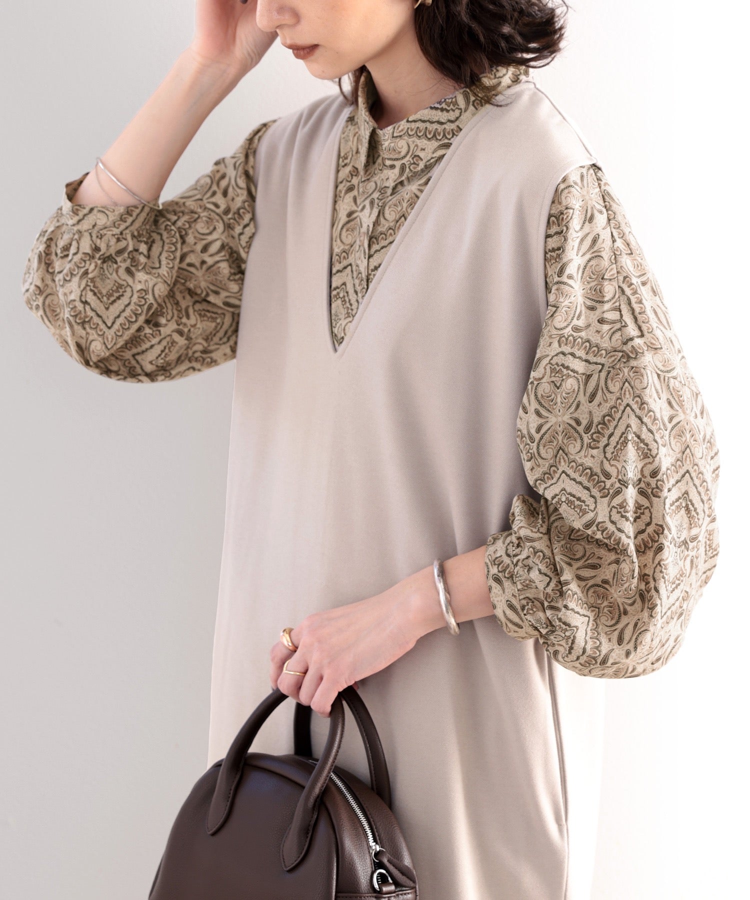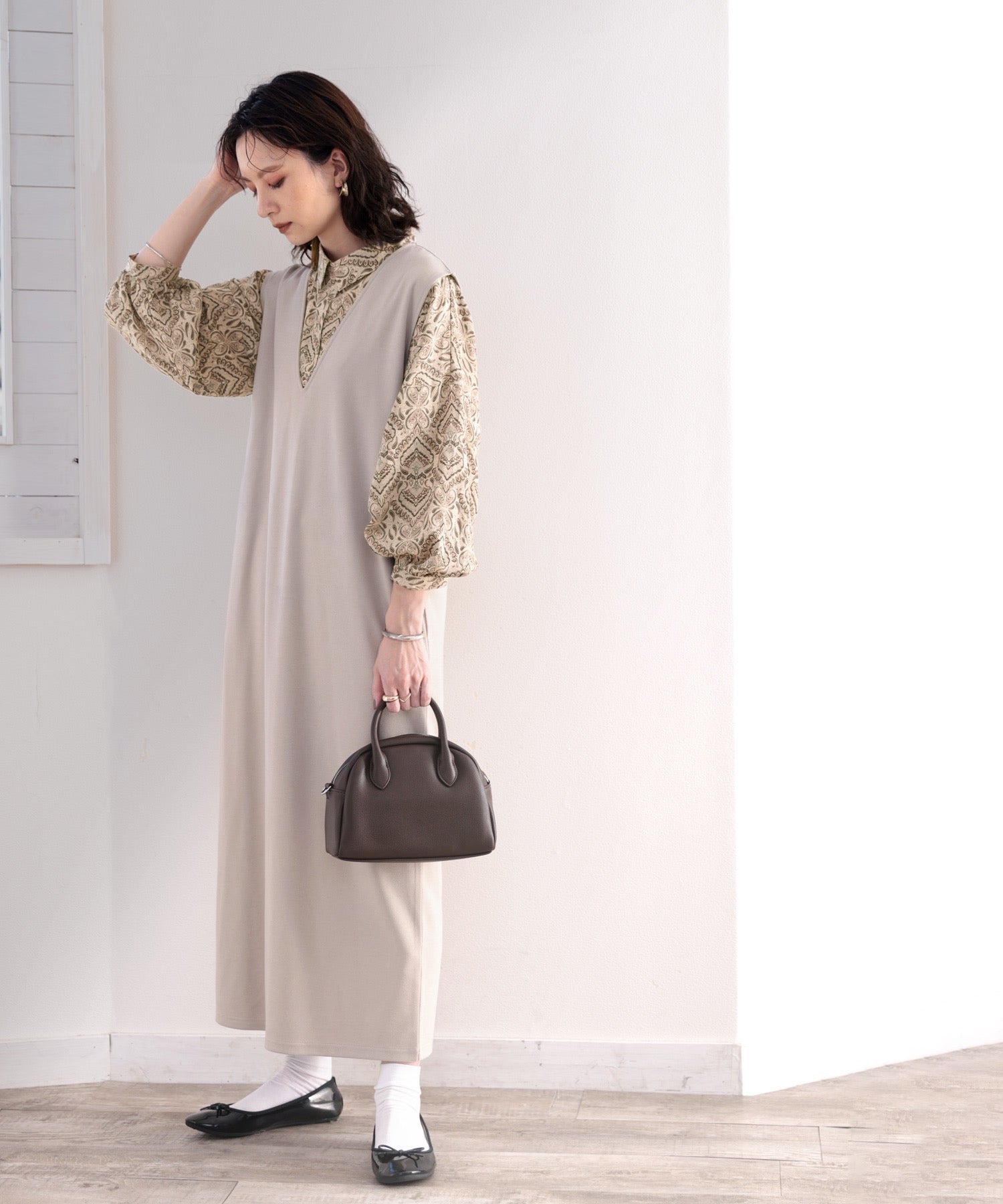 ポワン袖が手元を華奢見せ。