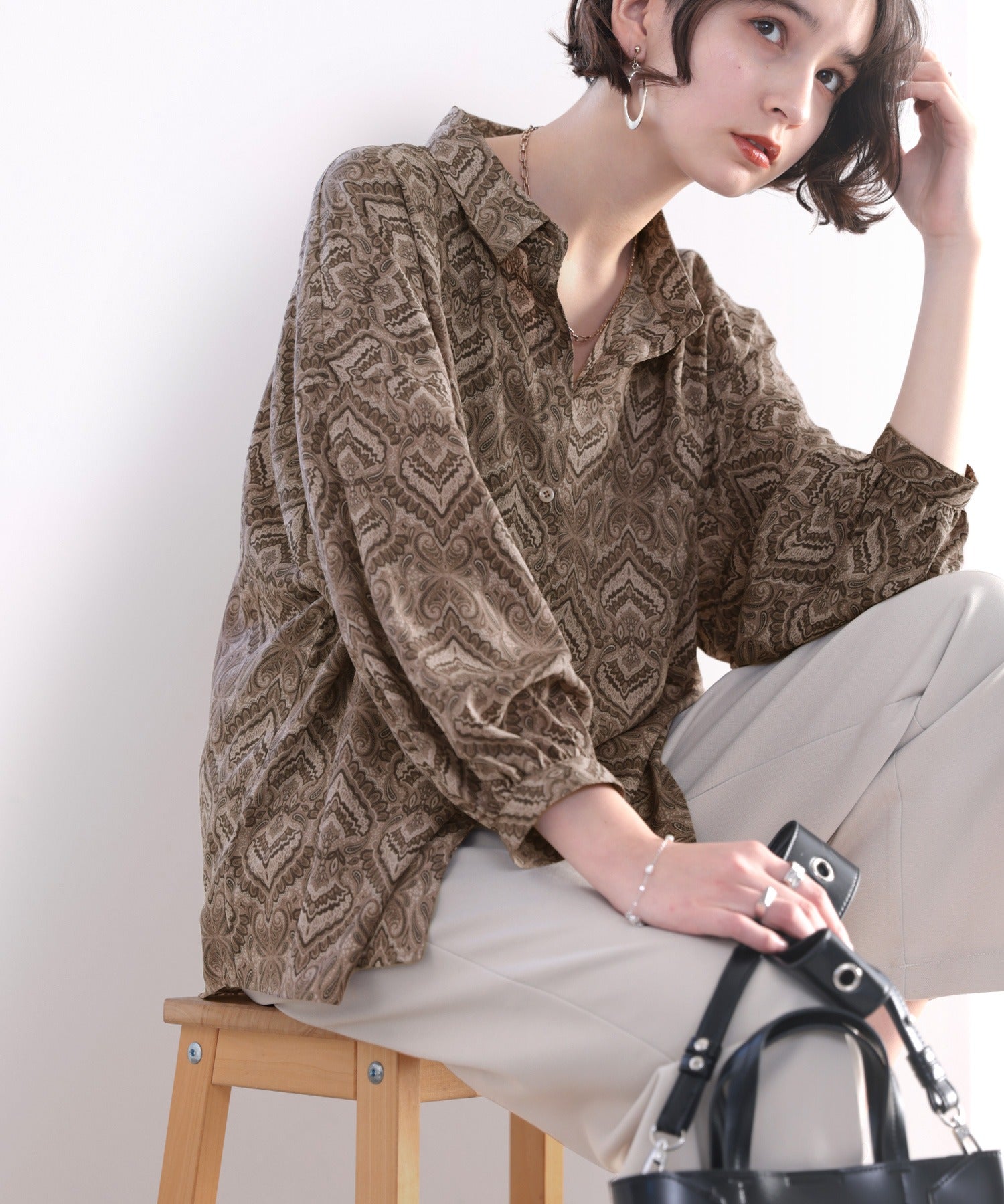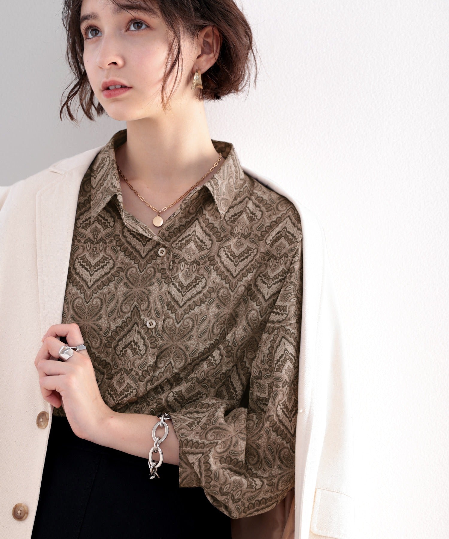 レトロにきゅんっ。ダマスク柄ルーズシャツ ce1010053