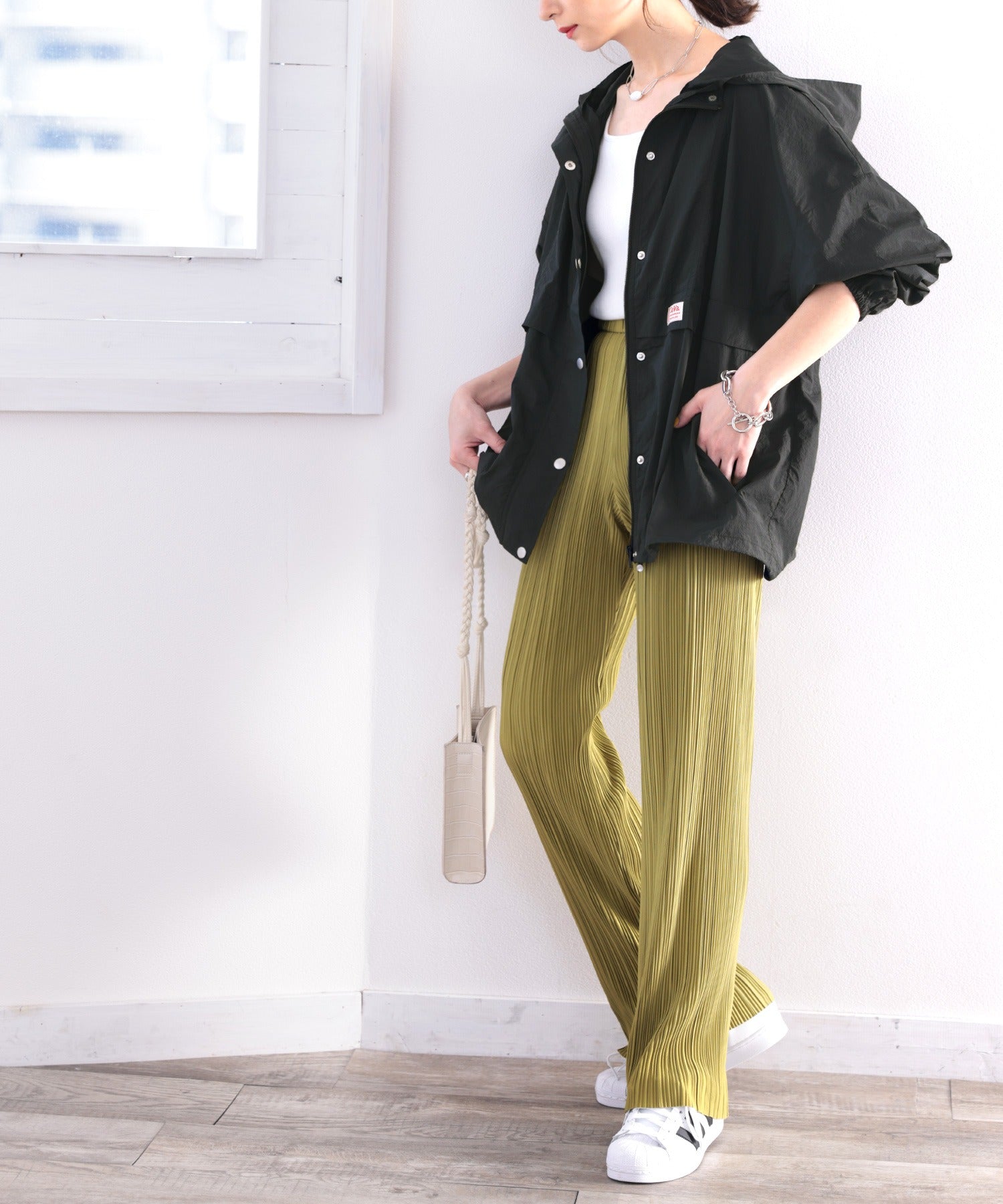 ボトムに合わせてシルエットを変えて楽しむことも。