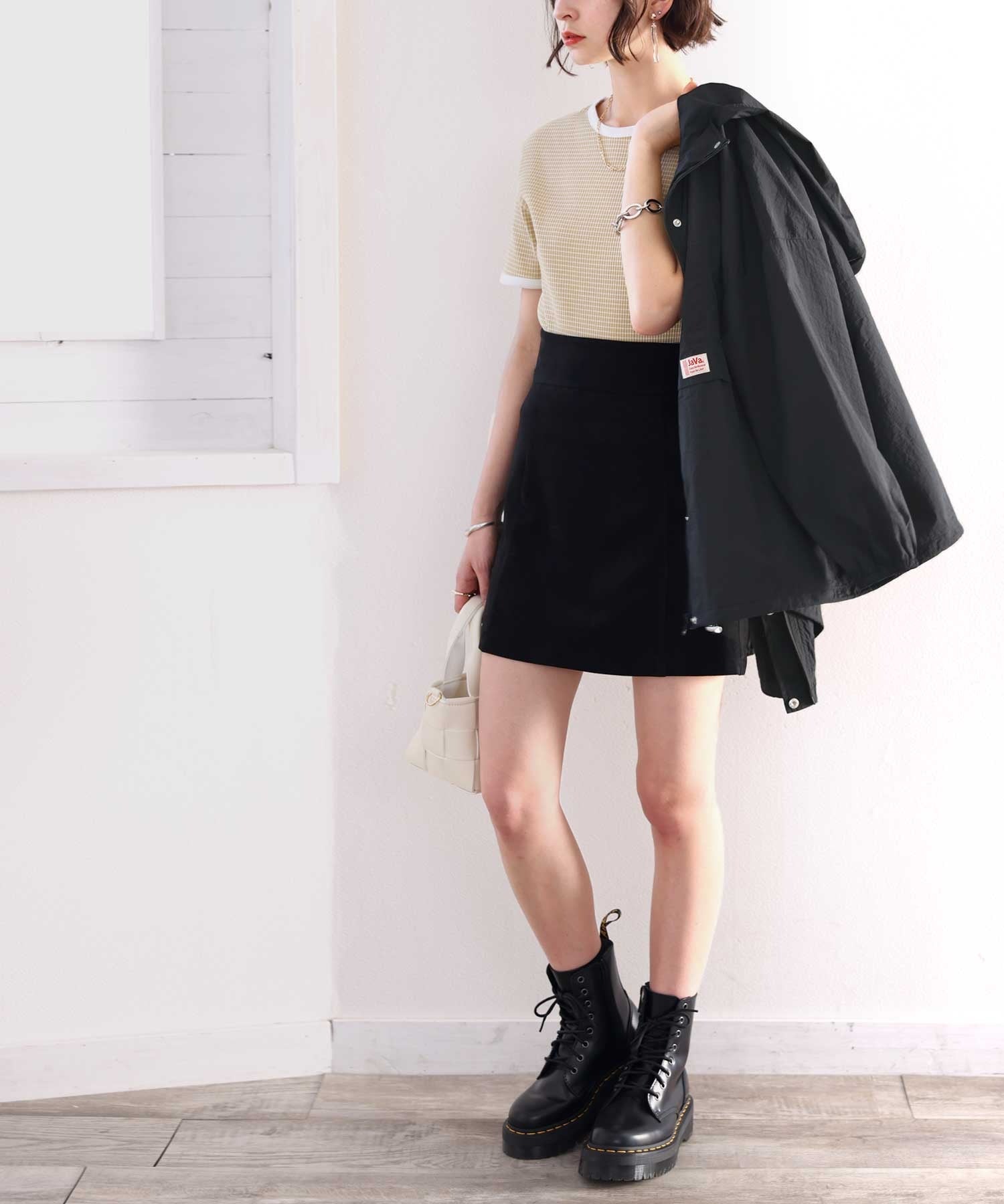 カジュアルだけでなくスカートと合わせて甘辛mixな雰囲気を楽しむのもおすすめ。