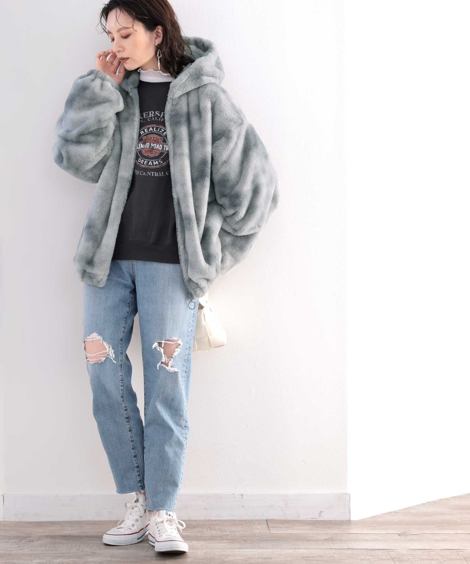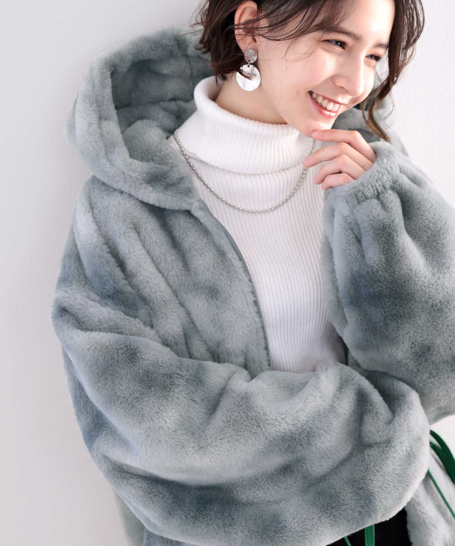 大きくて印象的なフードが存在感抜群な上、小顔効果も期待できます。
