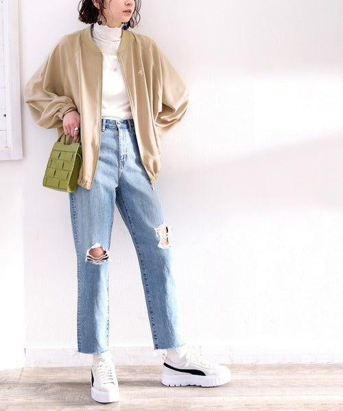 滑らか、とろん。ワンポイント刺繍入りブルゾン ce1010066
