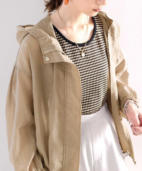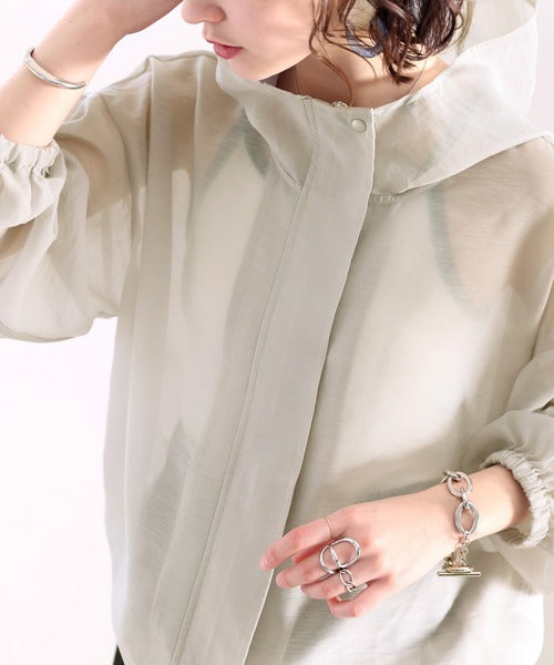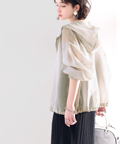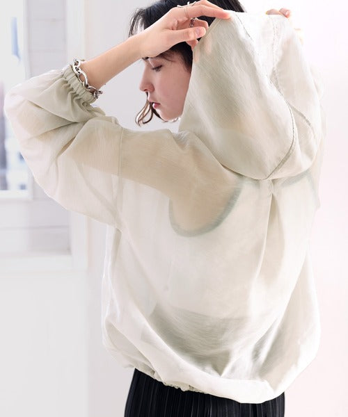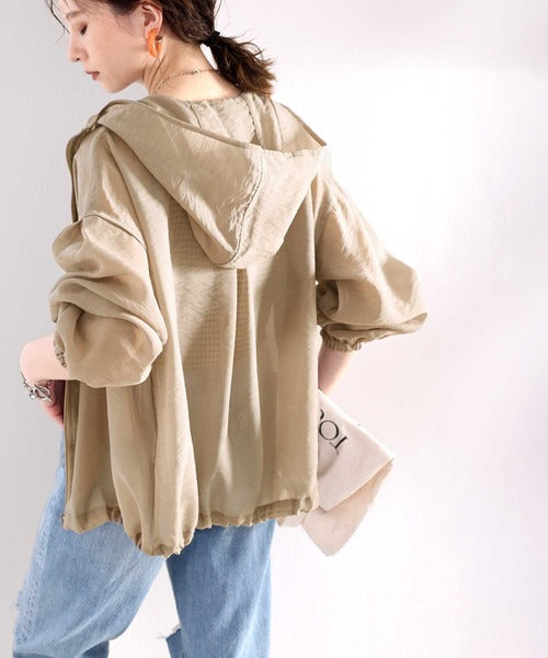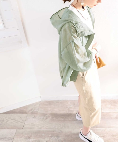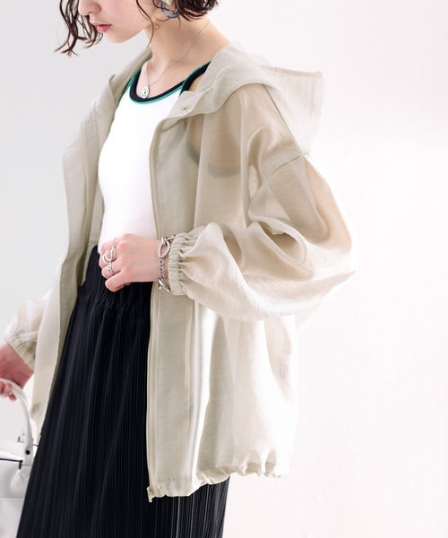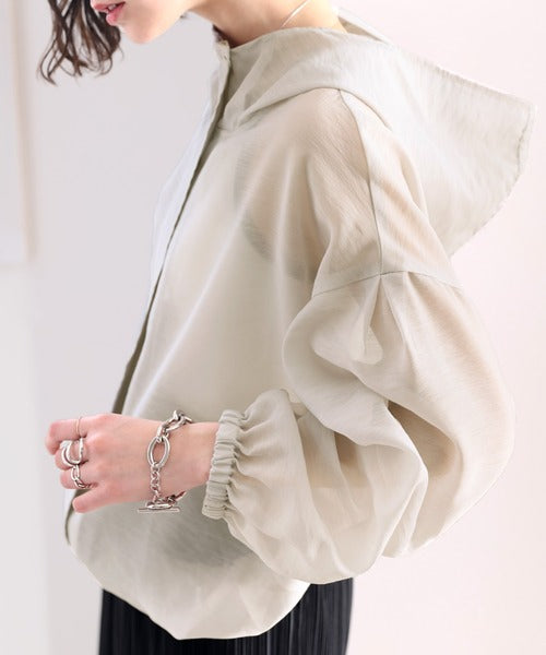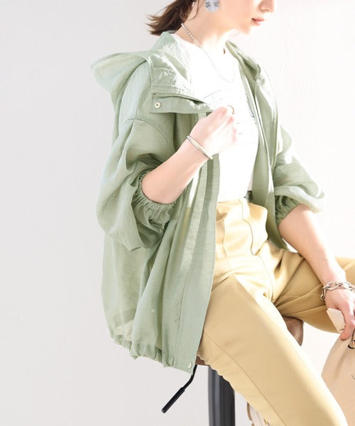 ゆったりとしたシルエットのシアーパーカー。