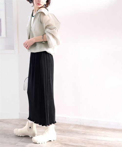 程よい透け感のシアー素材が急上昇中。