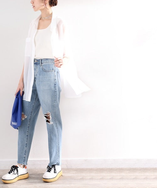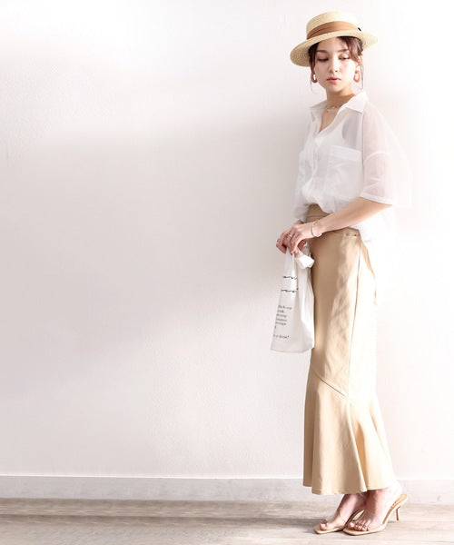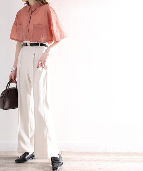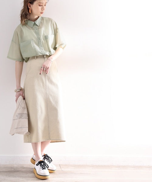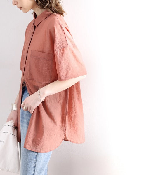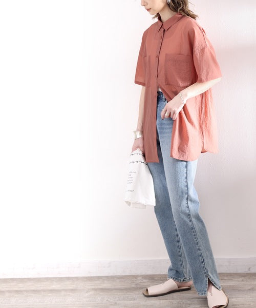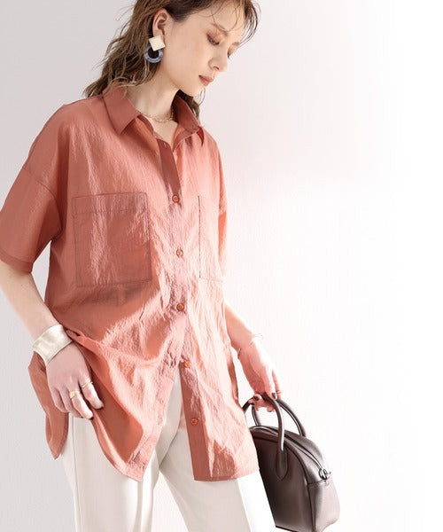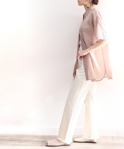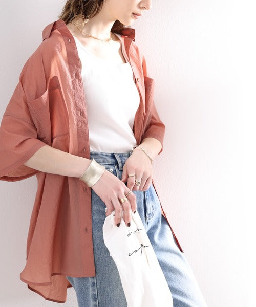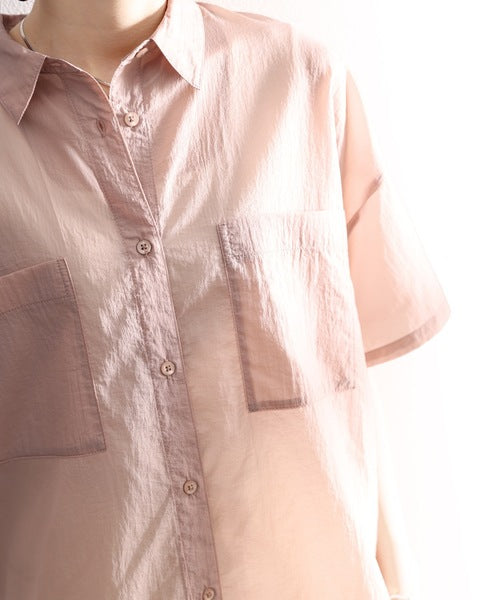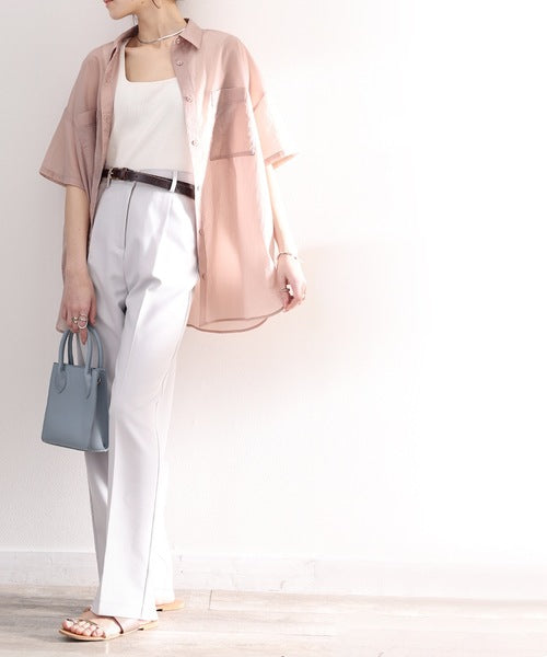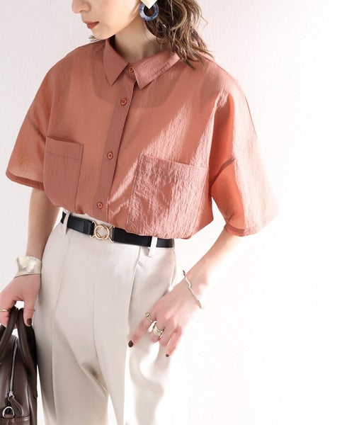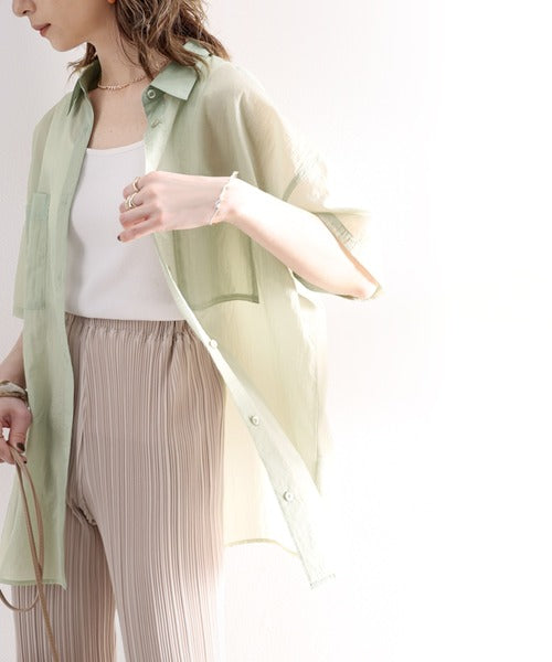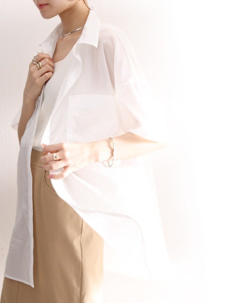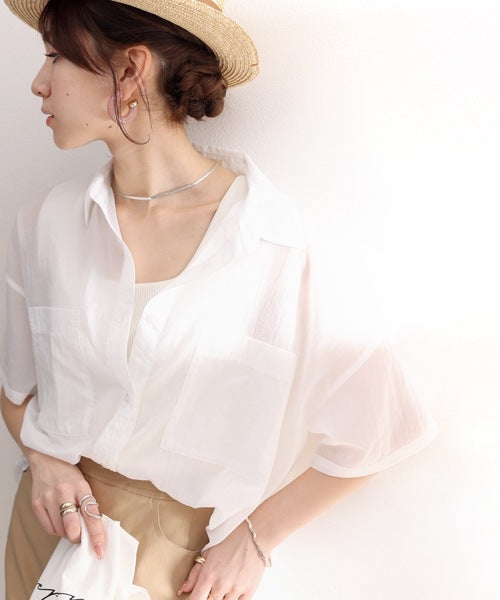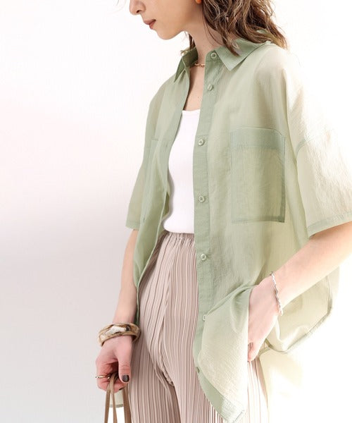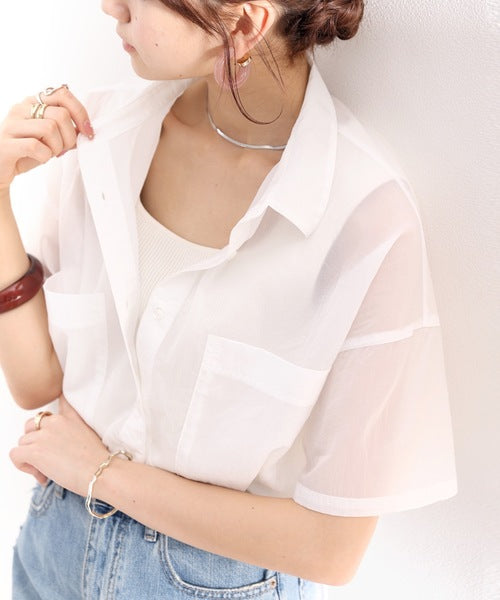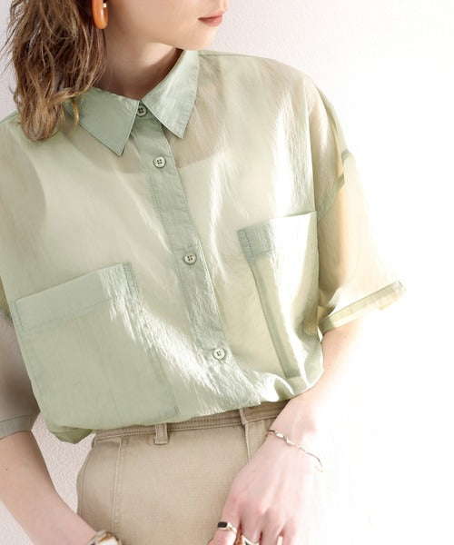 最旬のシアー。メンズライク半袖シアーシャツ ce1010079
