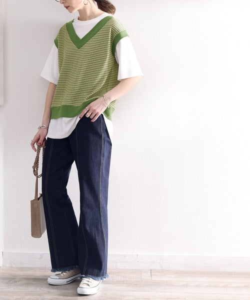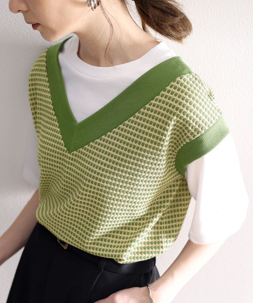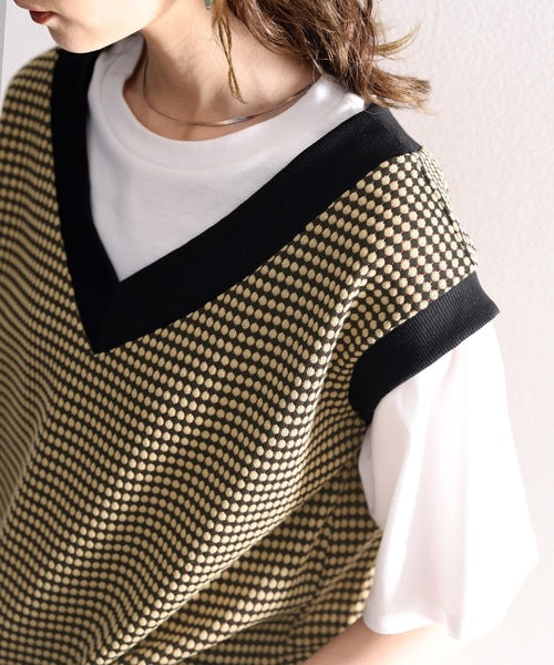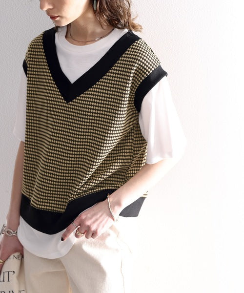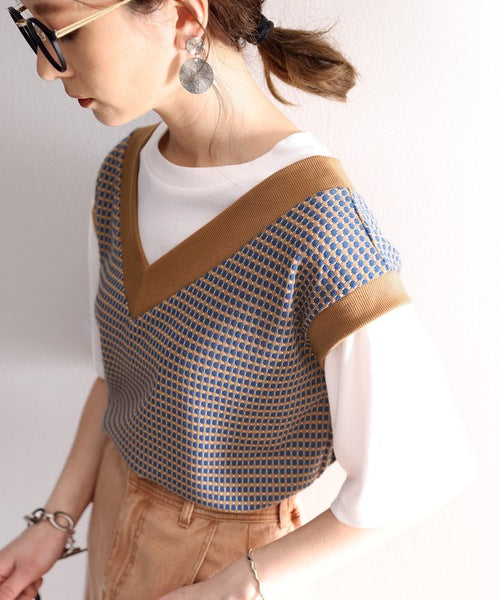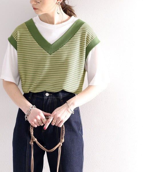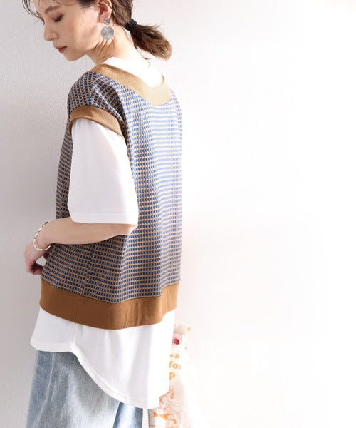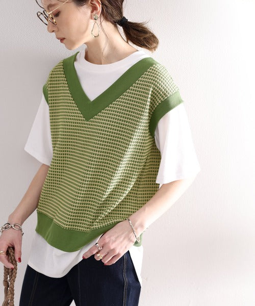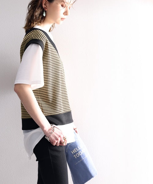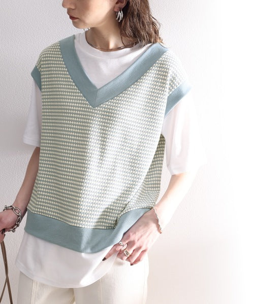 Tシャツとニットベストがドッキングされた、1枚だけでサマになるアイテム。