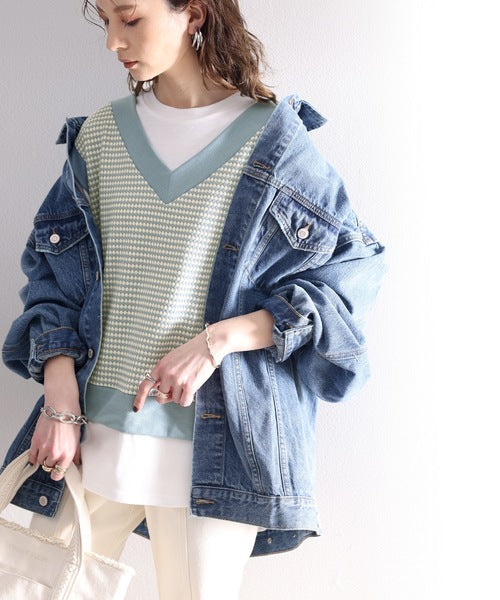 コーデ映え間違いなし、ハニカム柄ドッキングプルオーバー