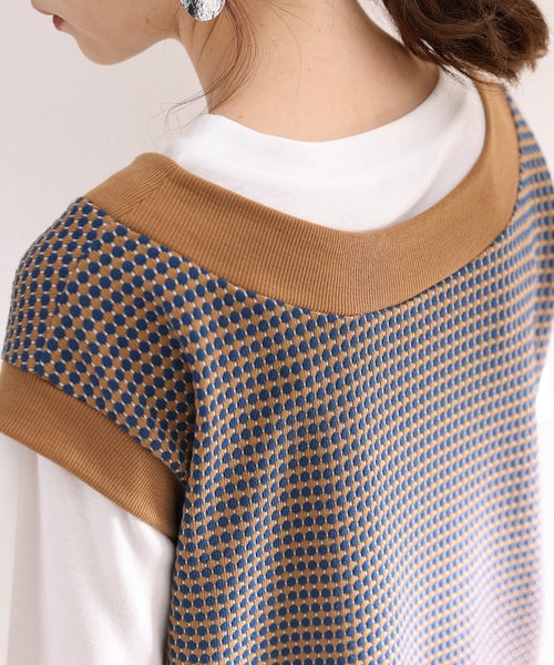 たった1枚で高見え。ハニカム柄ドッキング半袖プルオーバー ce1010088