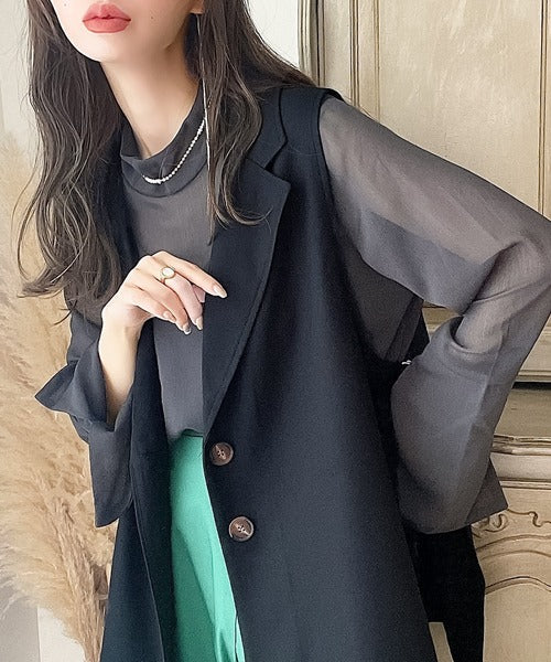 前を閉じて、きちんとトップス感覚で着るのもお勧め。
