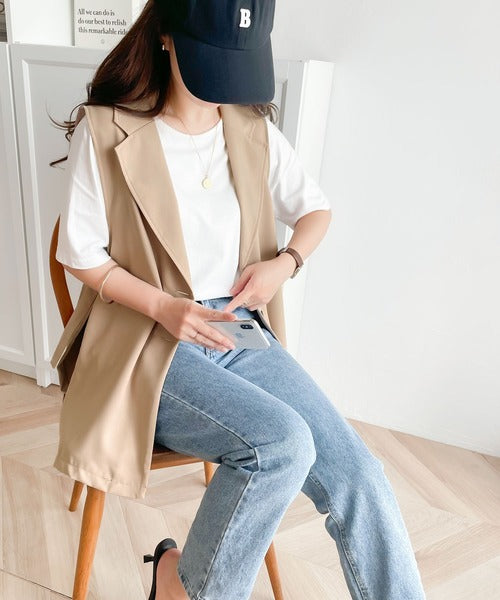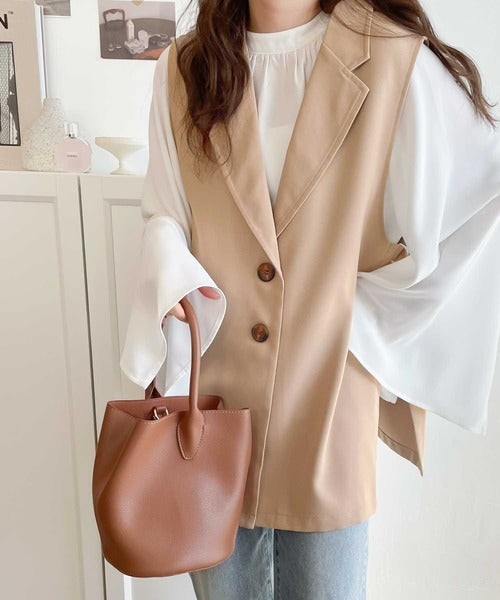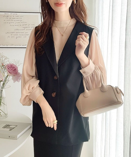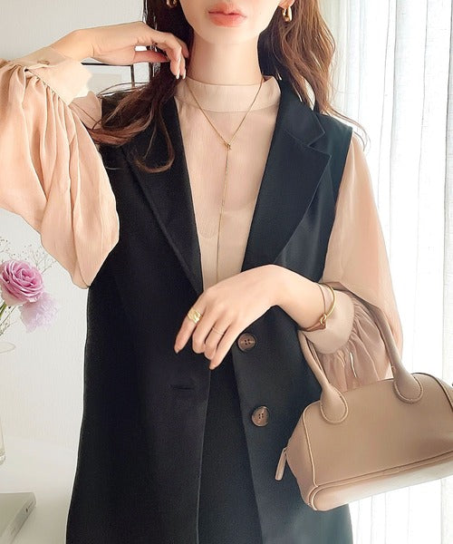 いつものパンツスタイルにプラスして、高見えコーデが完成。