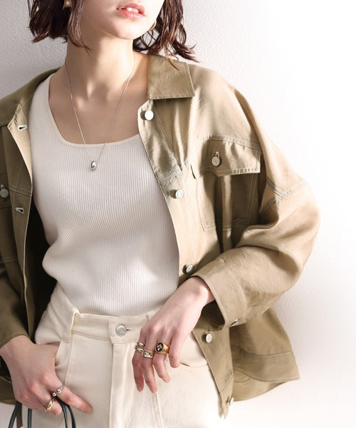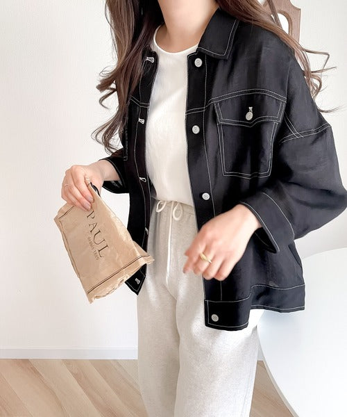 配色ステッチがアクセントになり、ワントーンコーデに羽織るだけで