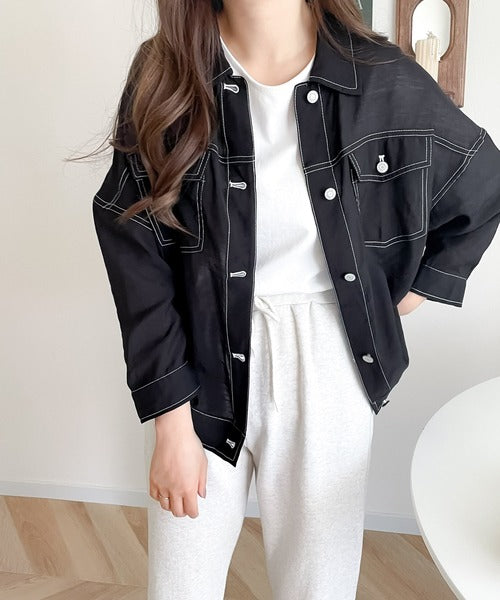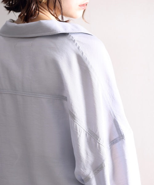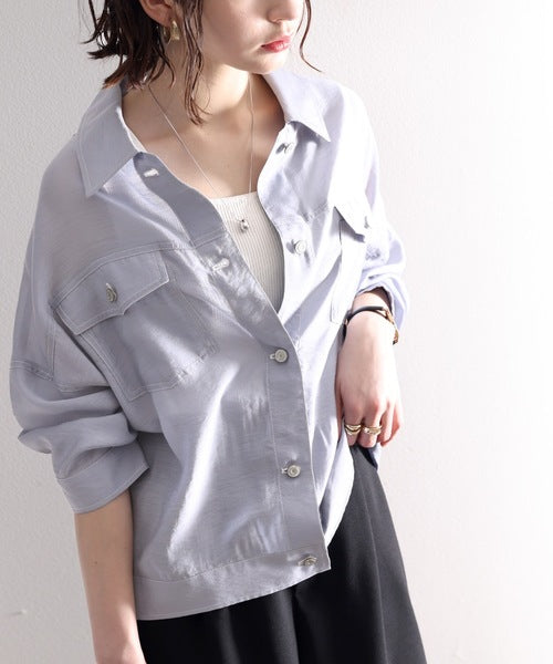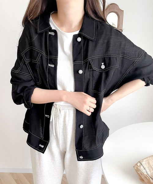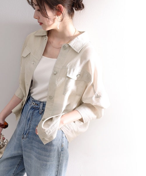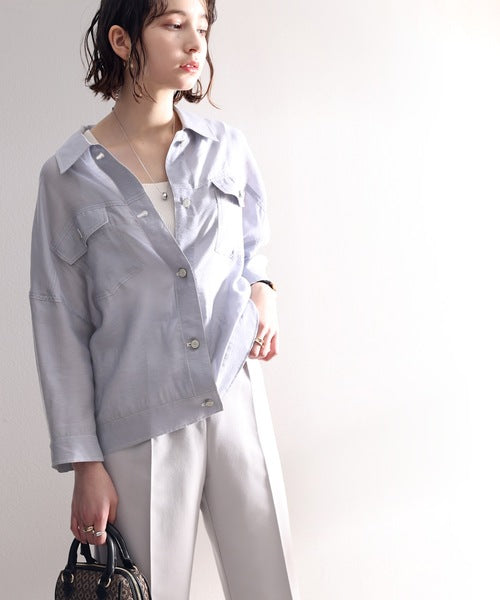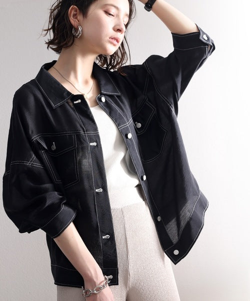 シアーを開拓。7分袖丈配色ステッチシアーシャツジャケット ce1010095