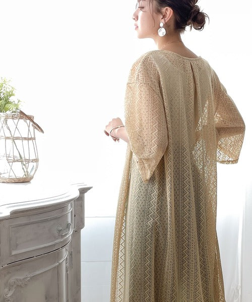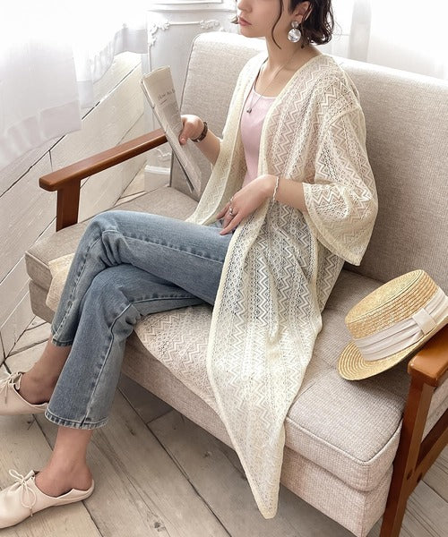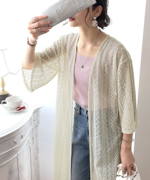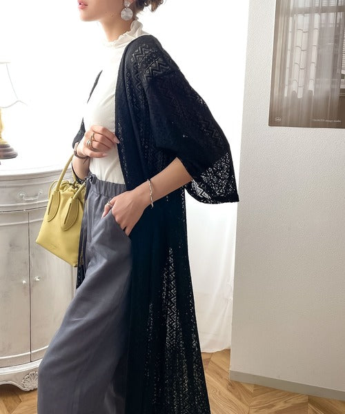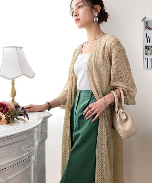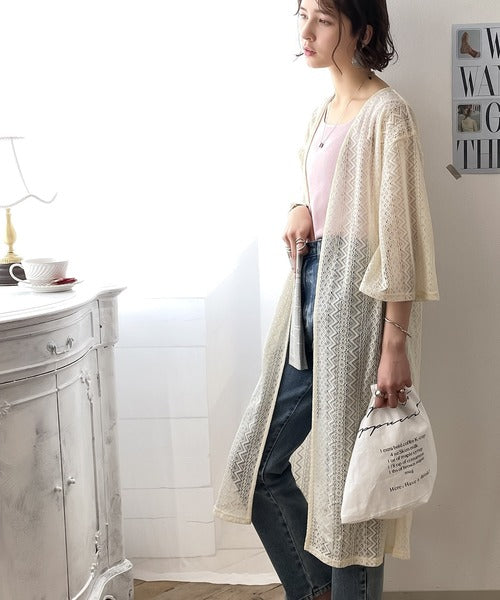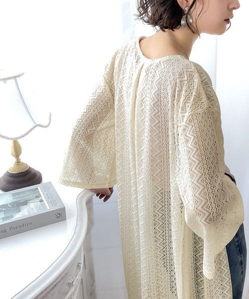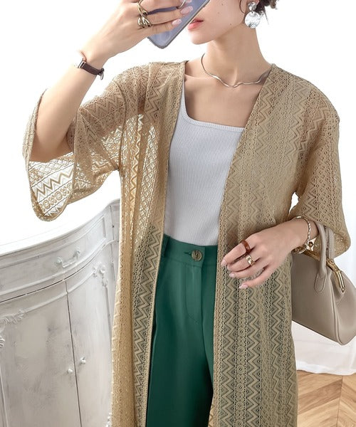 華やぐ大人レース。総レースロング丈カーディガン ce1010097