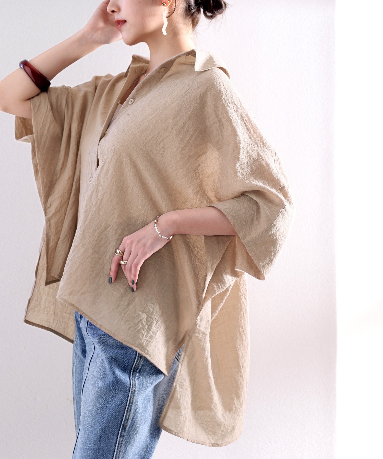 ポンチョ風シルエットが魅力のオーバーブラウス。