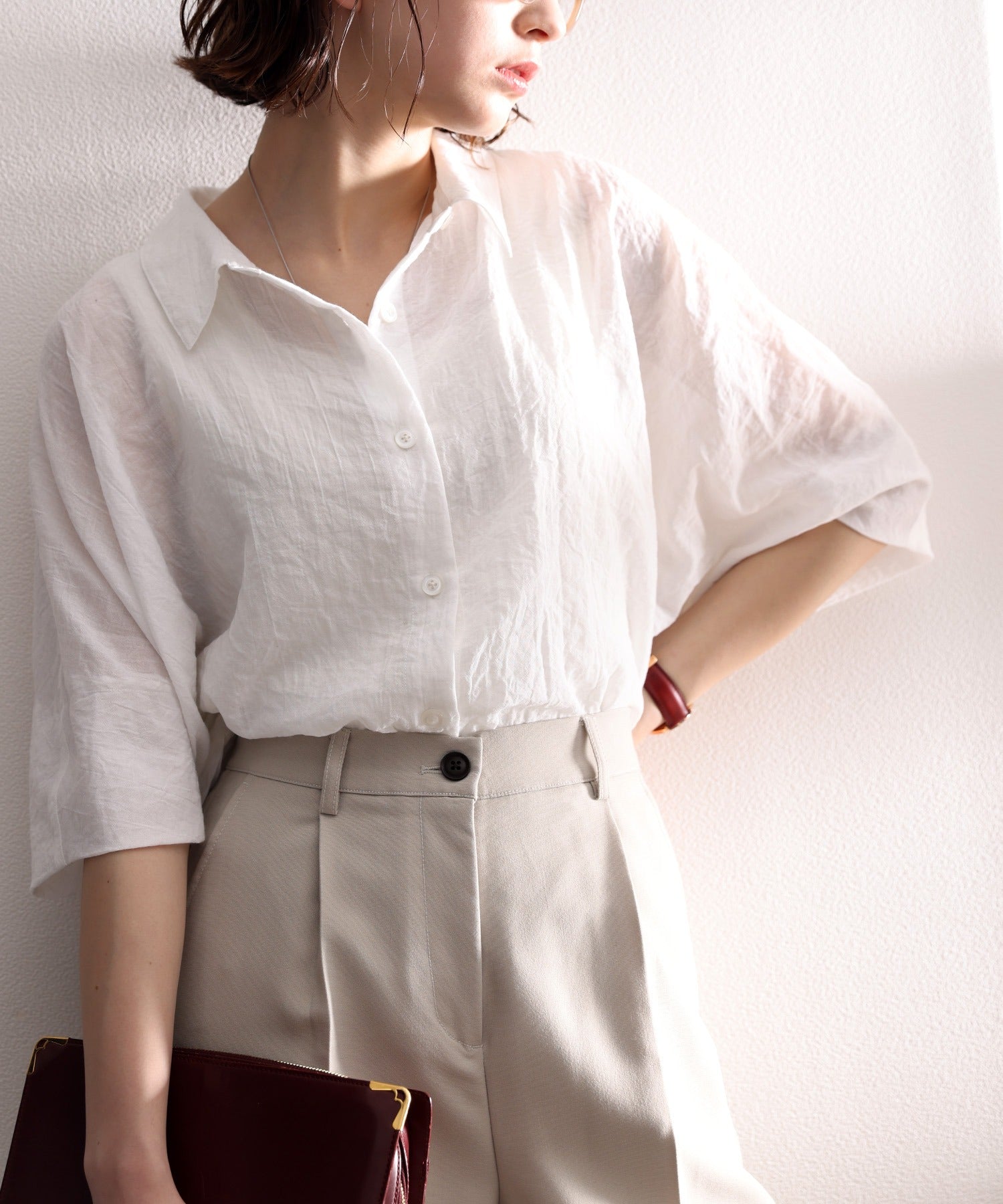 シアーに揺れる。大人のゆったりシアーブラウス ce1010100