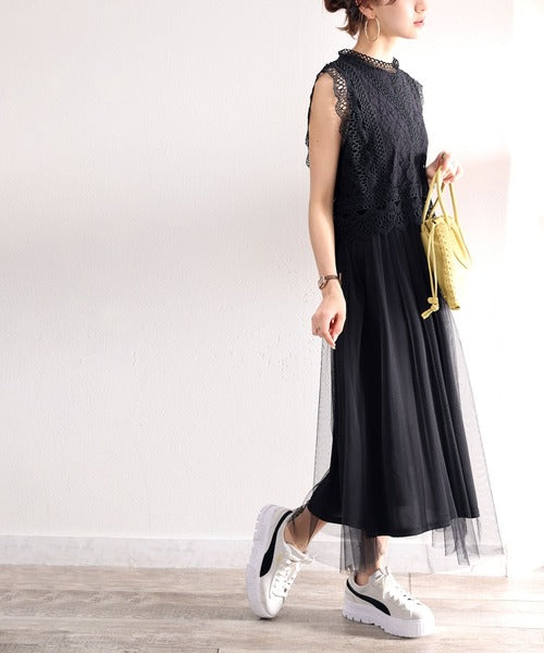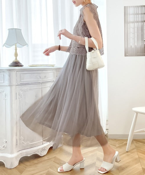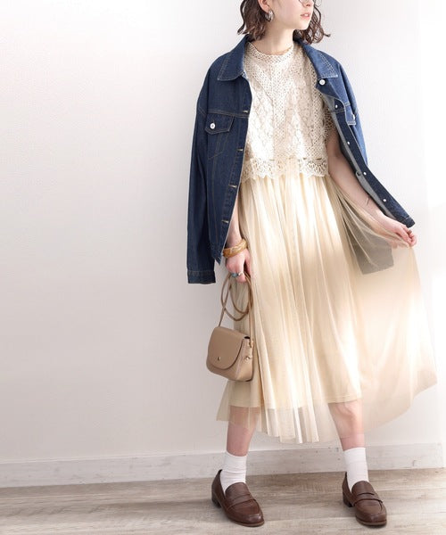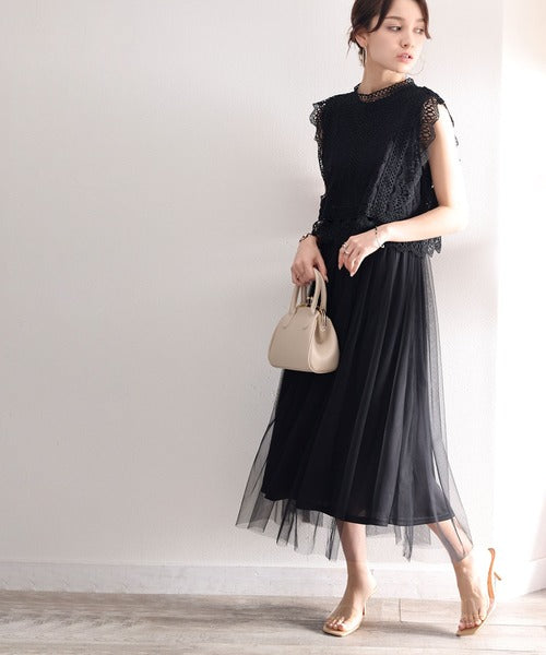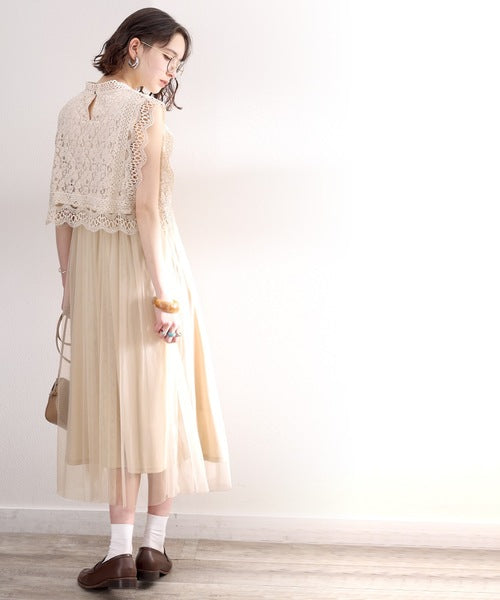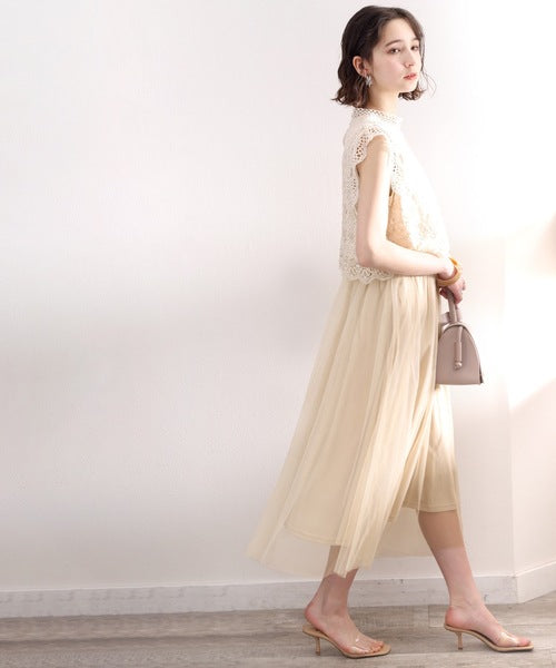 適度なボリューム感のあるチュールスカートで大人が着やすい1枚に。