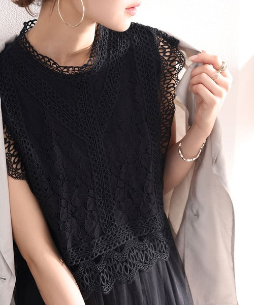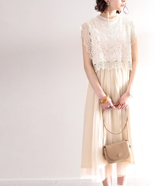高まるロマンティックムード。コットンレースドッキングワンピース ce1010108