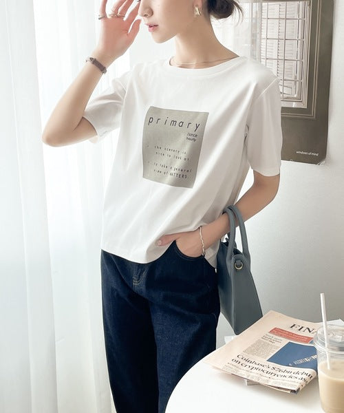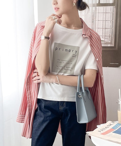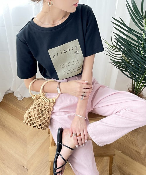 即効こなれ感。綿100%クロップド丈boxロゴTee ce1010130