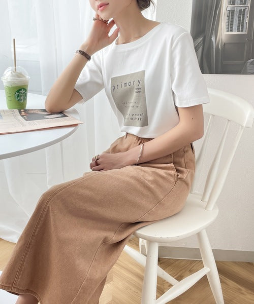ロゴがアクセントになって、1枚でこなれ感あるコーデが完成。