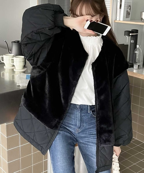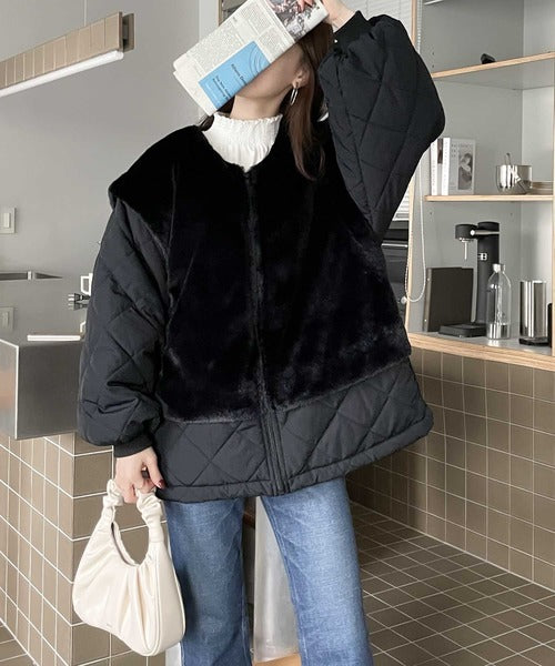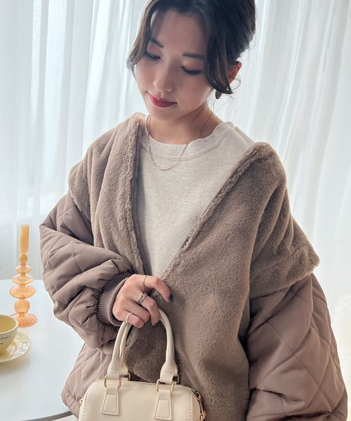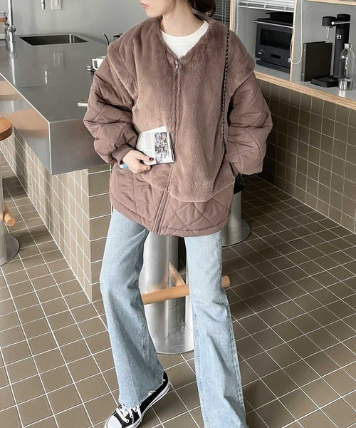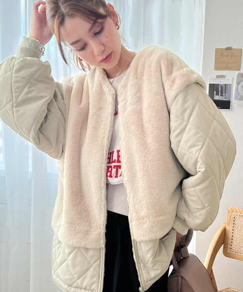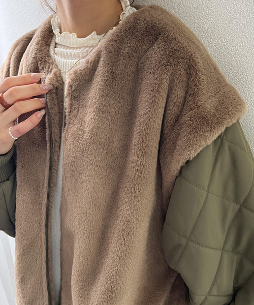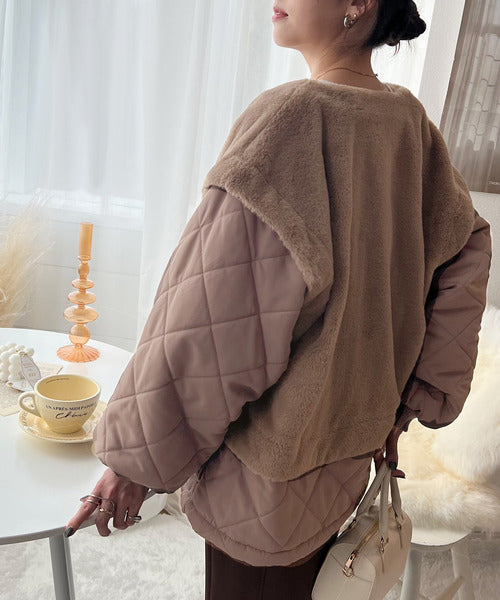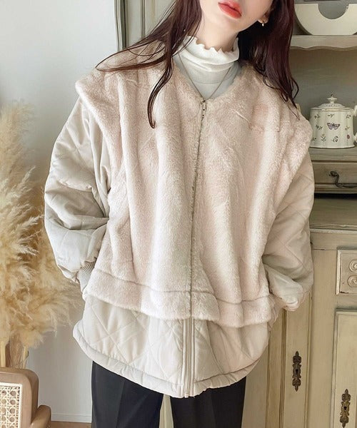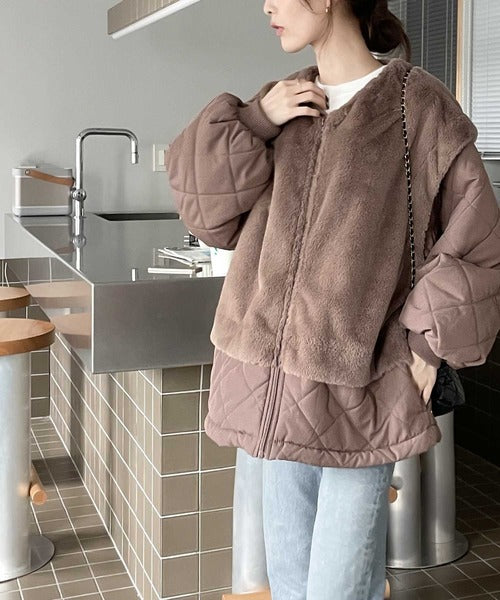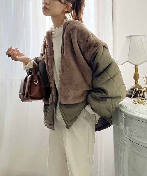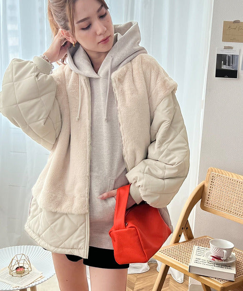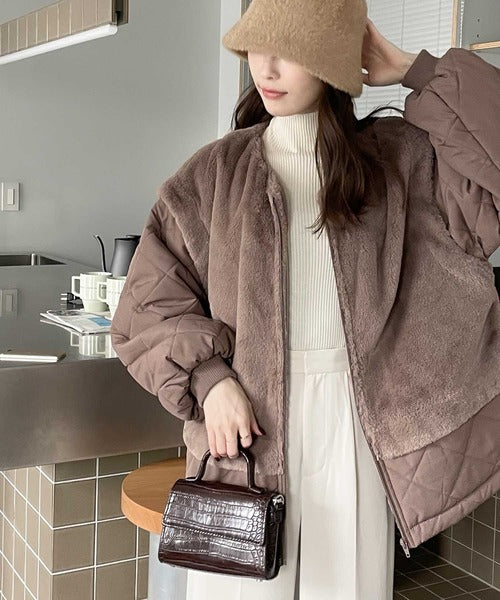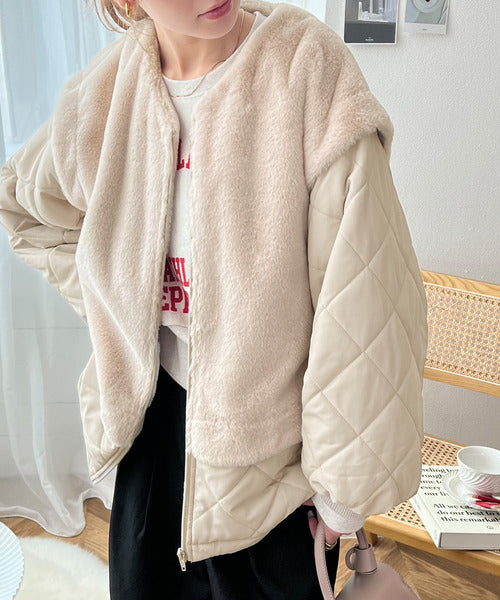 もこもこ癒され。ファー×キルティング切替えジップブルゾン ce1010131