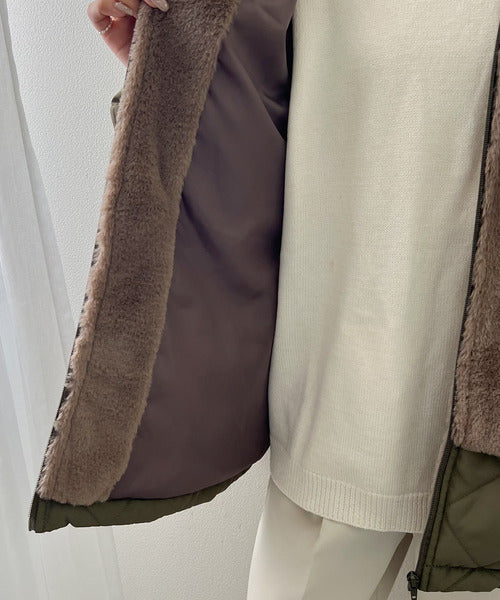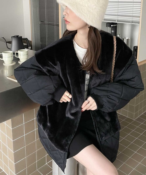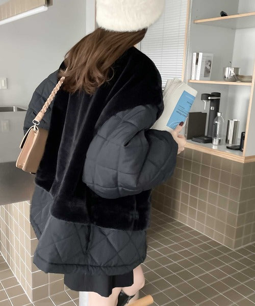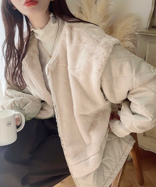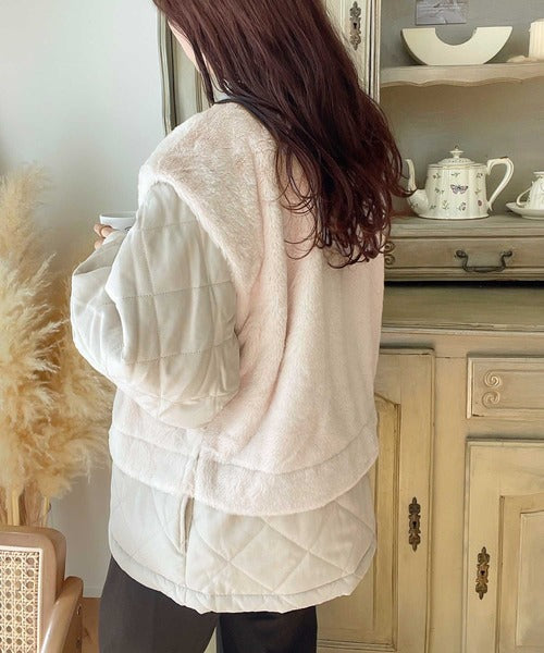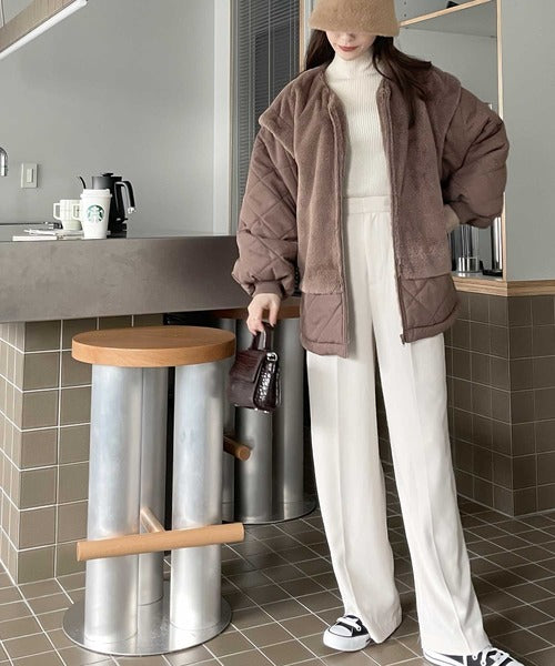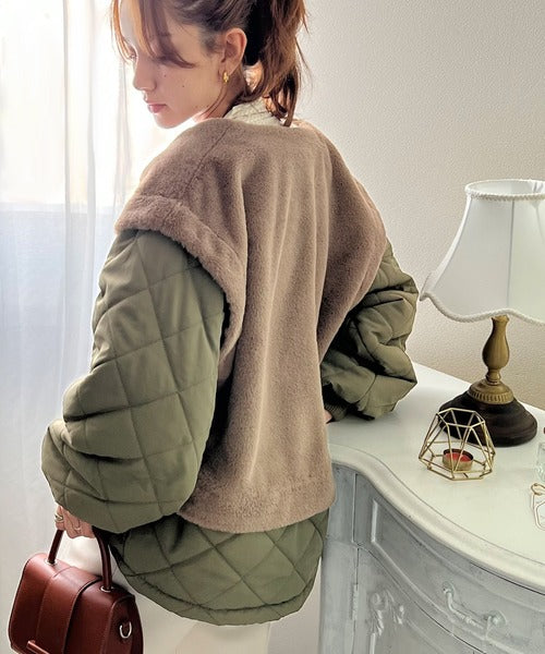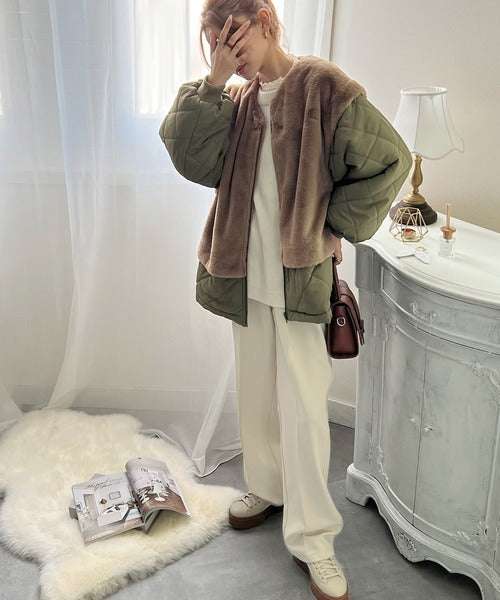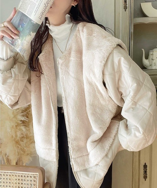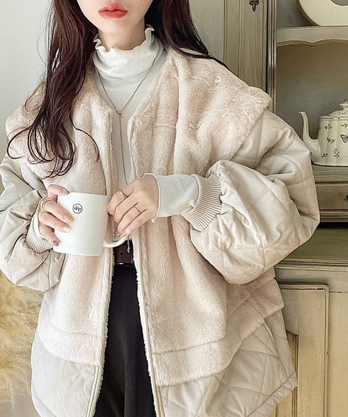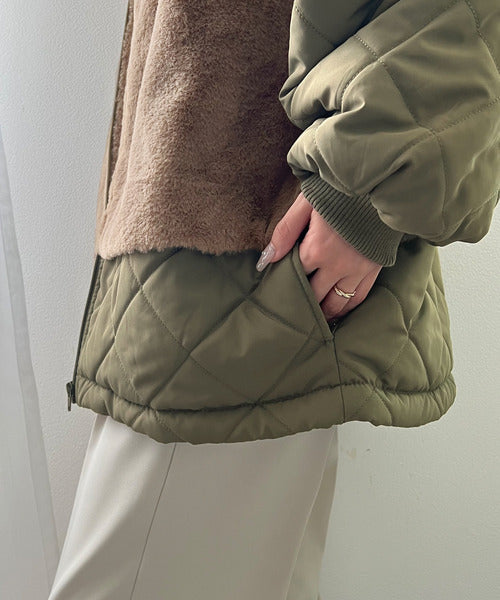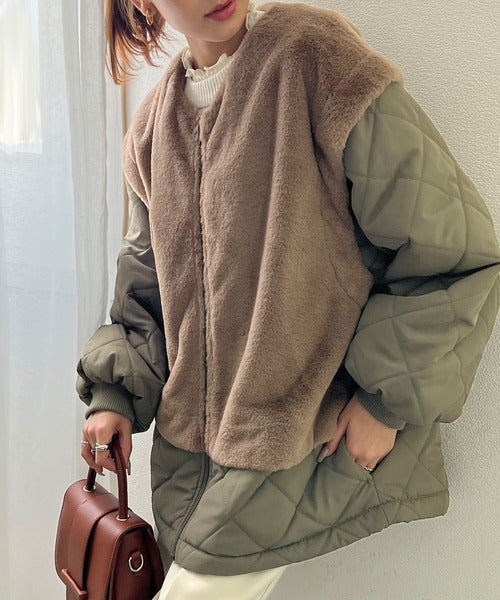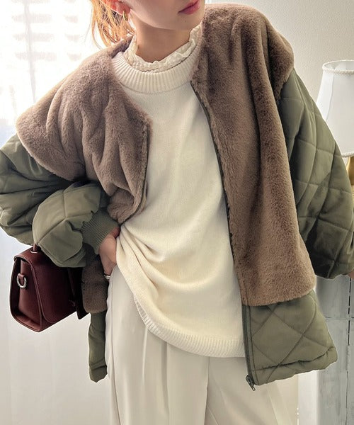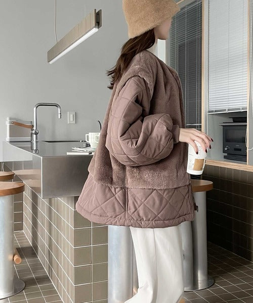 もこもこ癒され。ファー×キルティング切替えジップブルゾン ce1010131